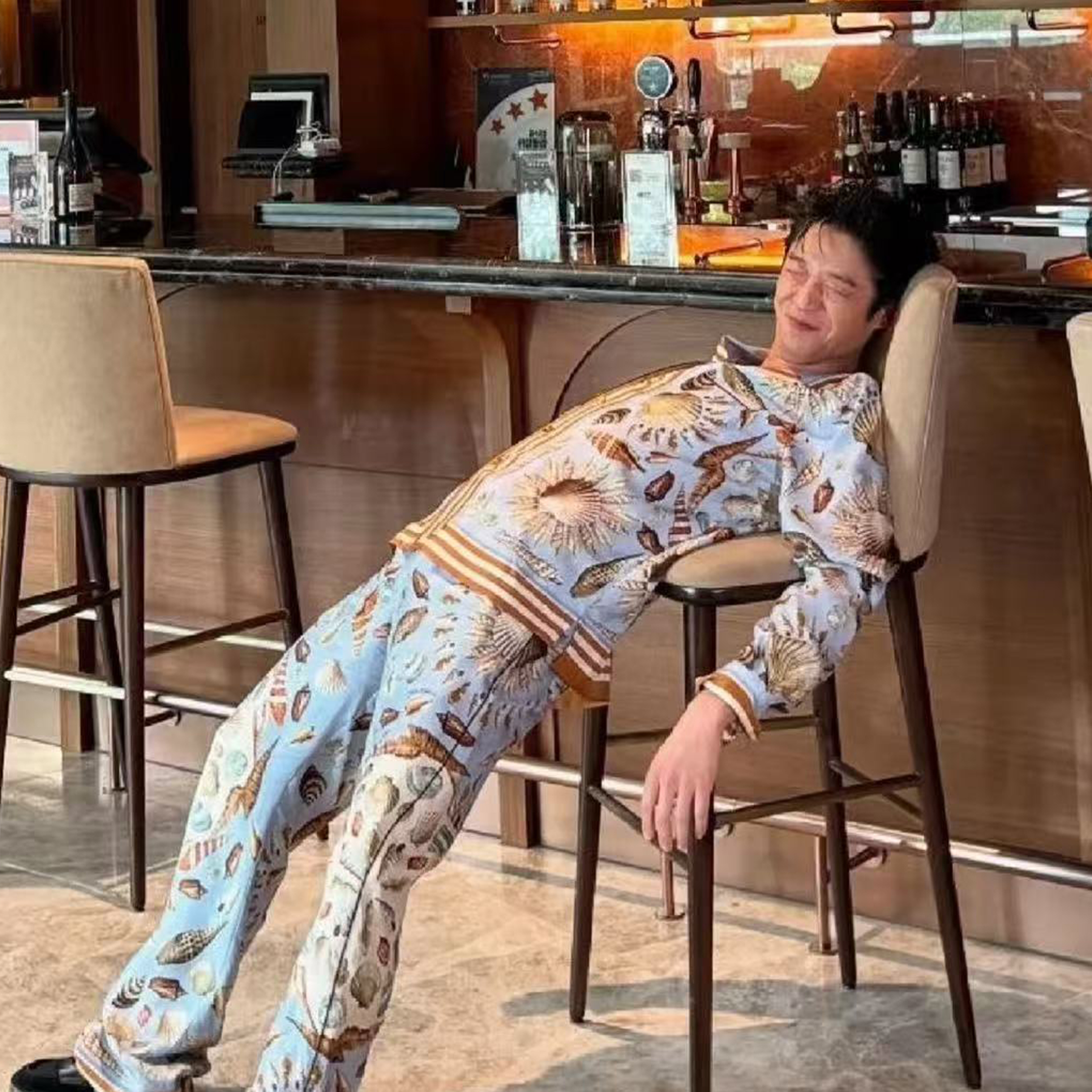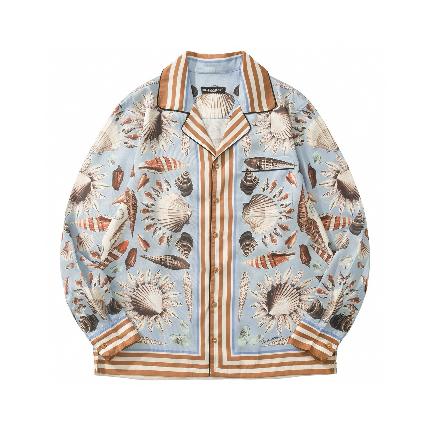 NIGO Dolce&Gabbana Men's Shell Printed Silk Twill Vanity Shirt Spring Summer Long Sleeve Single Breasted Color Clash Fashion Casual Shirt Jacket Ngvp #nigo1977