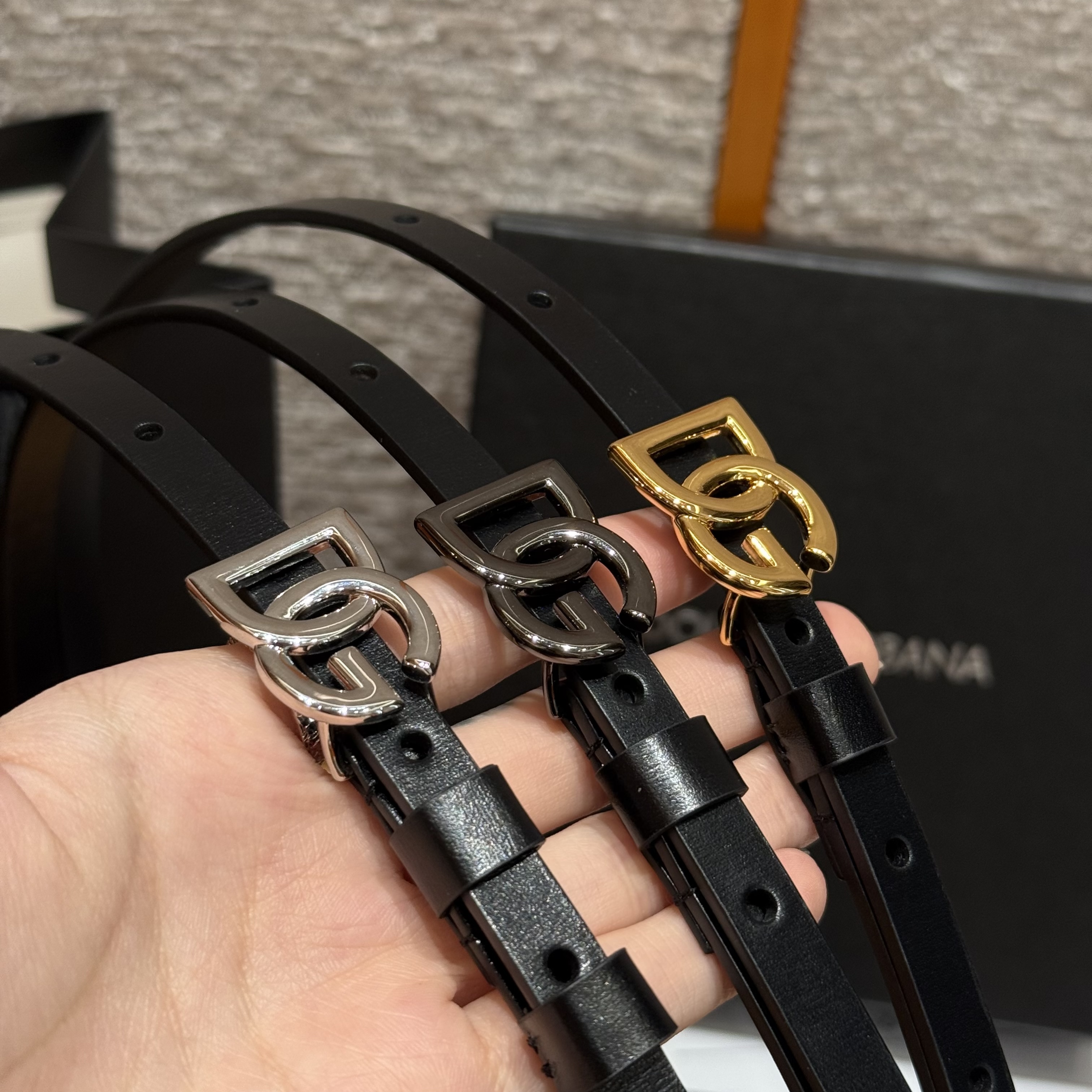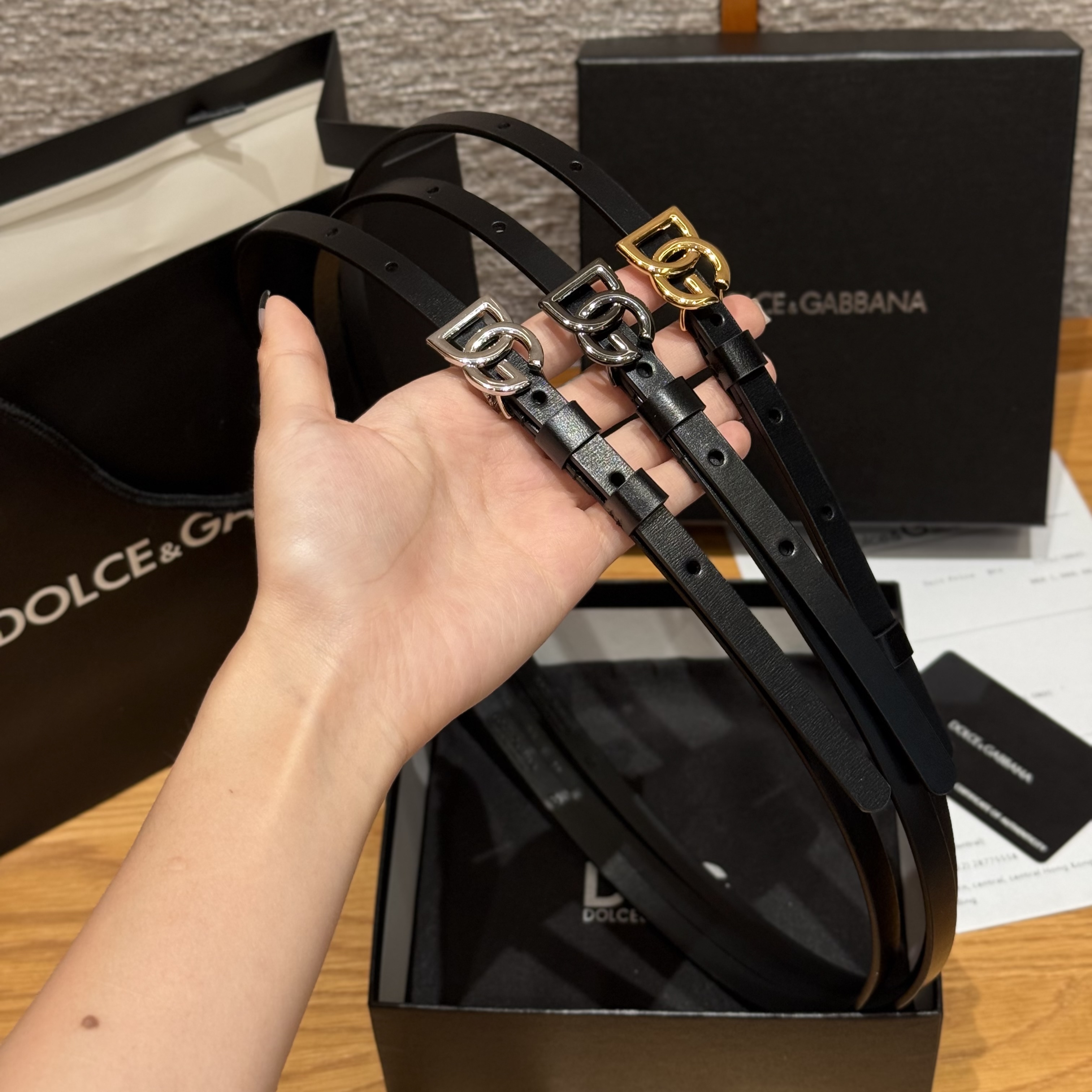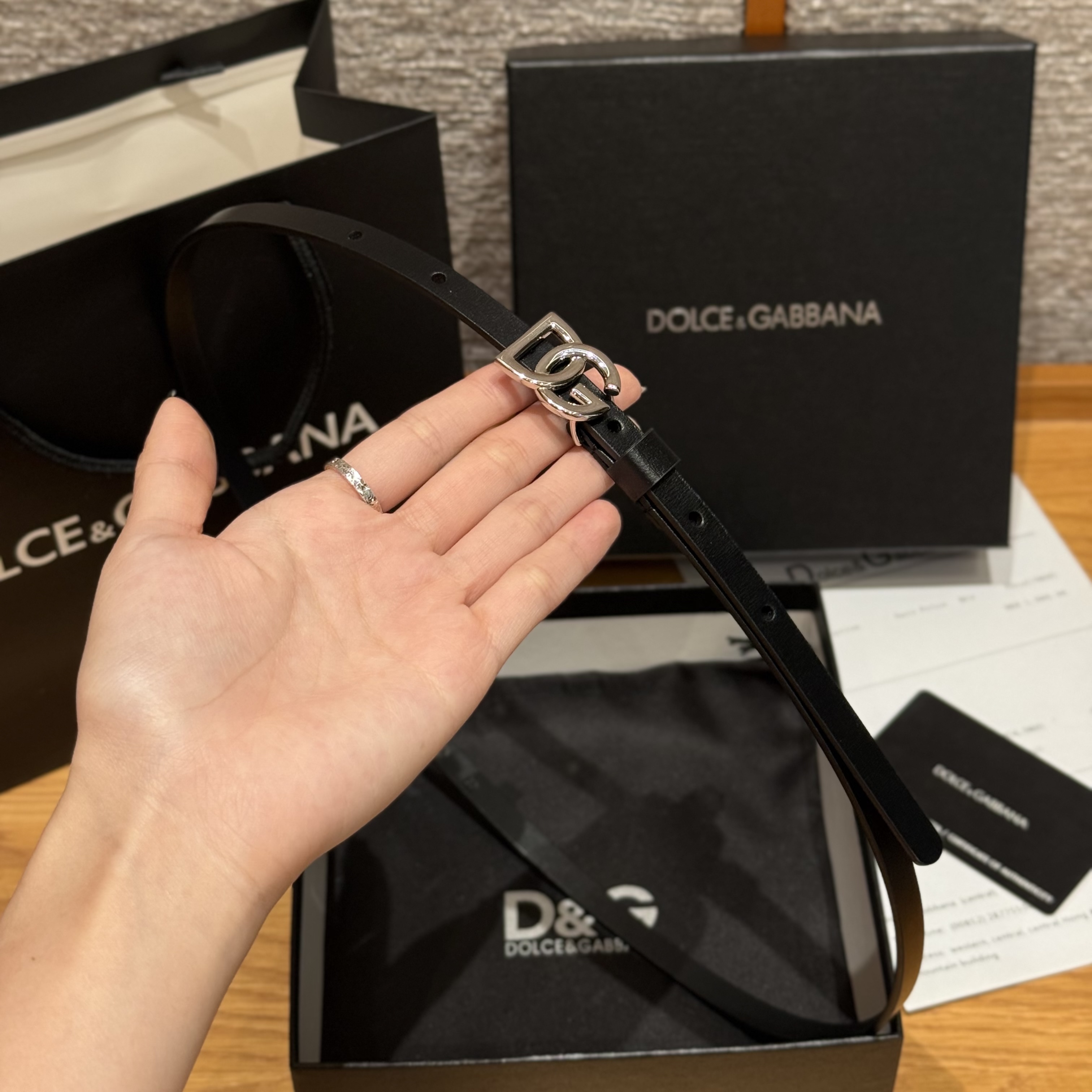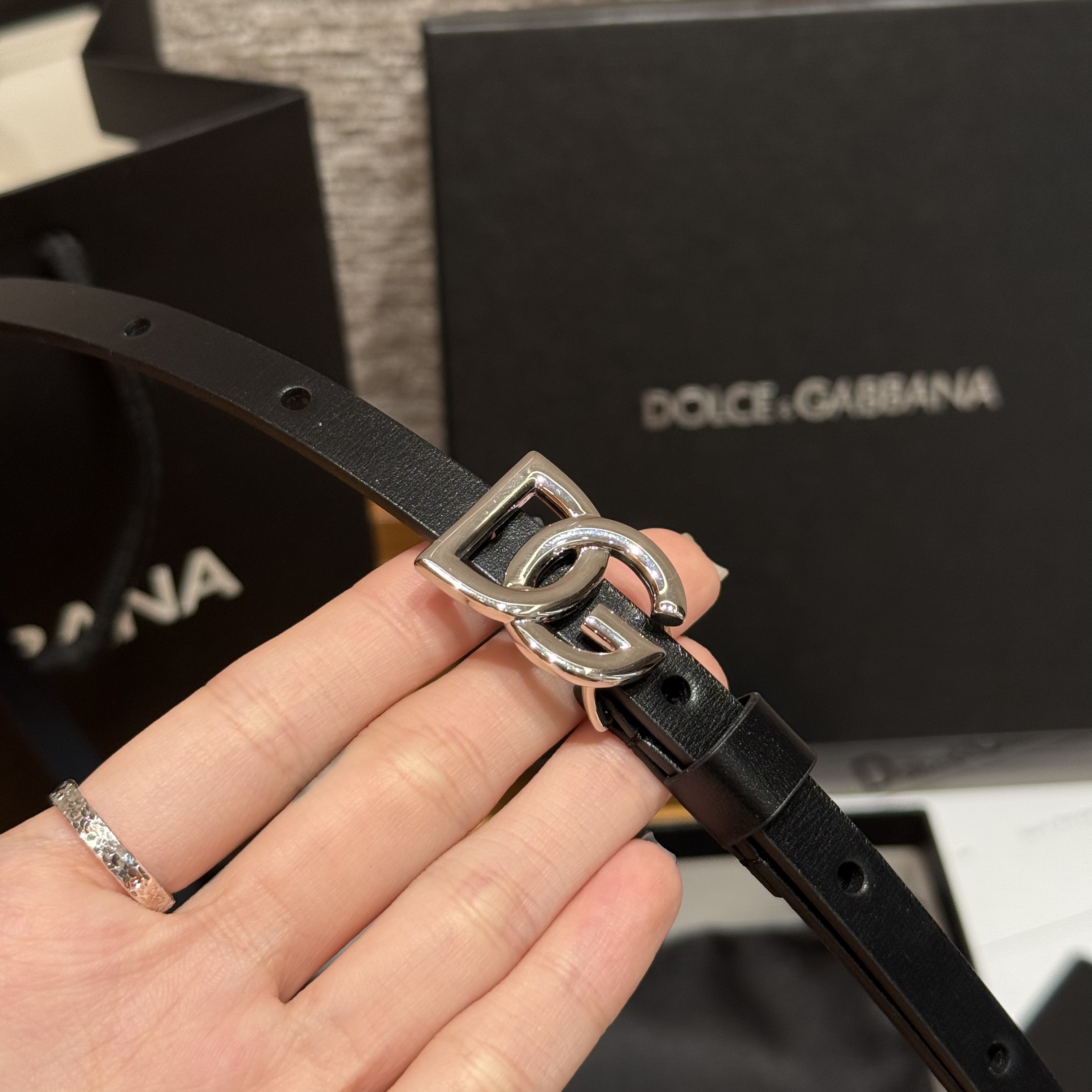 NIGO Dolce&Gabbana Women's Fashion Solid-Color Calfskin Belt With Logo Metal Buckle, 15mm Width Accessories #nigo81573