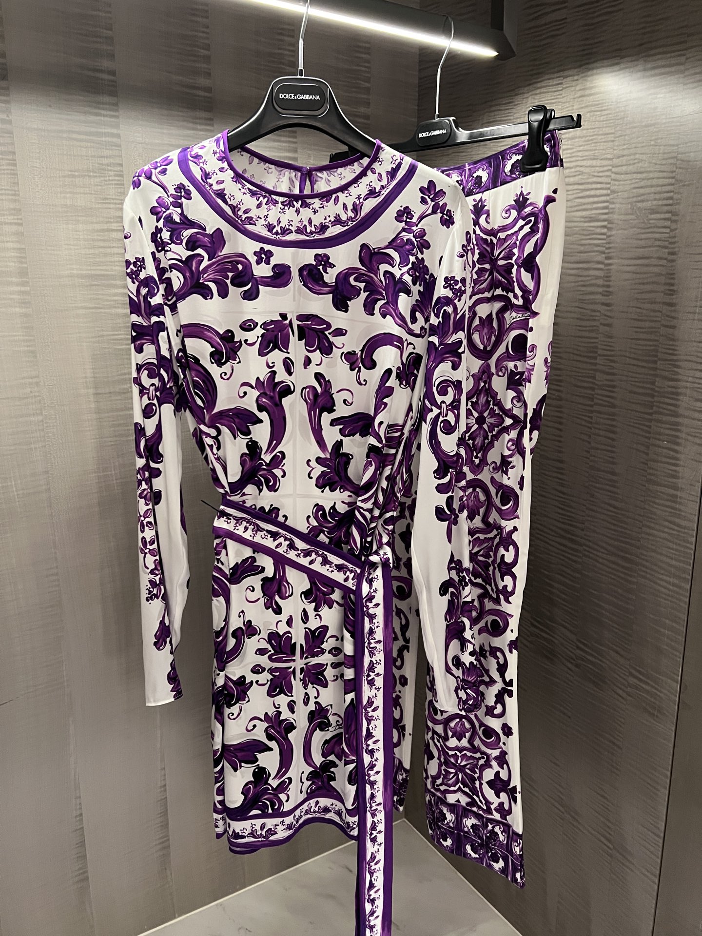 NIGO Dolce&Gabbana Women's Spring/Summer Majolica Printed Silk Round Neck Tie-Waist Charmeuse Dresses Casual Solid Color Long Pants Ngvp #nigo2151