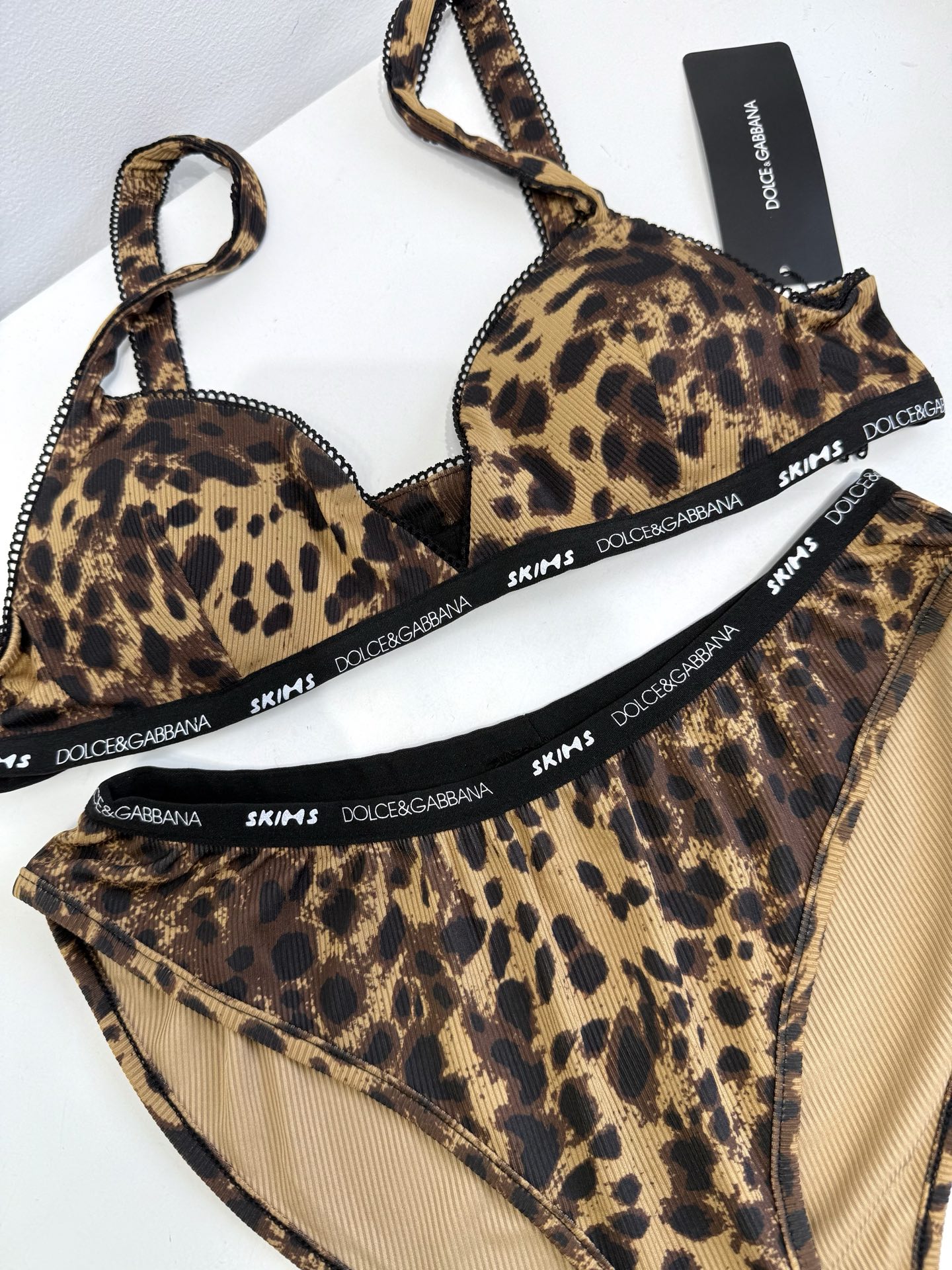 NIGO Dolce&Gabbana Women's Summer Colorblocking Leopard Lace Trim Triangle Adjustable Bra High Waist Comfort Triangle Panty Set Suit #nigo75535
