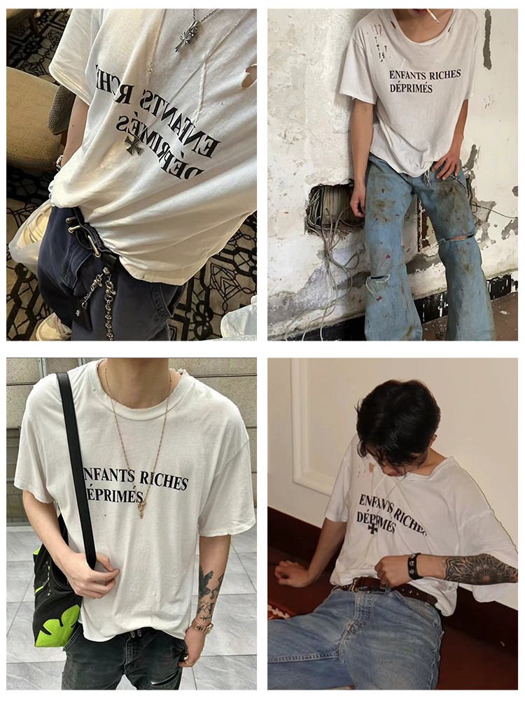 NIGO Enfants Riches Deprimes Men's Summer Letter Pattern Print Retro Casual Loose Straight Solid Color Cotton Short Sleeve T-Shirt #nigo99365