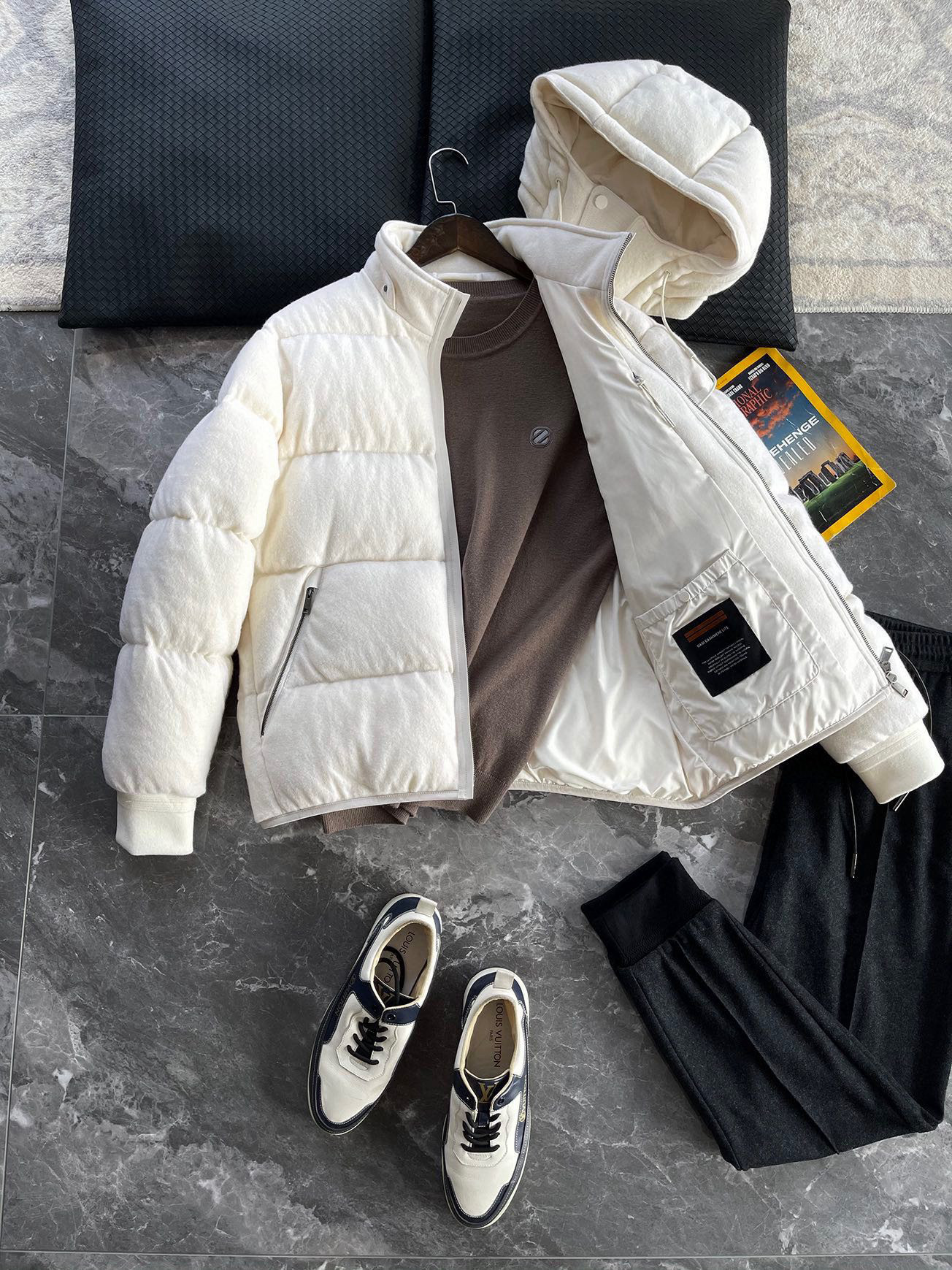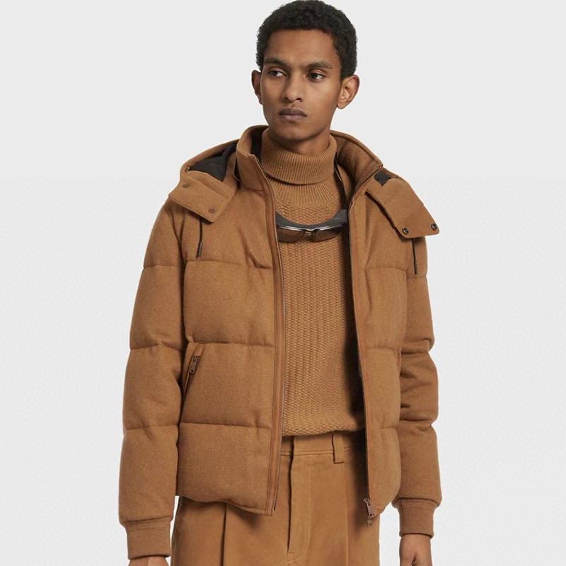 NIGO Ermenegildo Zegna Men's Autumn And Winter Solid Color Standing Collar Zipper Removable Hood Knitted Wool Down Jacket Ngvp #nigo7417