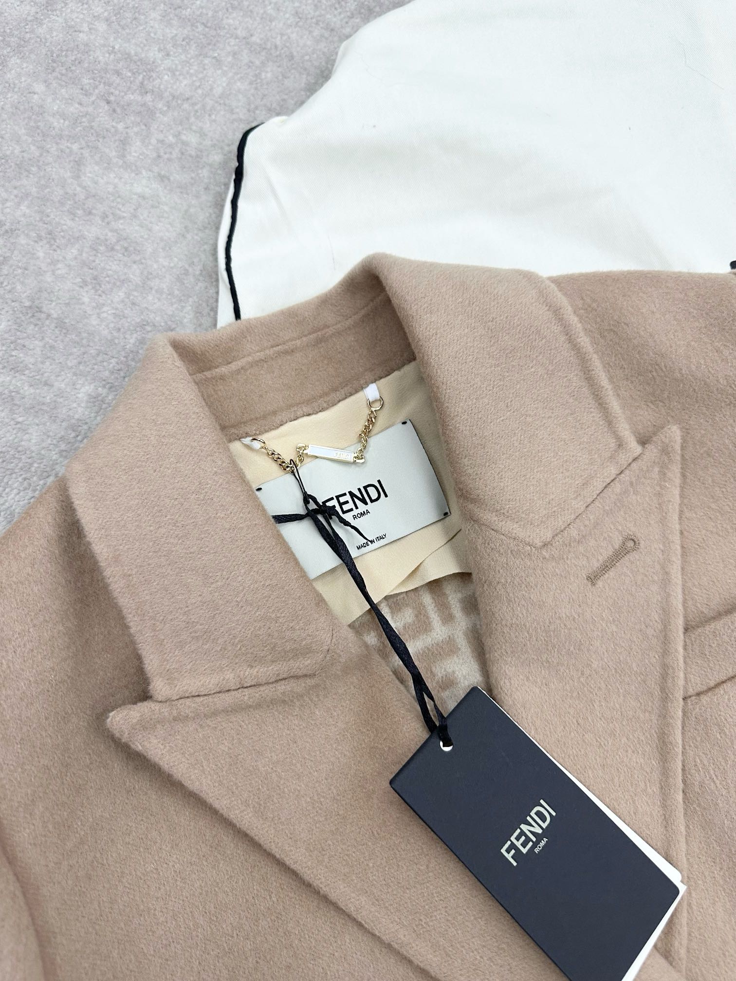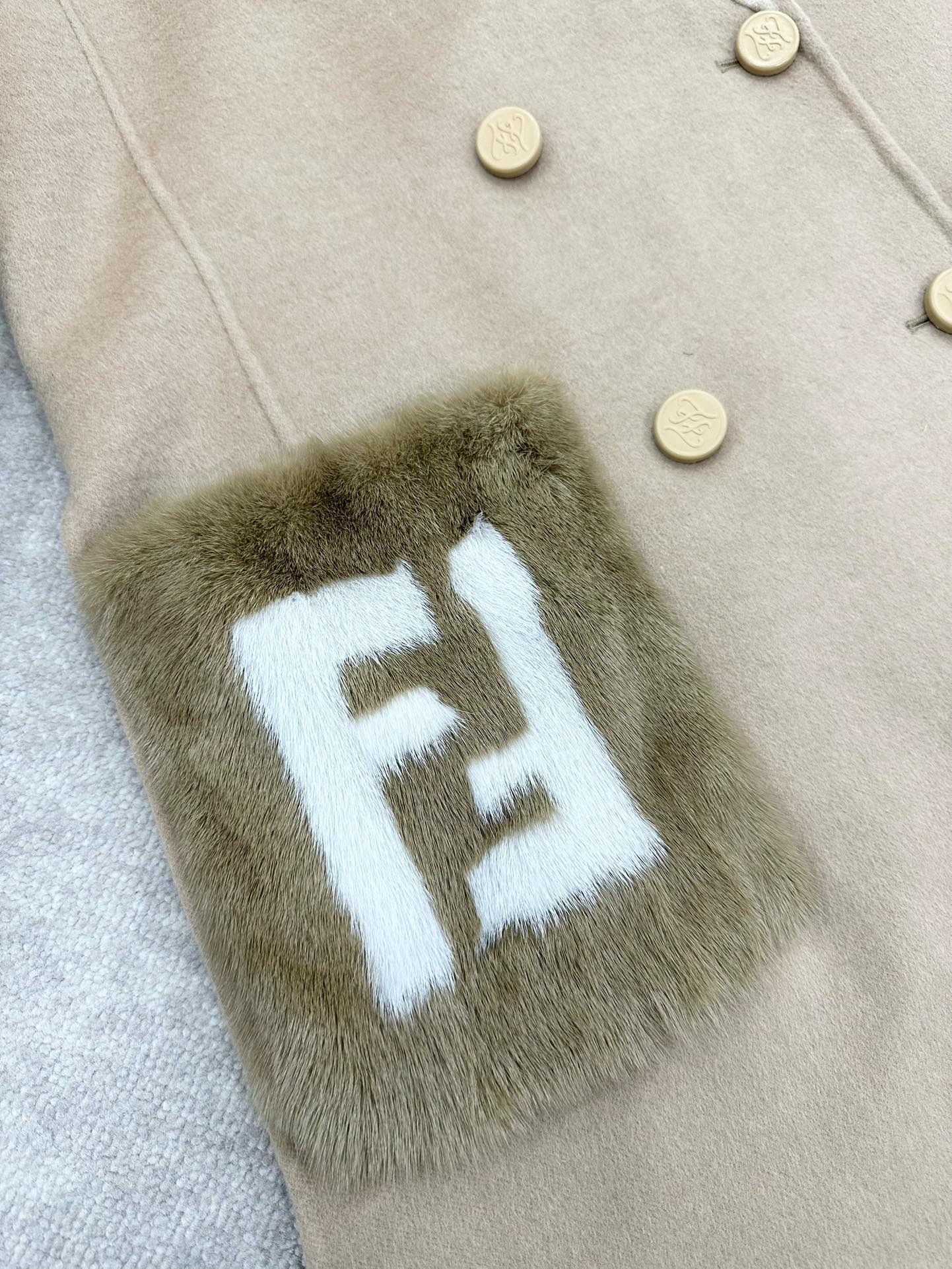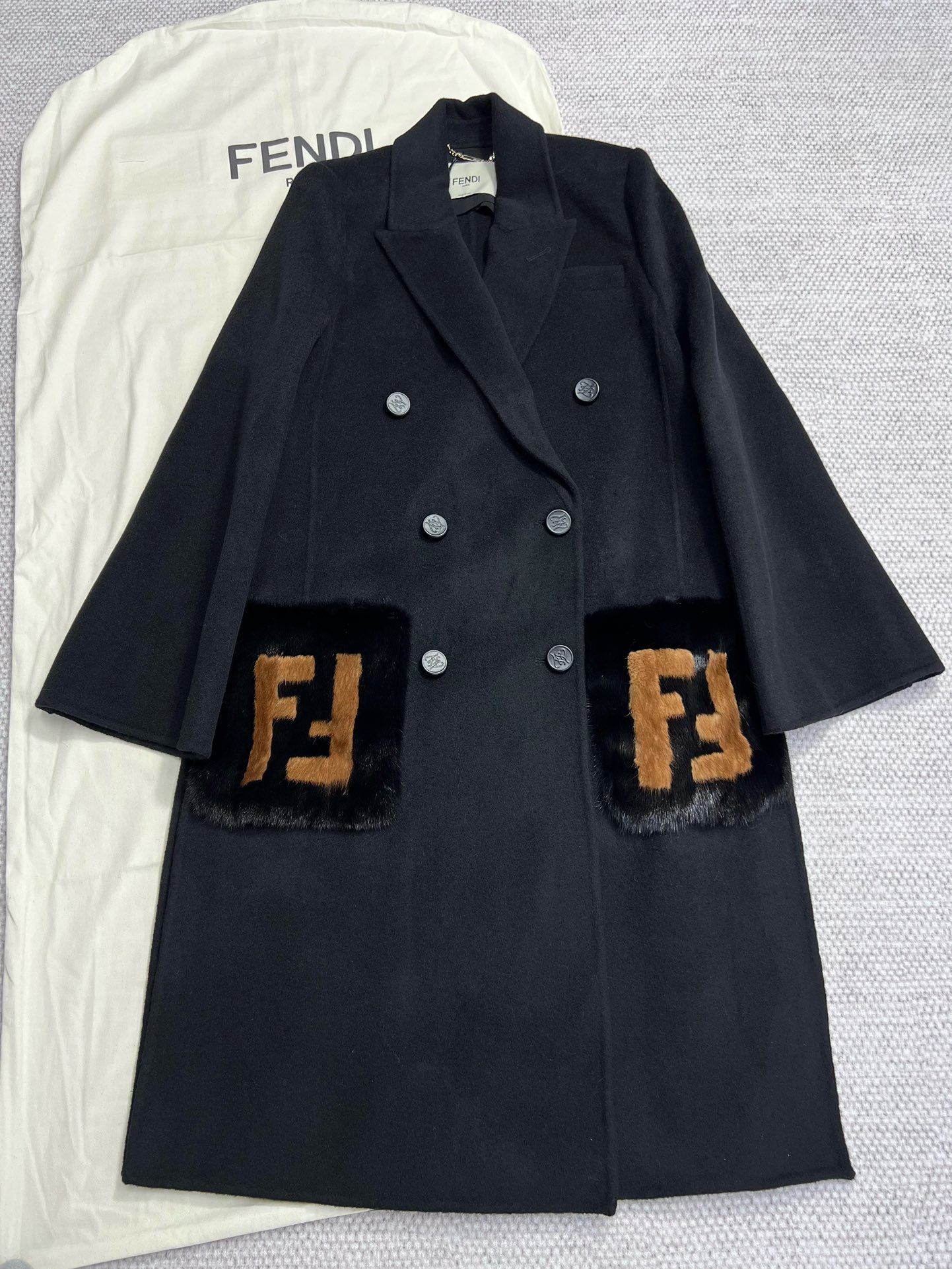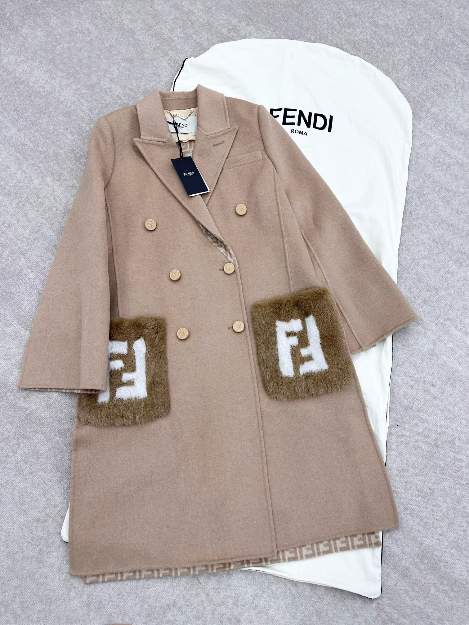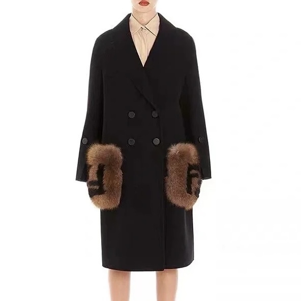 NIGO Fendi Women's Autumn And Winter Solid Color Splicing Double Breasted Medium Length Wool Long Sleeved Coat Jacket #nigo72647