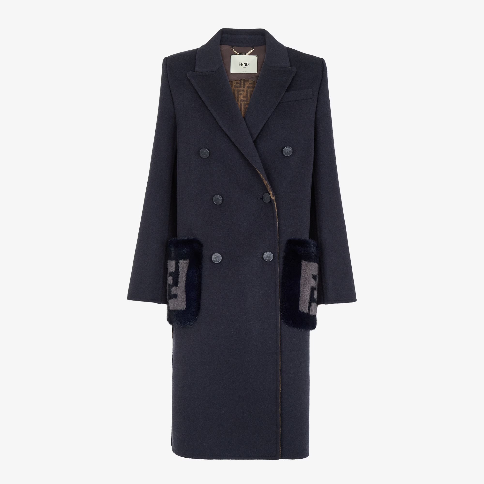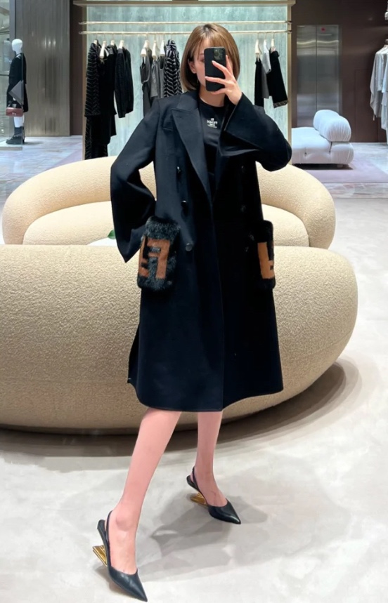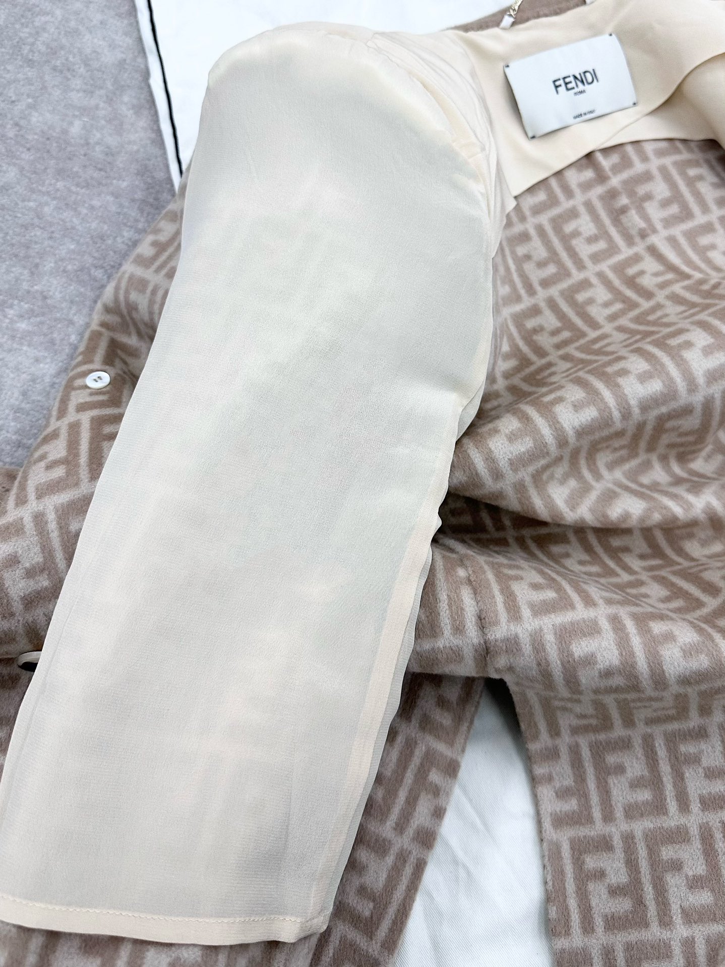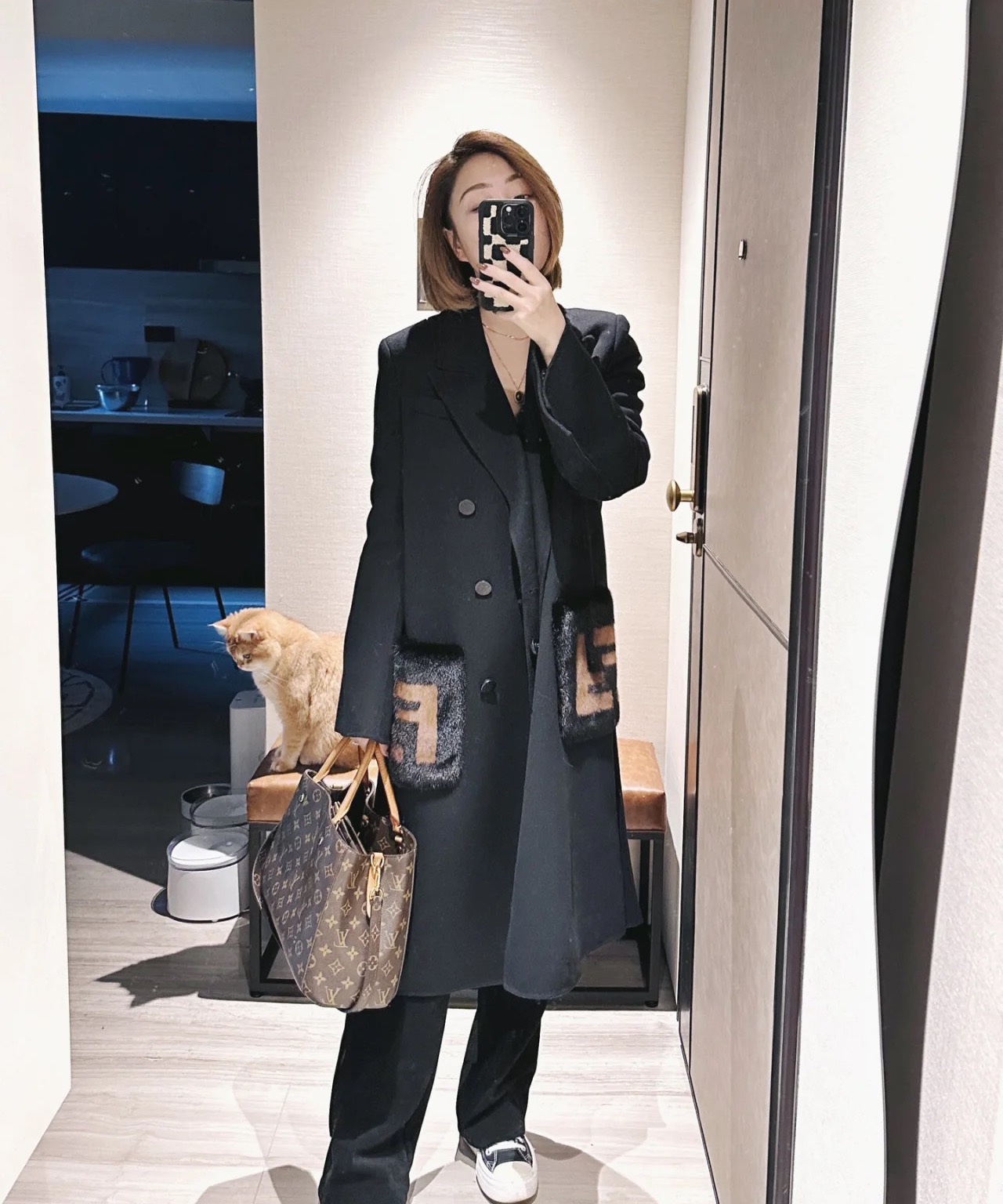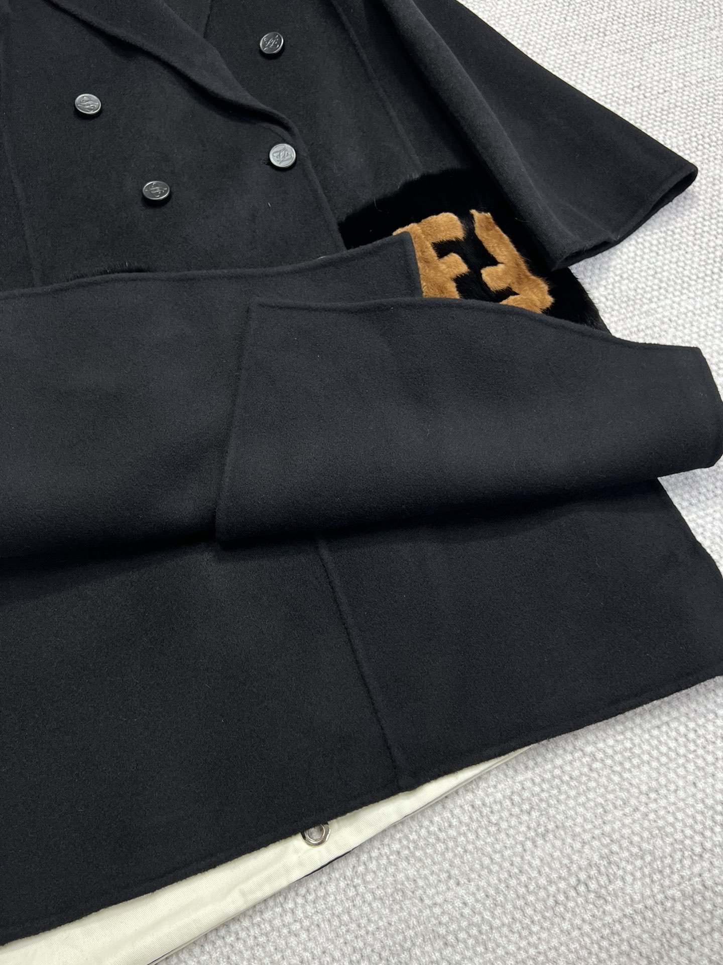NIGO Fendi Women's Autumn And Winter Solid Color Splicing Double Breasted Medium Length Wool Long Sleeved Coat Jacket #nigo72647