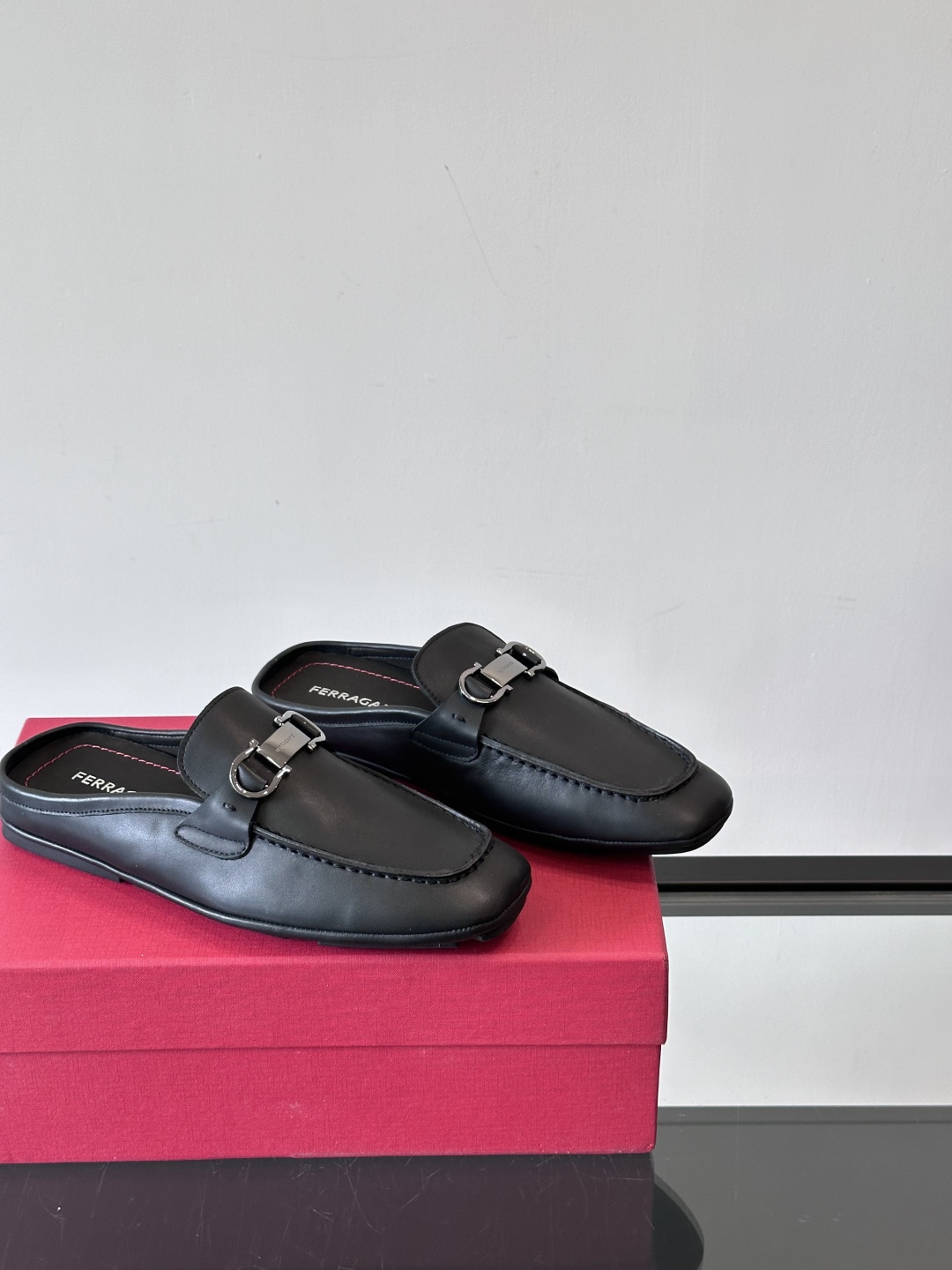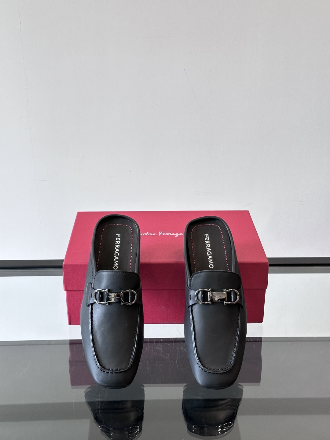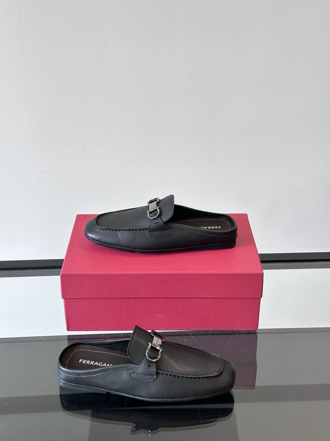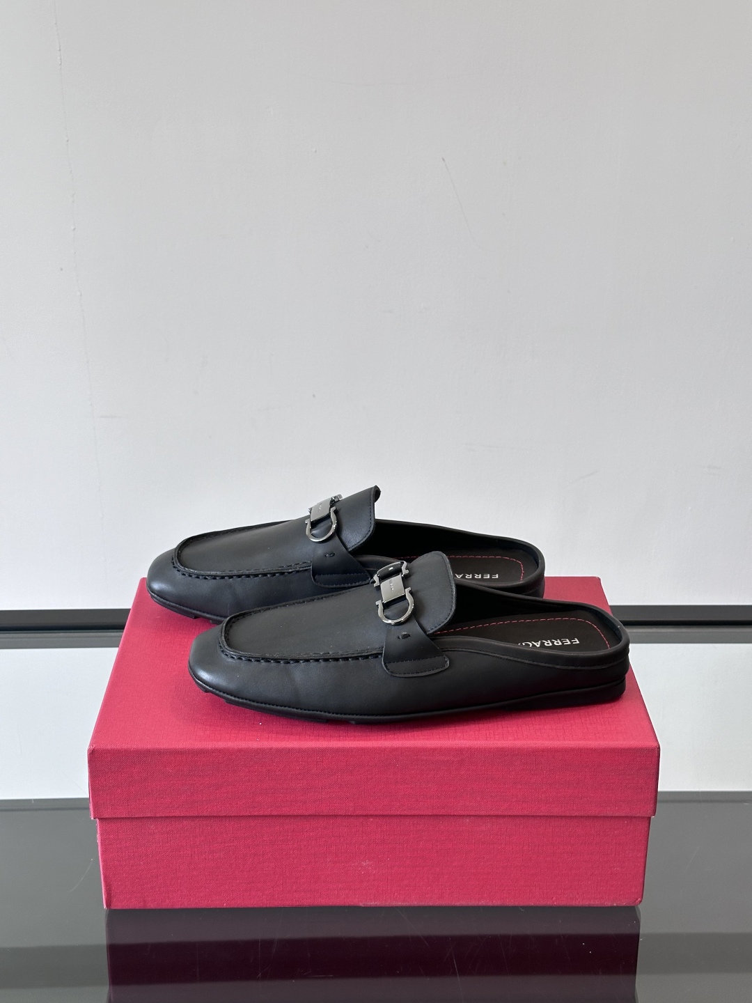 NIGO Ferragamo Men's Spring/Fall Solid Color Classic Calfskin Round Toe Open Back Mule Shoes #nigo78195