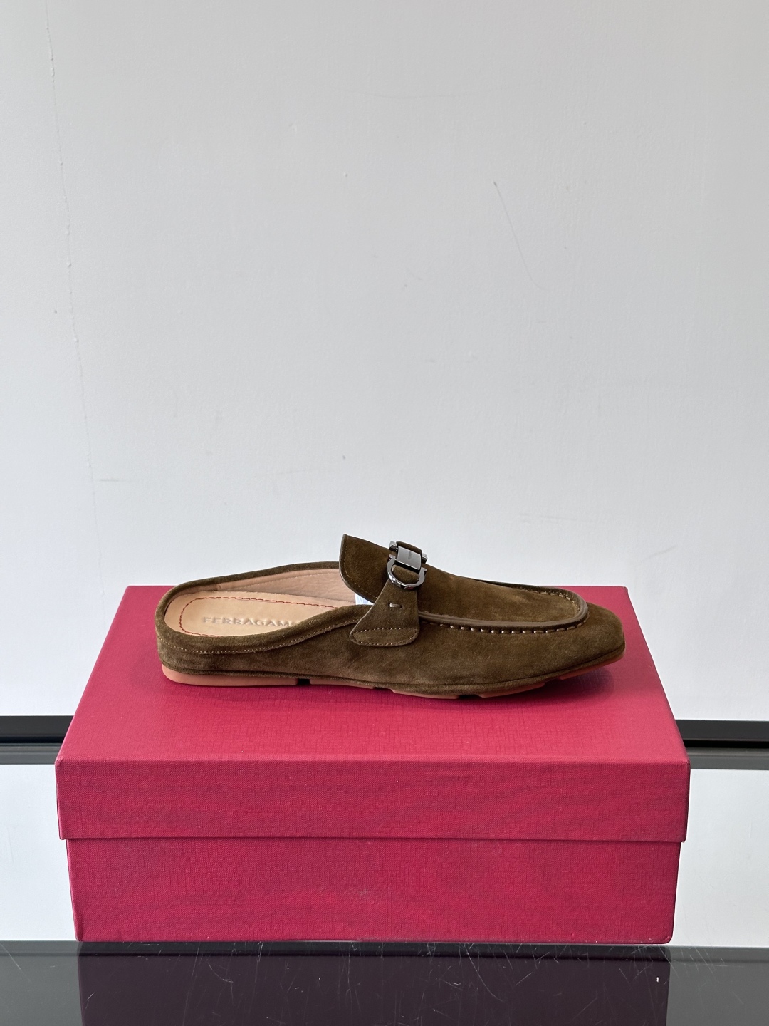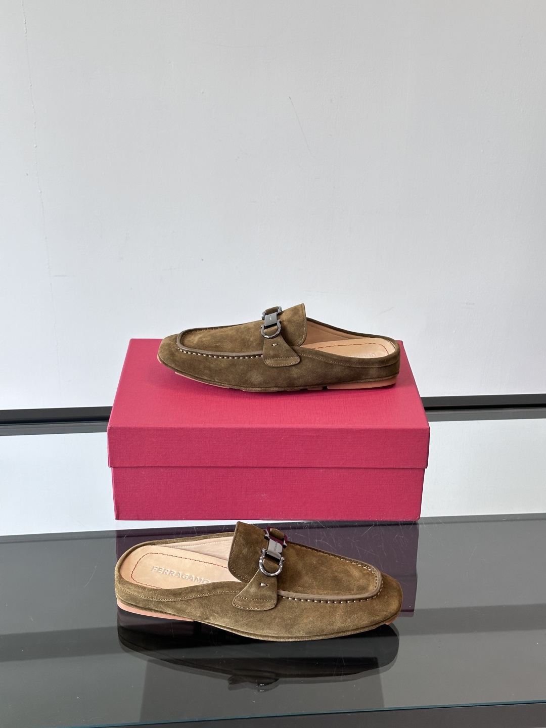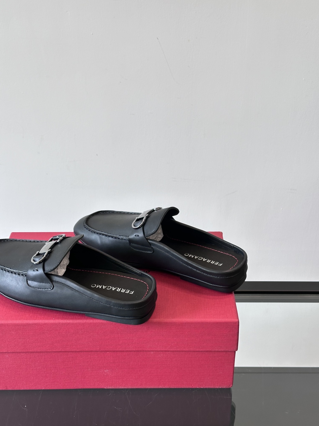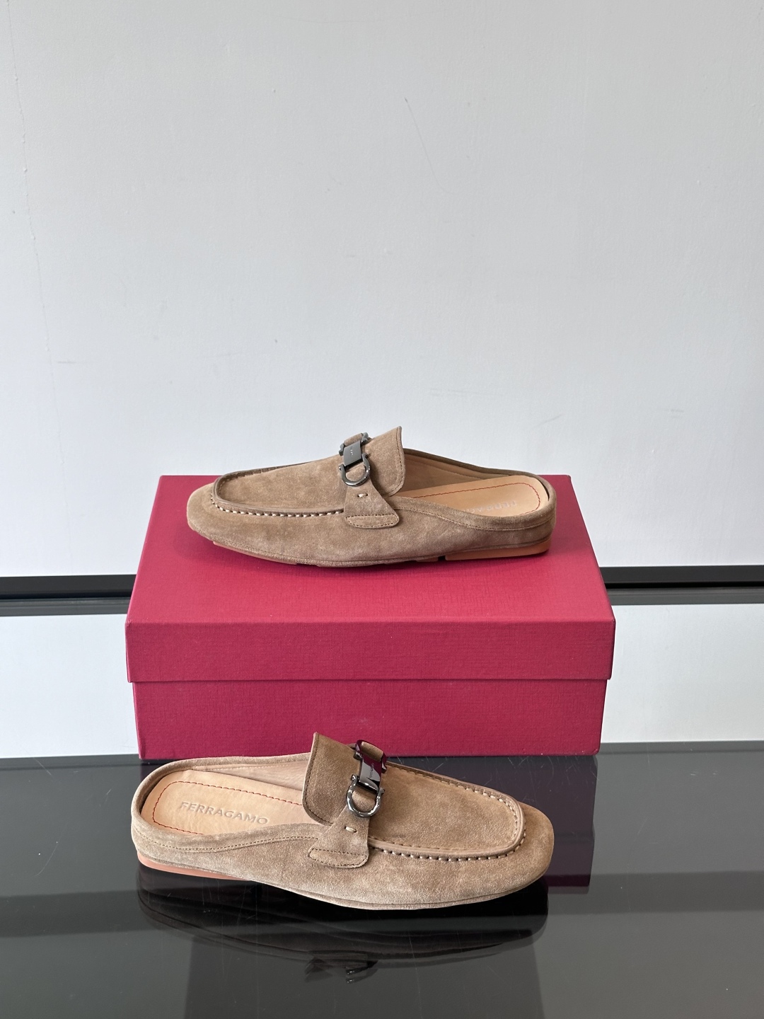 NIGO Ferragamo Men's Spring/Fall Solid Color Classic Calfskin Round Toe Open Back Mule Shoes #nigo78195
