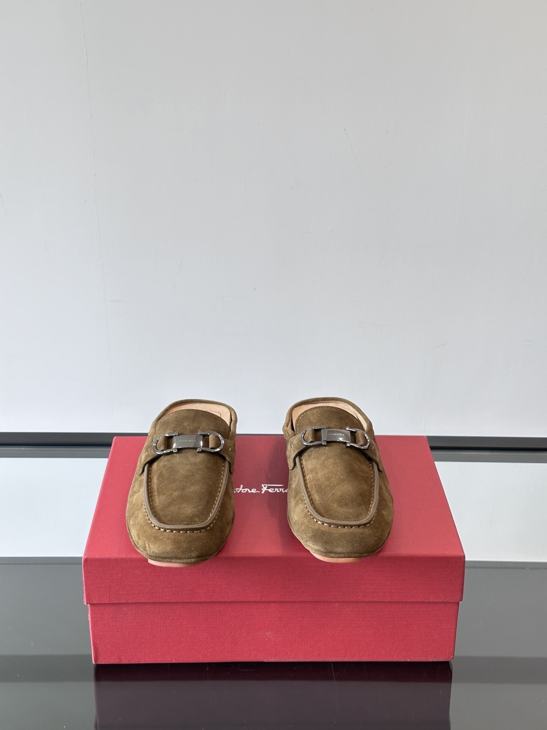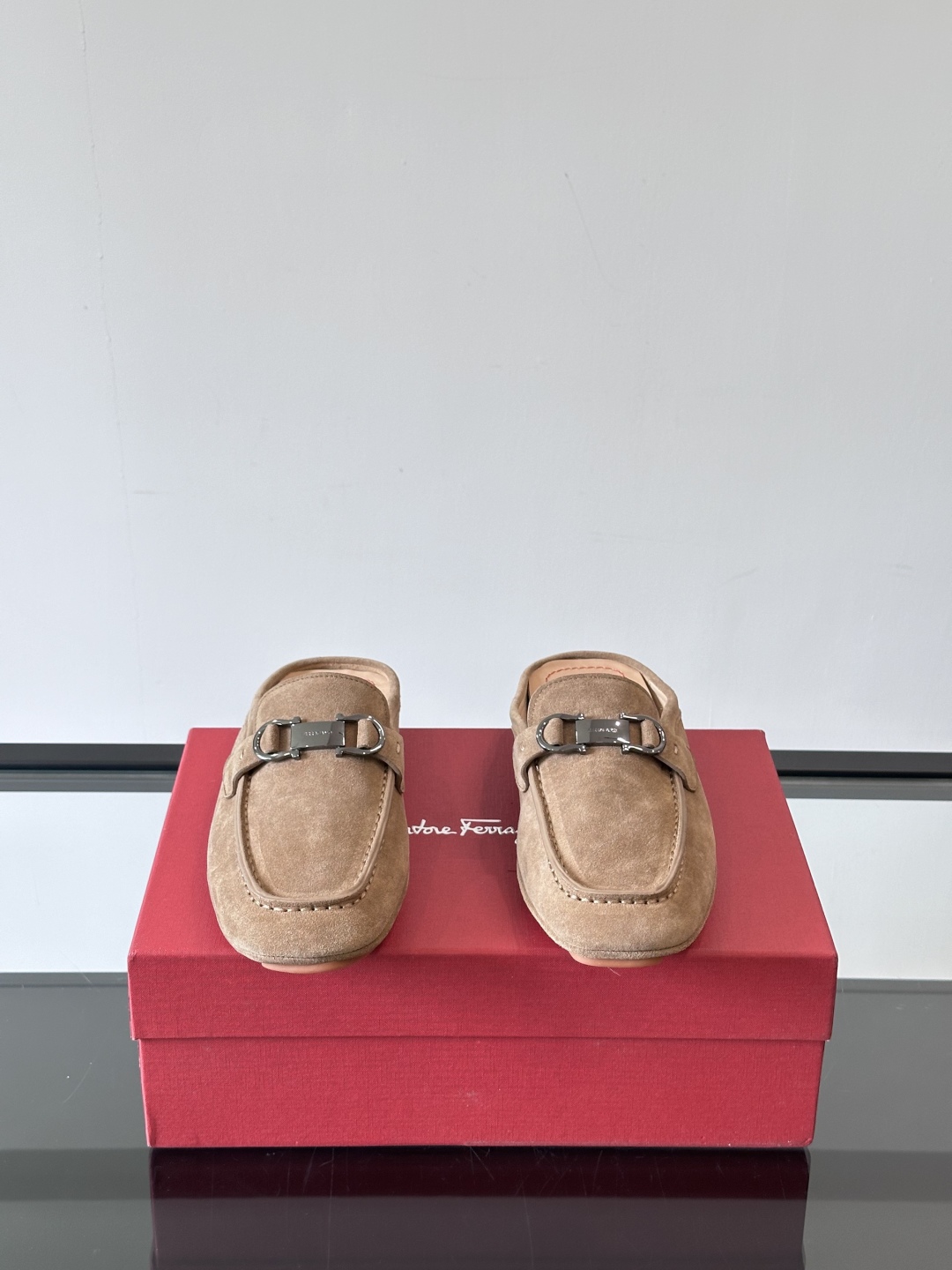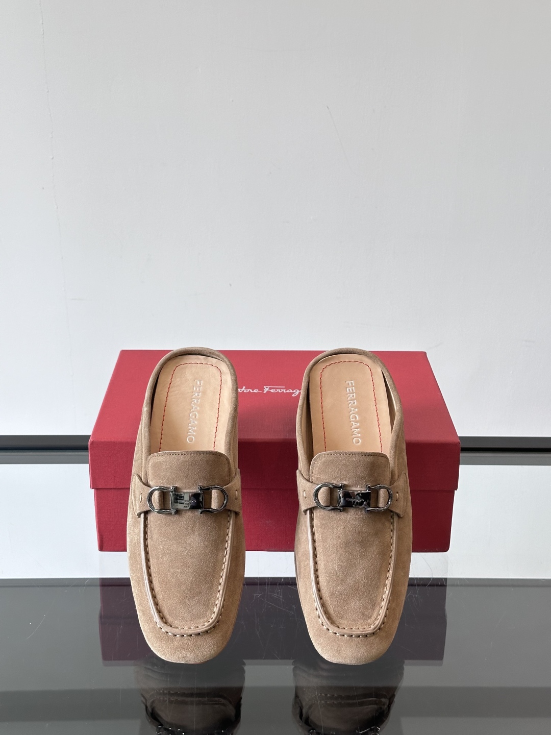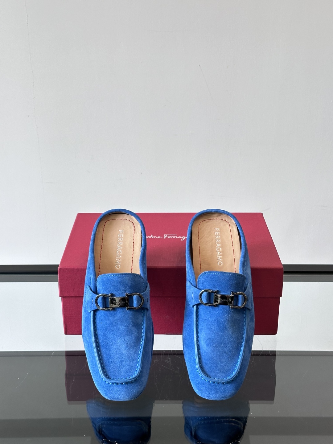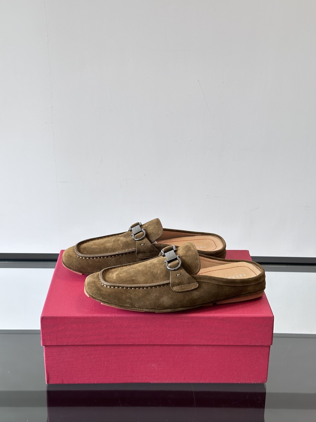 NIGO Ferragamo Men's Spring/Fall Solid Color Classic Calfskin Round Toe Open Back Mule Shoes #nigo78195