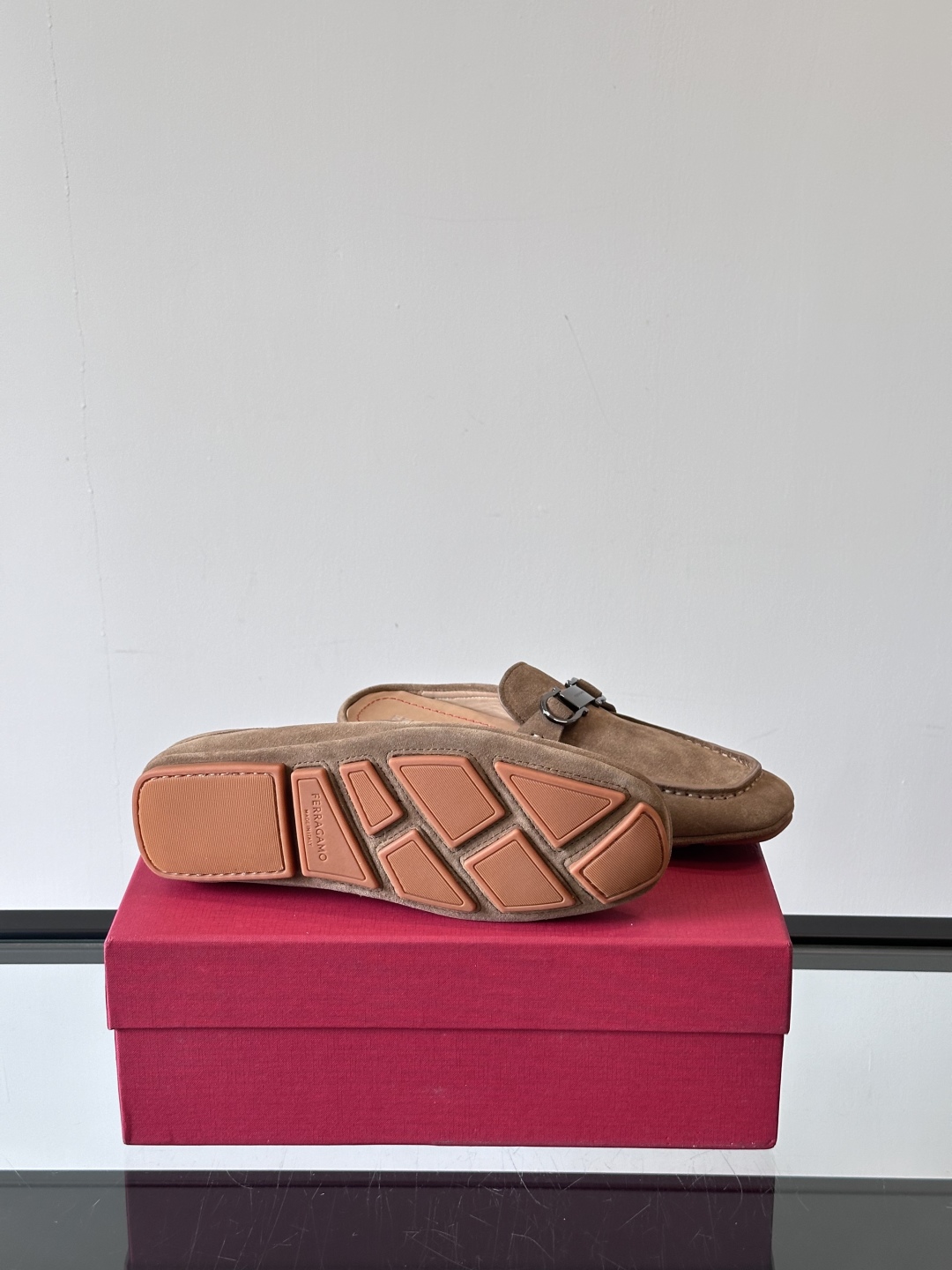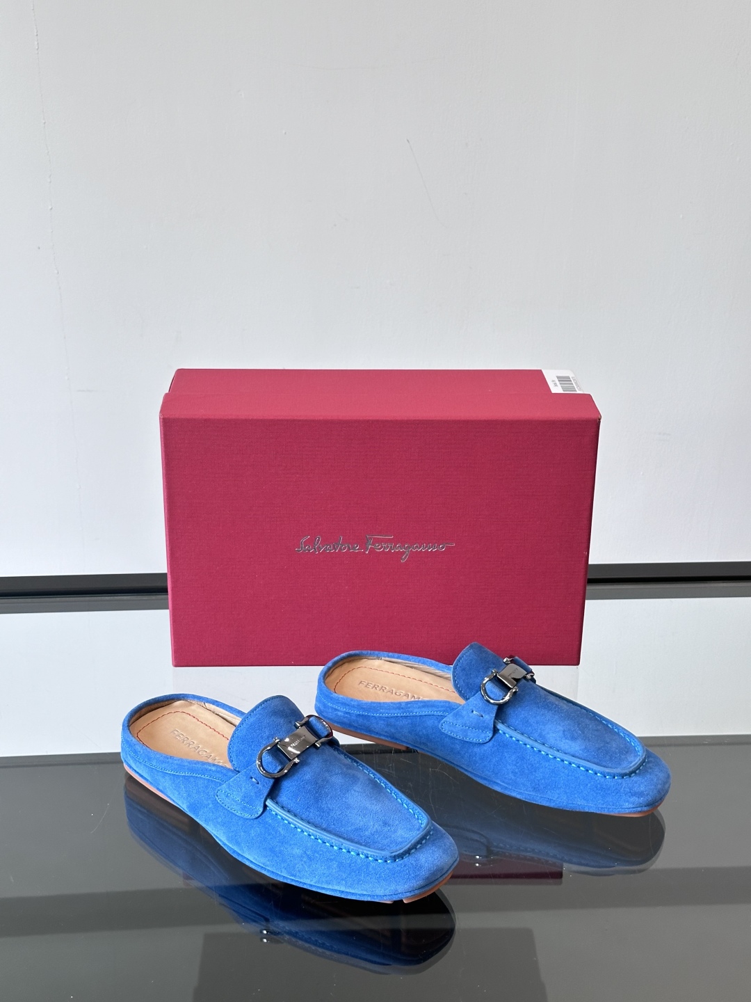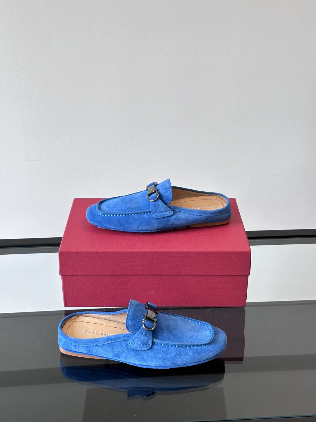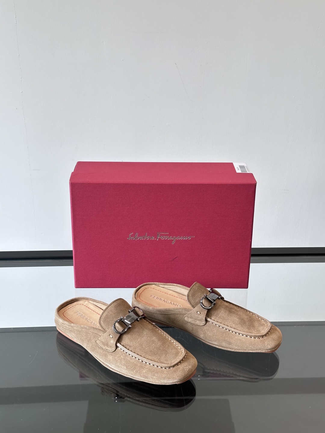 NIGO Ferragamo Men's Spring/Fall Solid Color Classic Calfskin Round Toe Open Back Mule Shoes #nigo78195