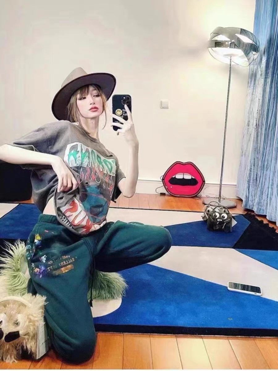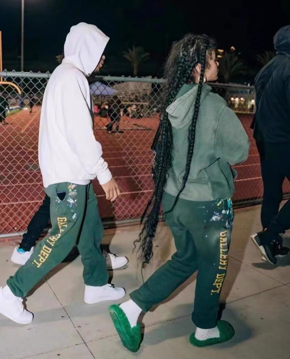NIGO Gallery Dept. Men's Spring And Autumn Graffiti Letters Printing Solid Color Do Old Hooded Sweatshirt Casual Ink Splash Elastic Waist Drawstring Pants Ngvp #nigo9291