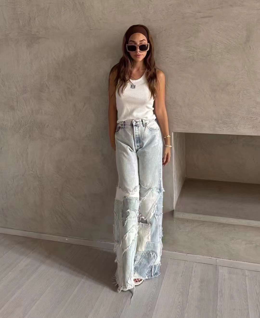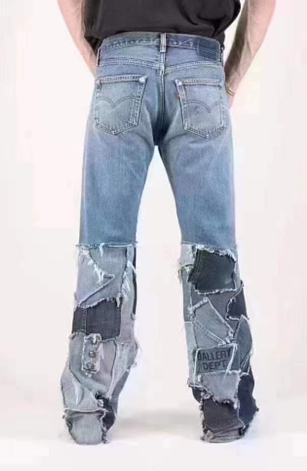 NIGO Gallery Dept. Men's Spring And Fall Solid Color Splicing Do Old Loose Wide-Leg Denim Pants Ngvp #nigo8751