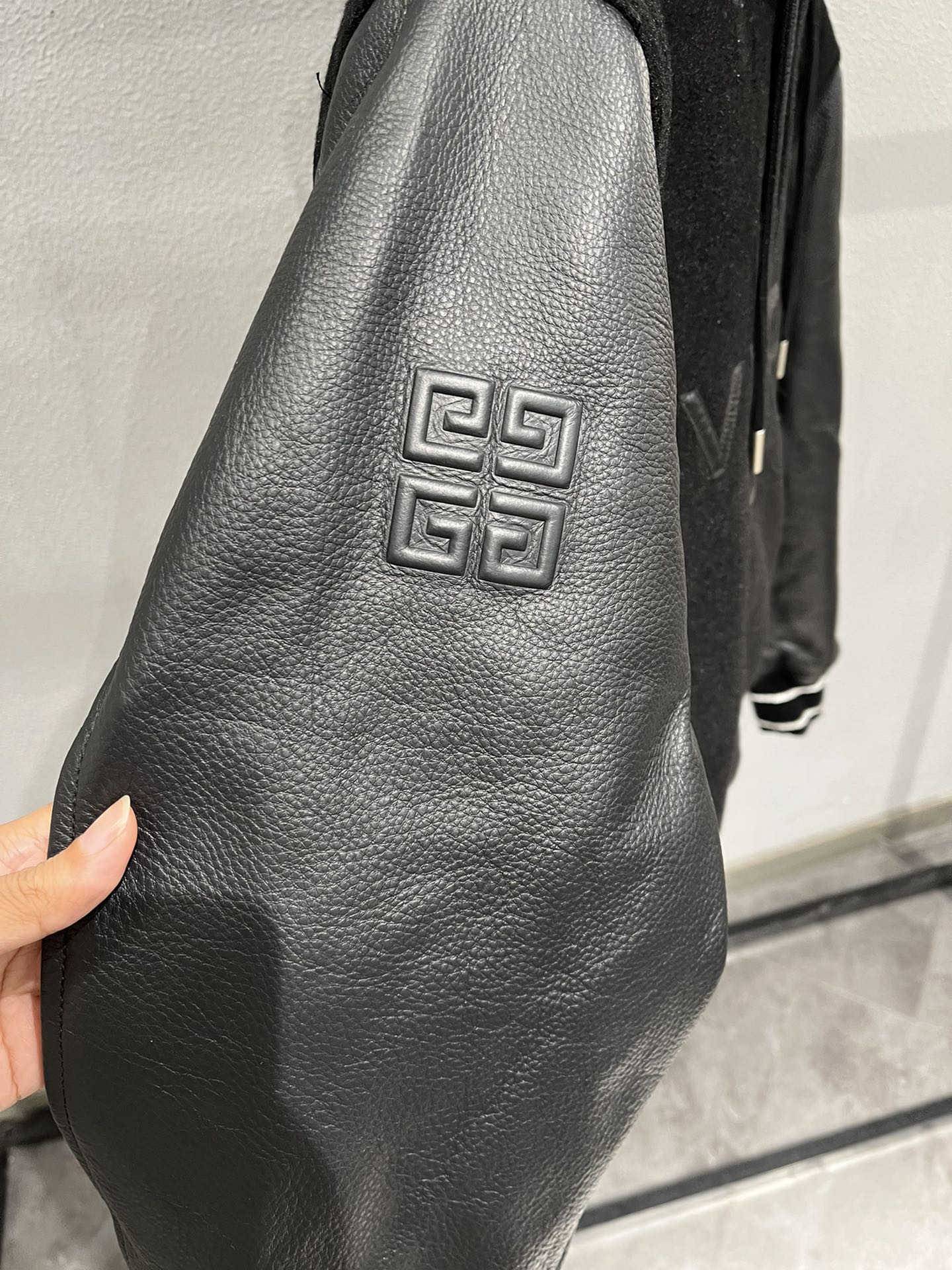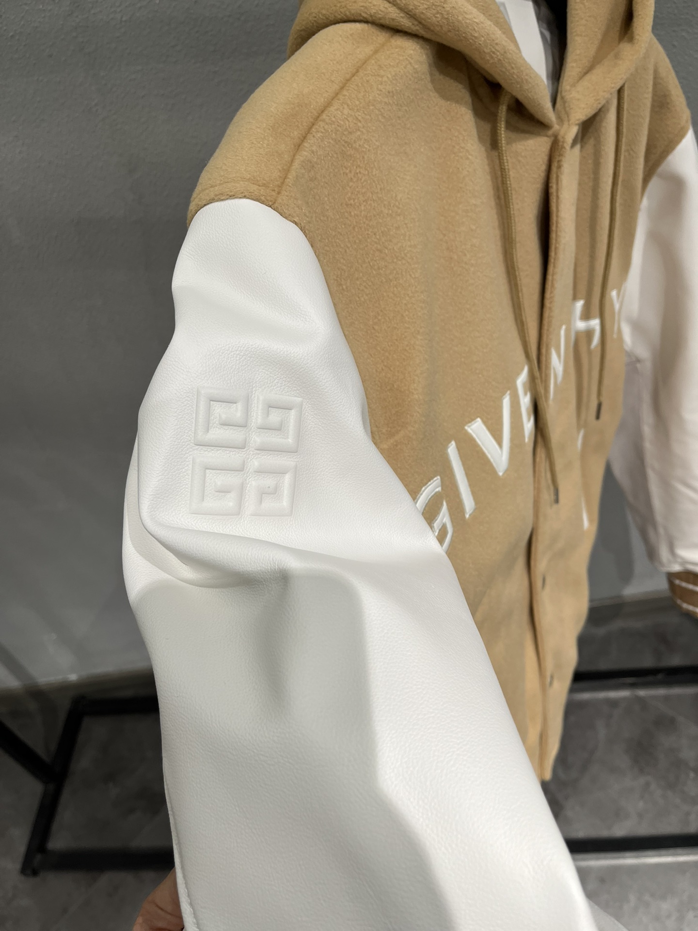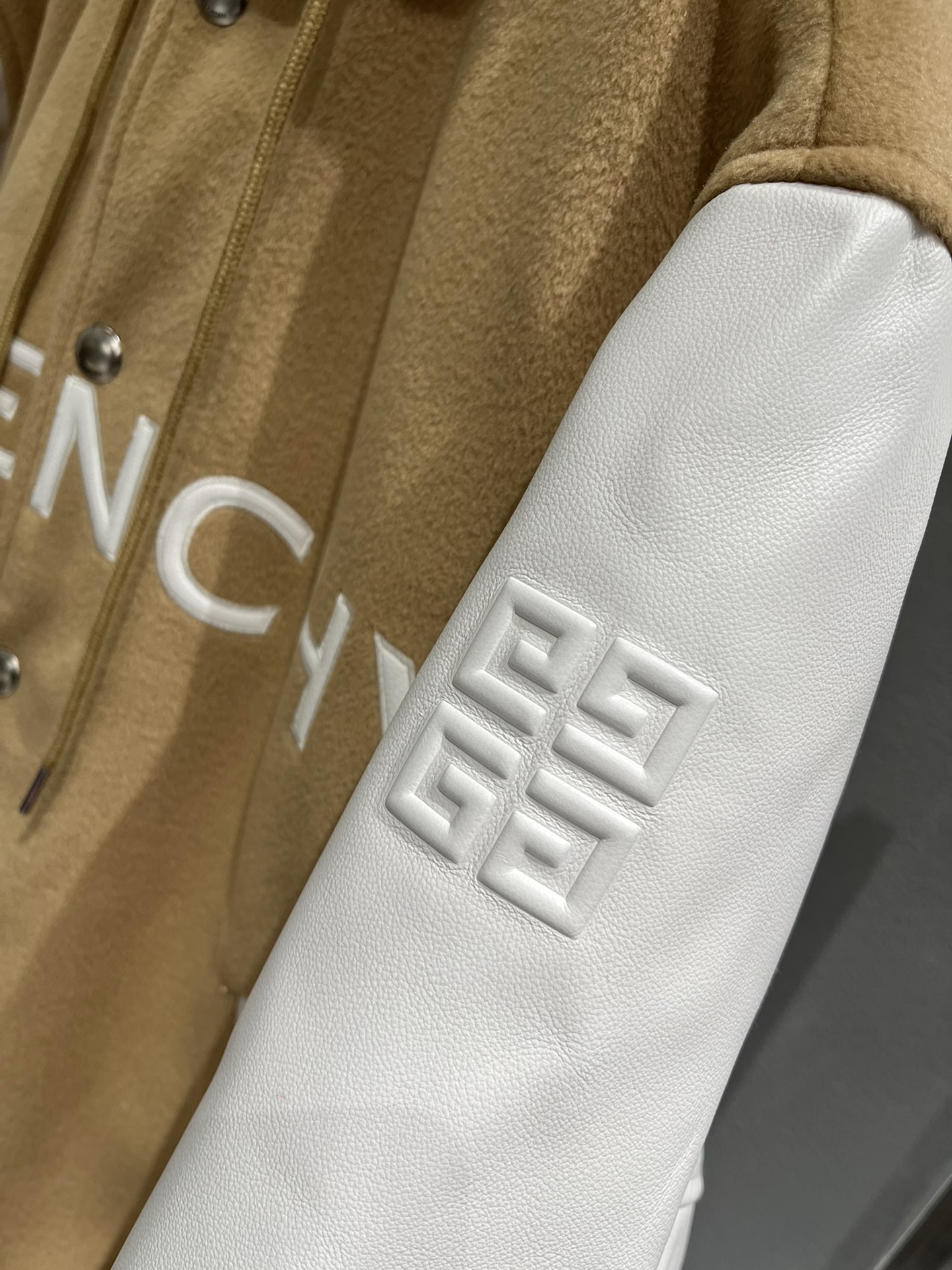 NIGO Givenchy Men's Autumn and Winter Color Blocking Single Breasted Wool and Leather Hooded Jacket #nigo98878