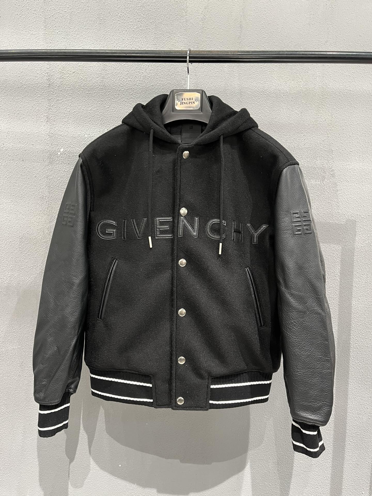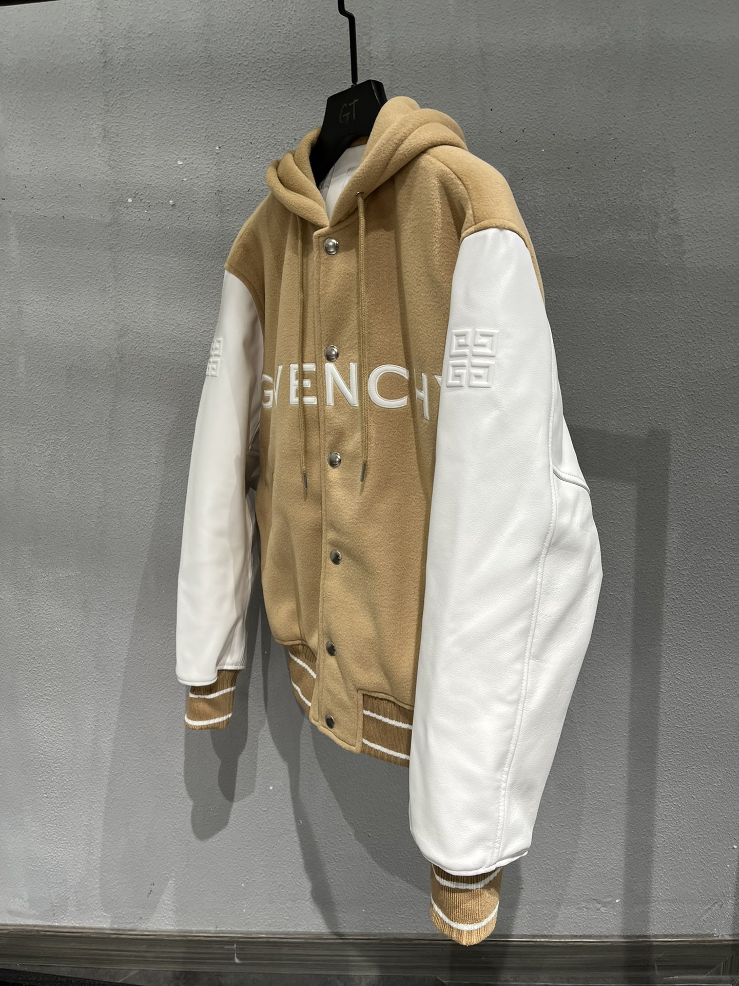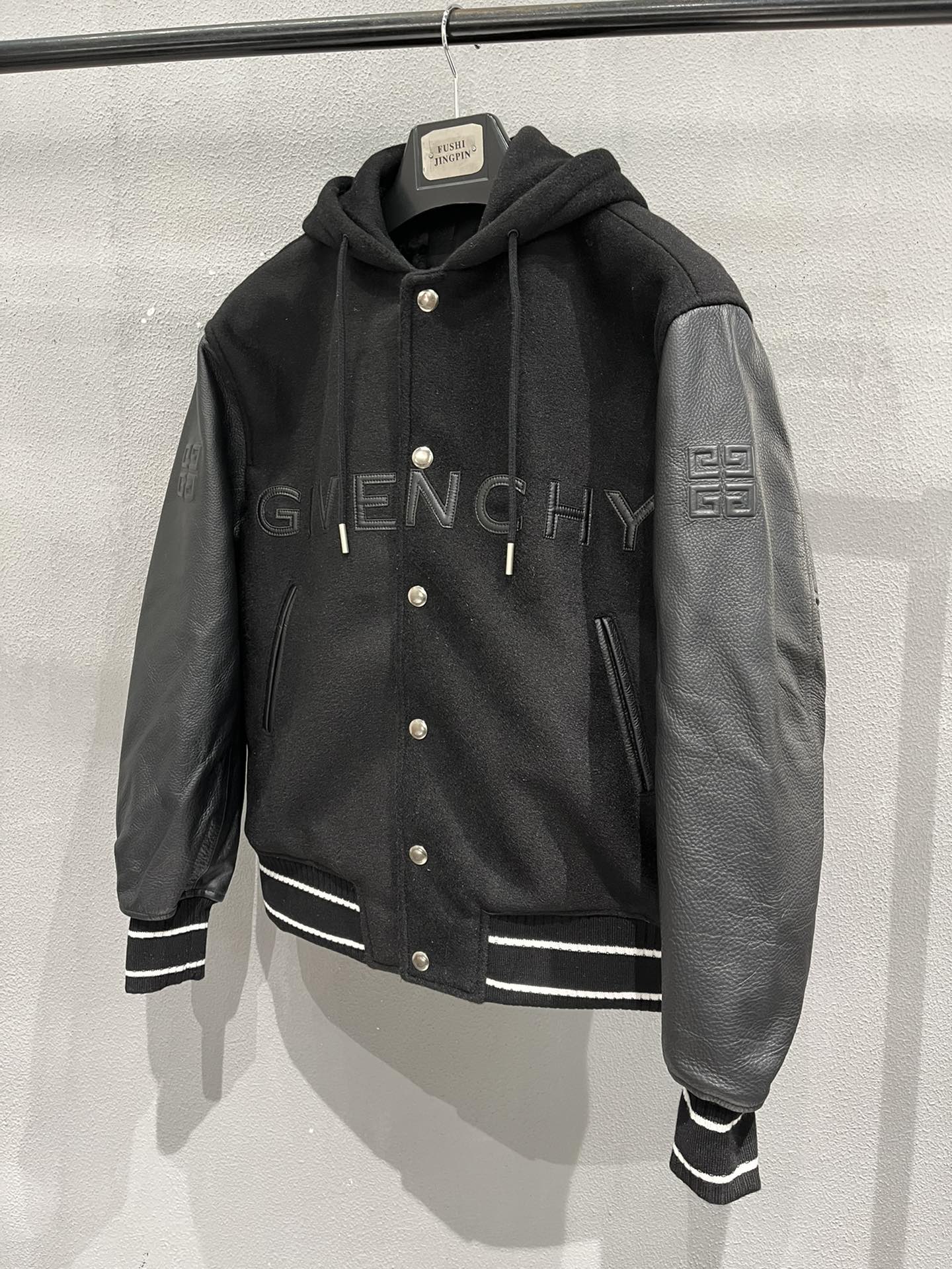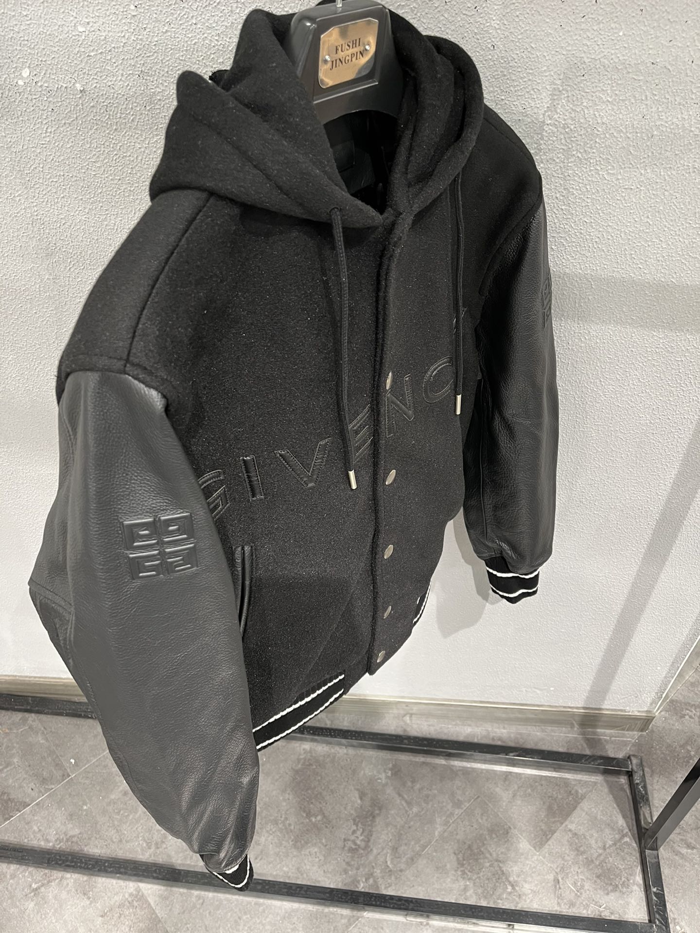 NIGO Givenchy Men's Autumn and Winter Color Blocking Single Breasted Wool and Leather Hooded Jacket #nigo98878