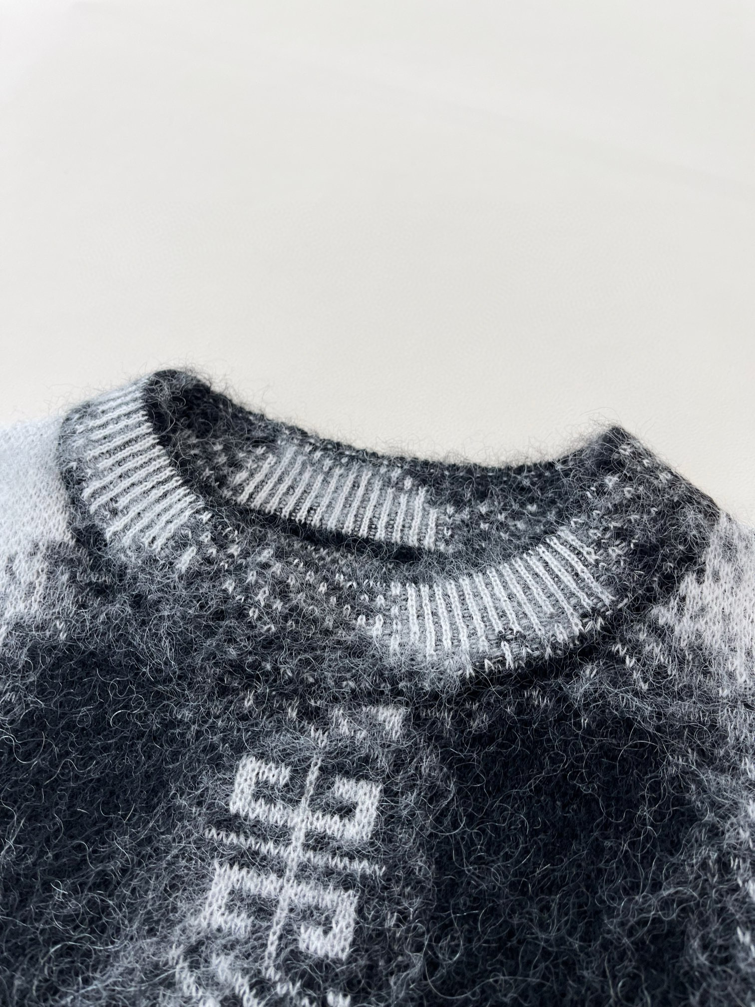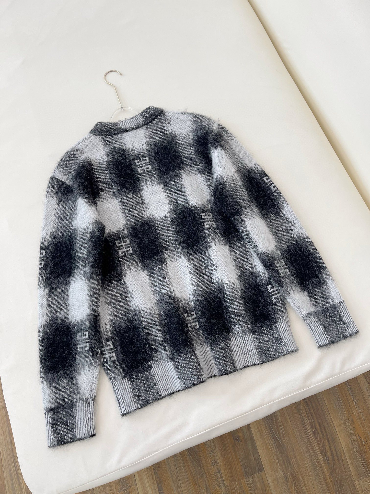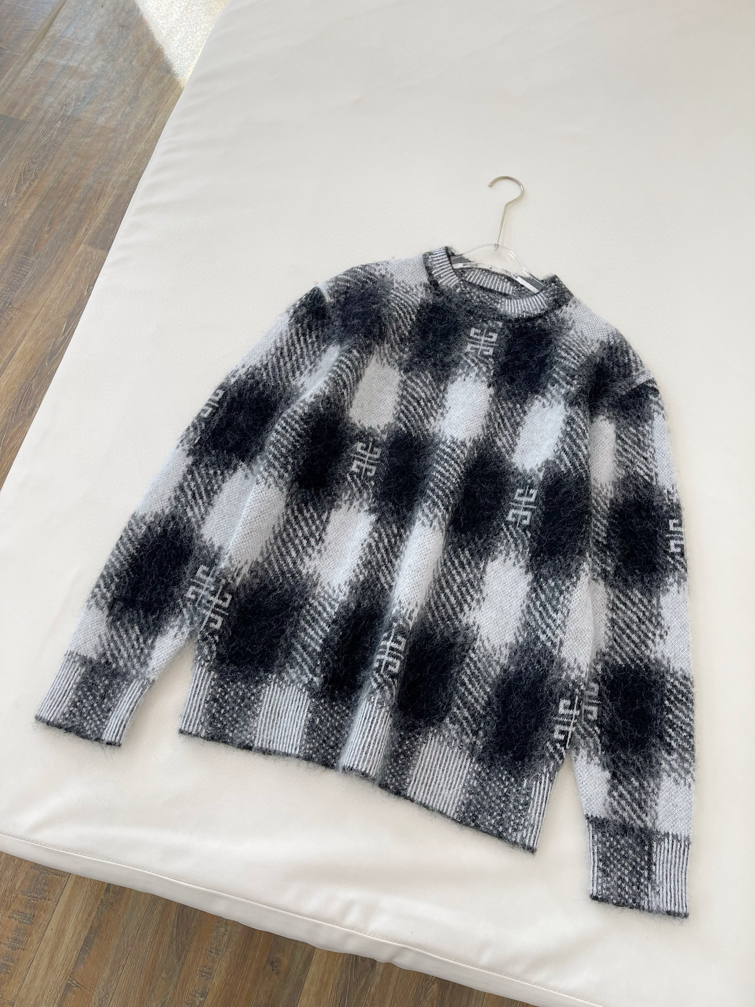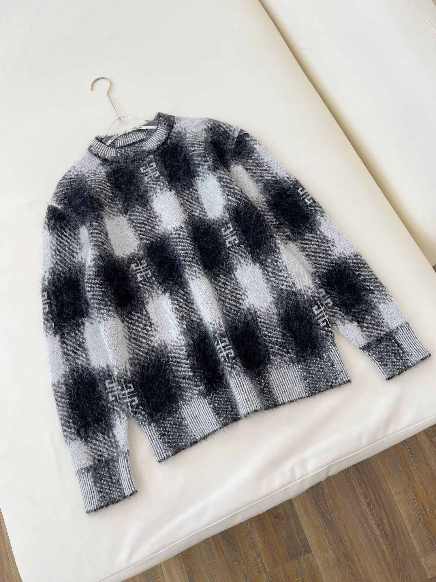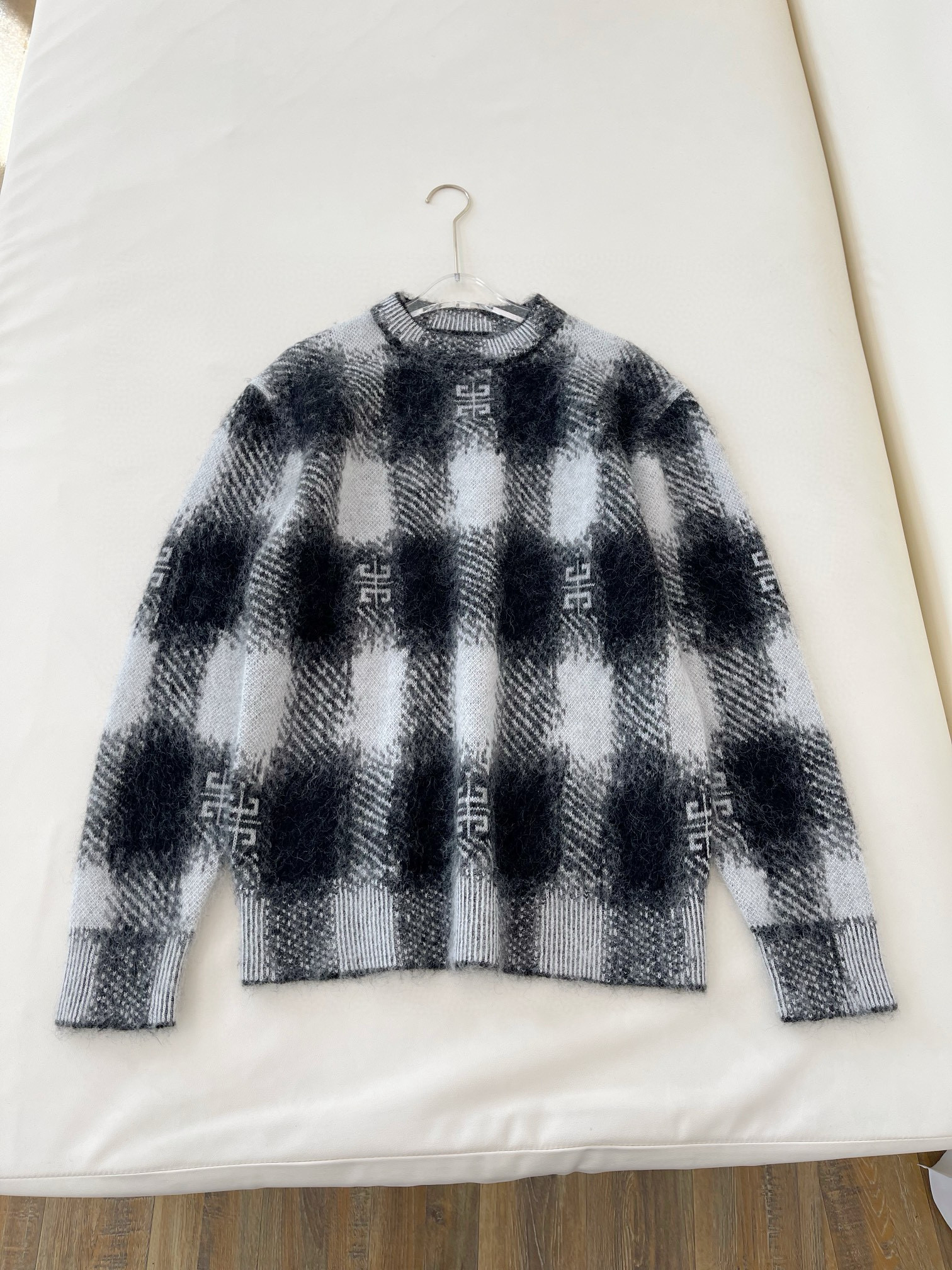 NIGO Givenchy Men's Autumn Black and White Check Mohair Cotton Knit Pullover Sweater #nigo97723