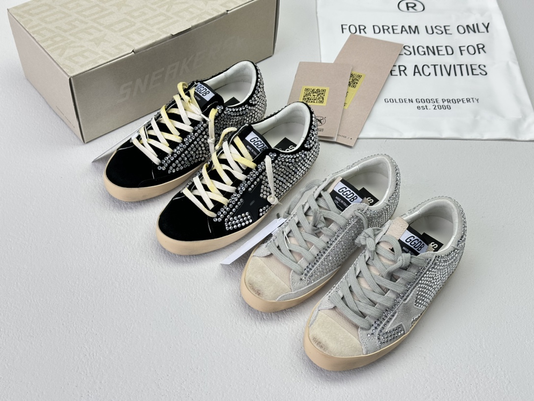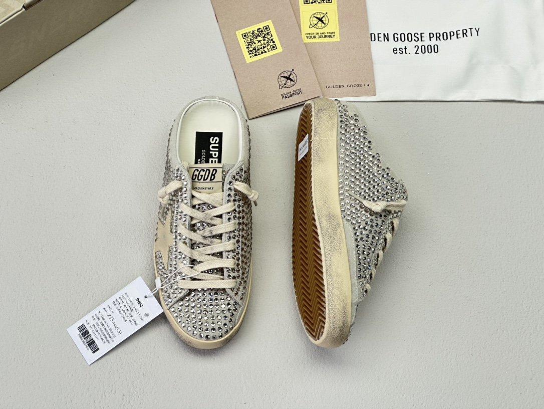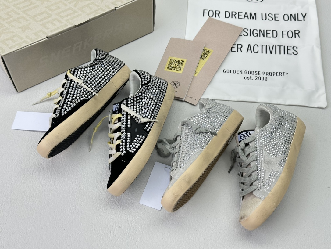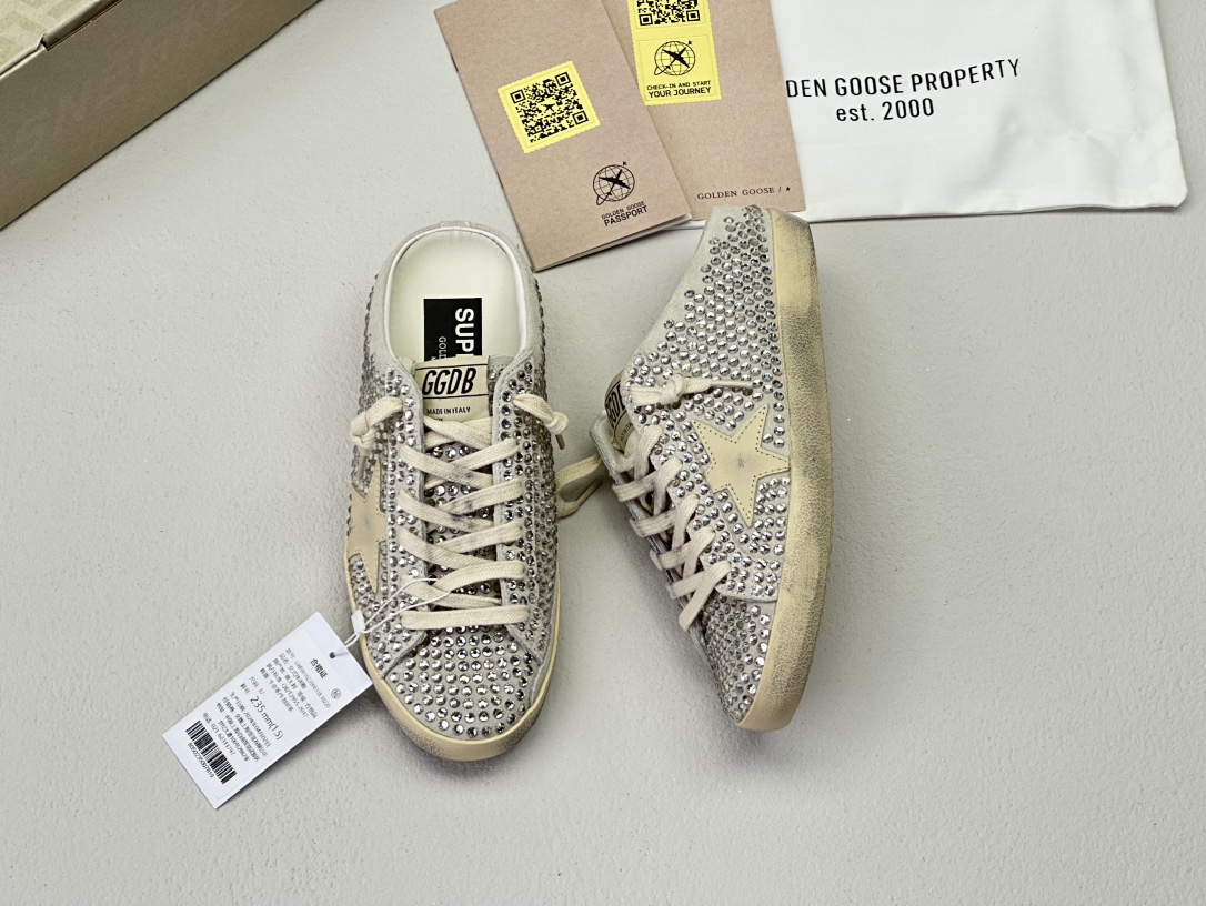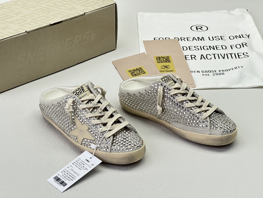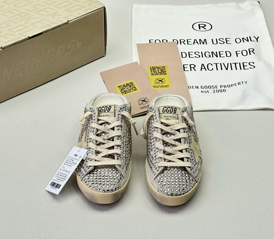 NIGO Golden Goose Women's Four Seasons Fashion Solid Color Super-Star Full Of Diamonds Baotou Slippers Leather Casual Round Head Tie Low Shoes #nigo99957