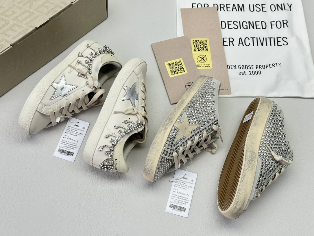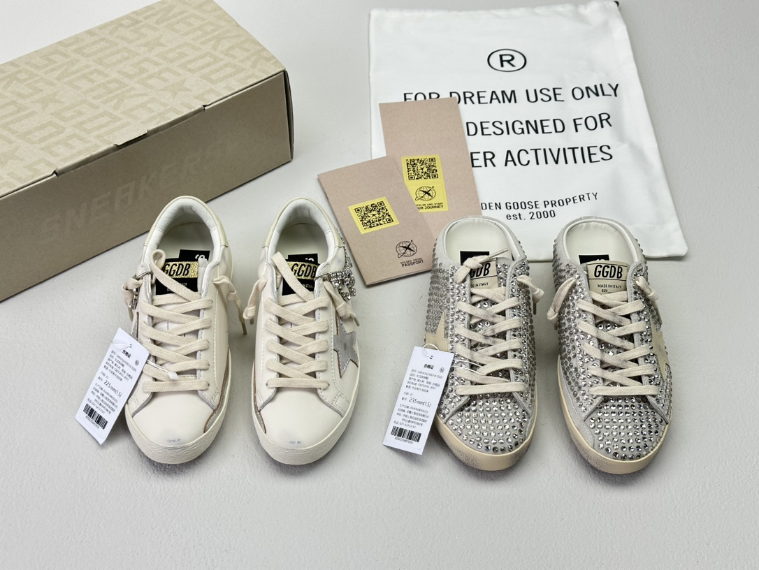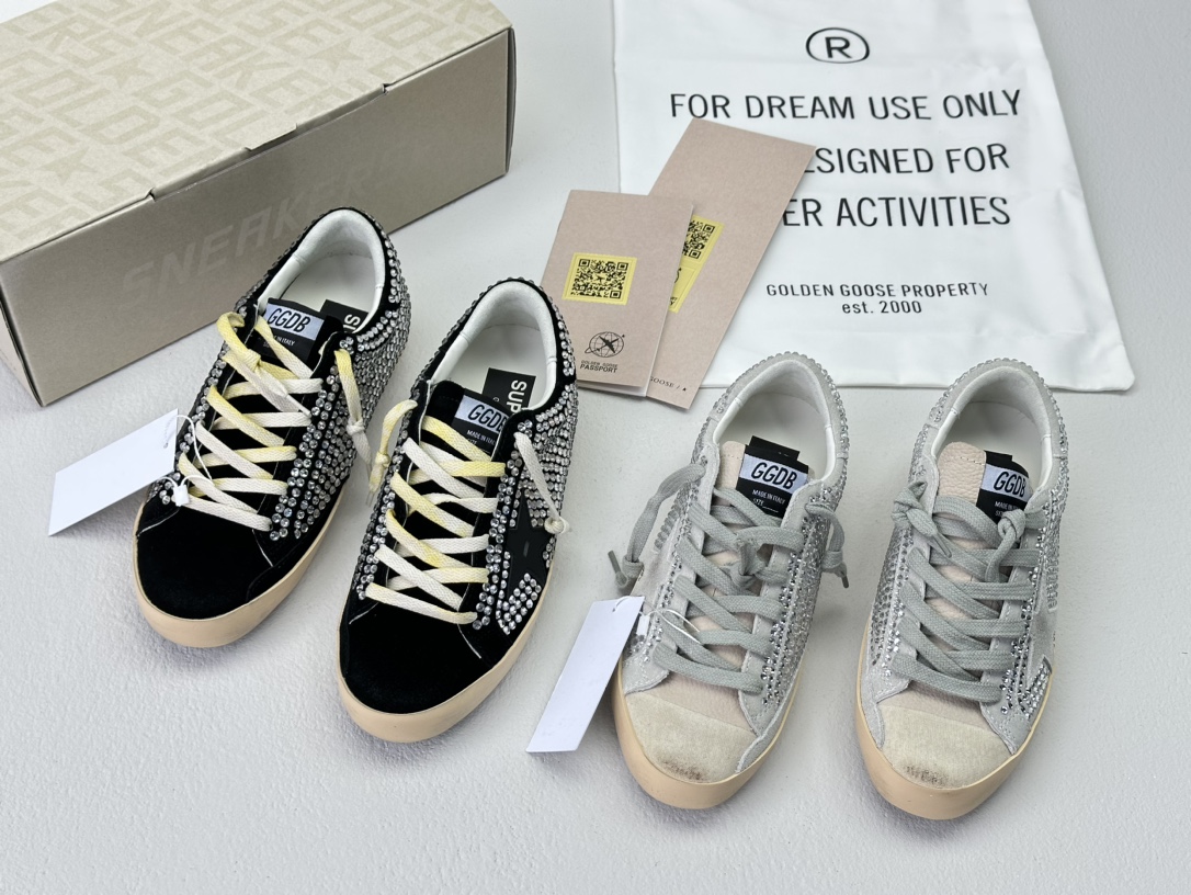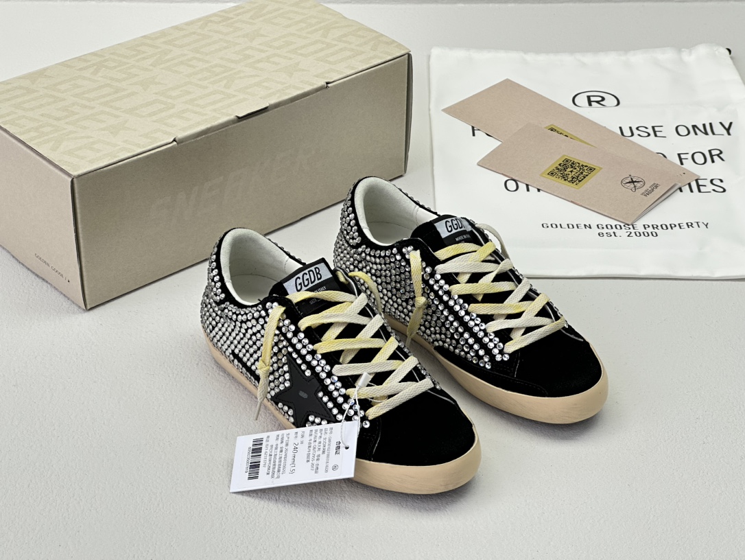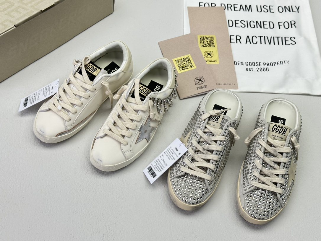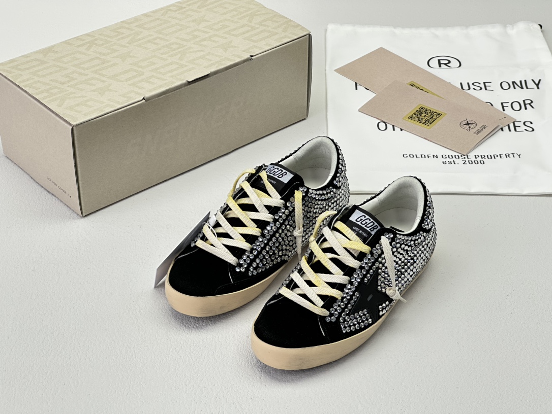 NIGO Golden Goose Women's Four Seasons Fashion Solid Color Super-Star Full Of Diamonds Baotou Slippers Leather Casual Round Head Tie Low Shoes #nigo99957