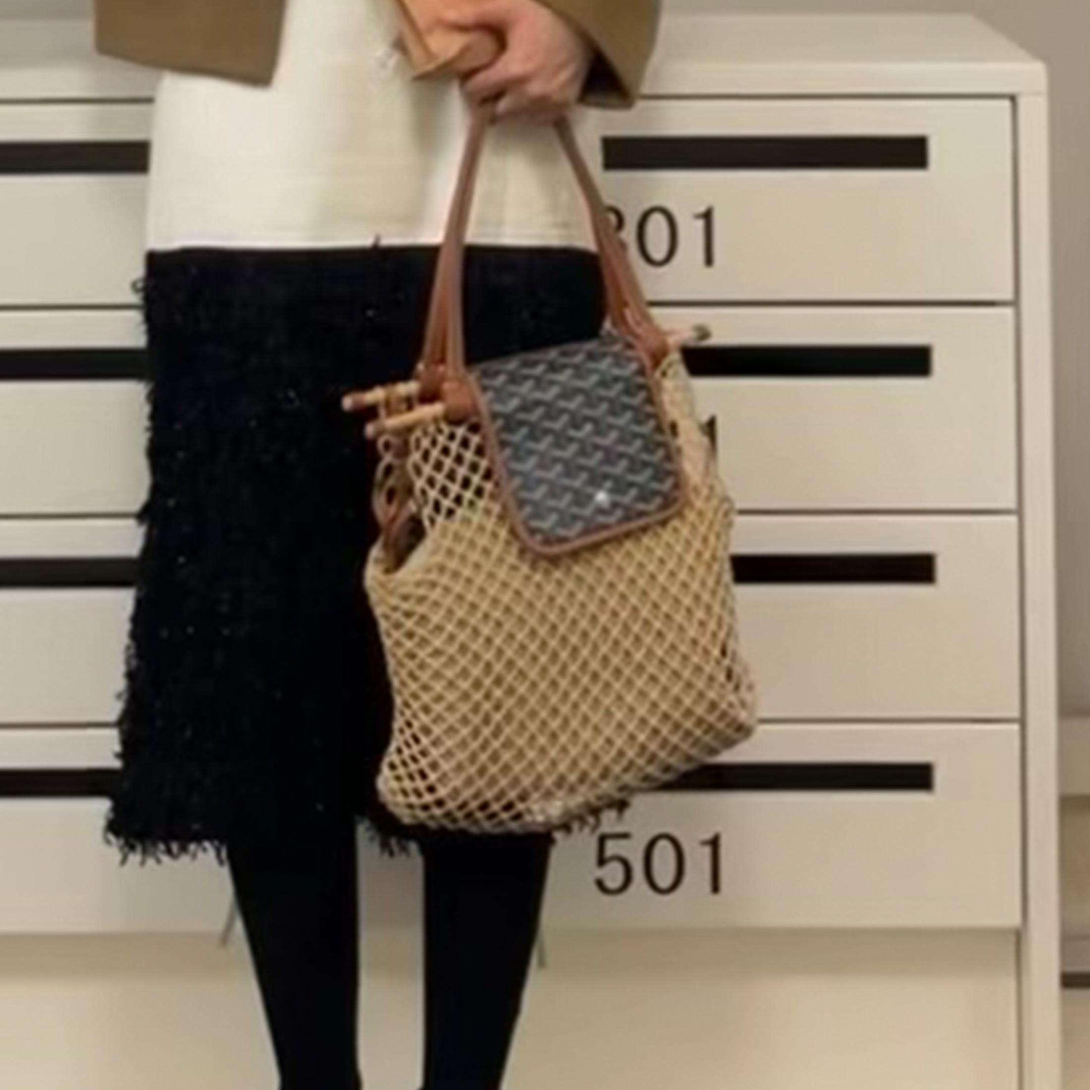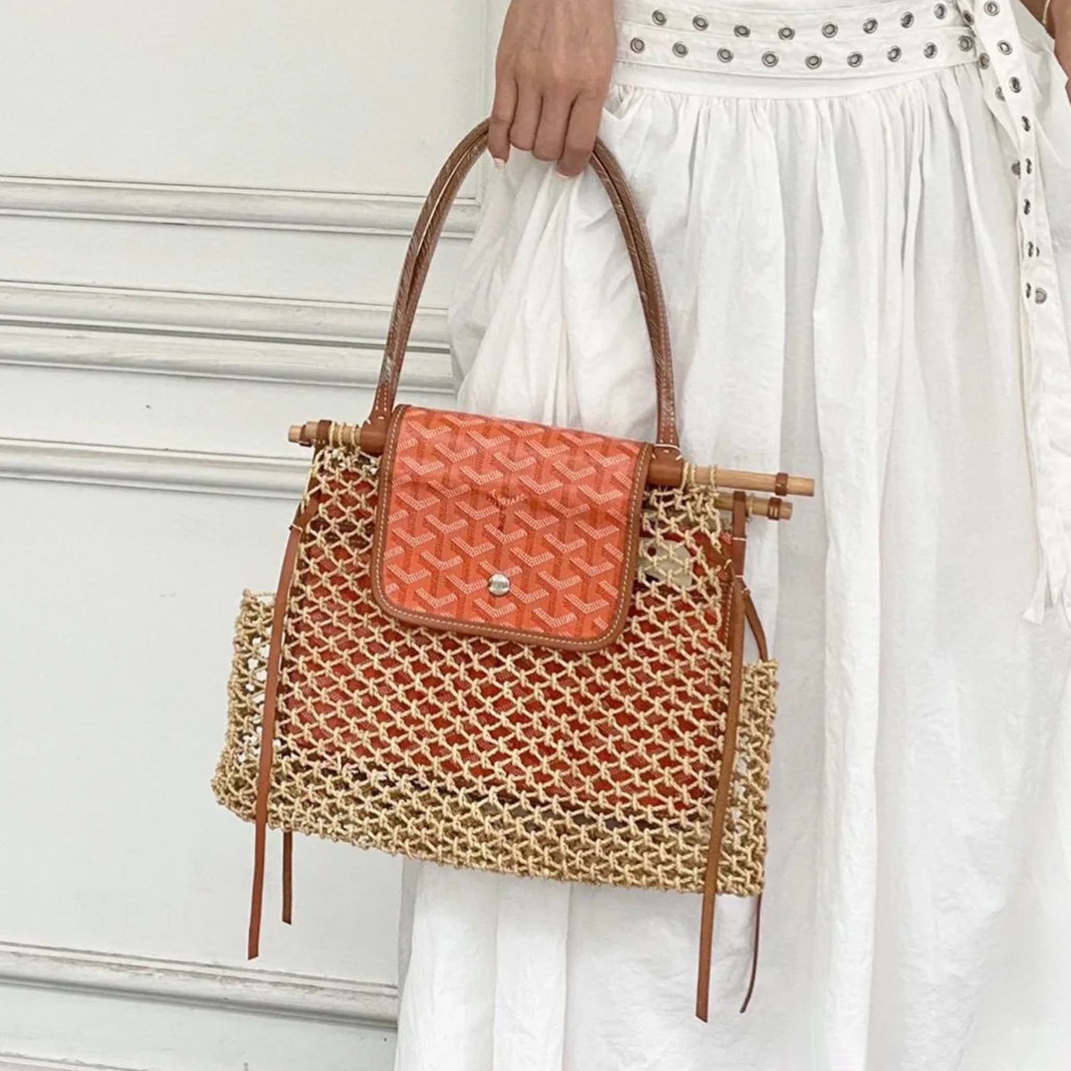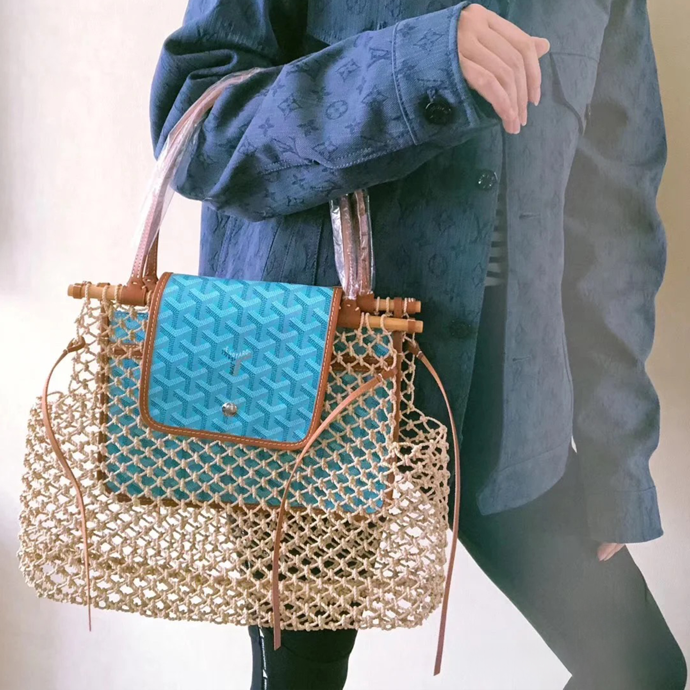 NIGO GOYARD Aligre Y Women's Four Seasons Fashion Temperament Weaving Colorblocking Leather Handbag Drawstring Casual Tote Bag Bags ALIGREPMLTY-20CL20F Ngvp #nigo8317