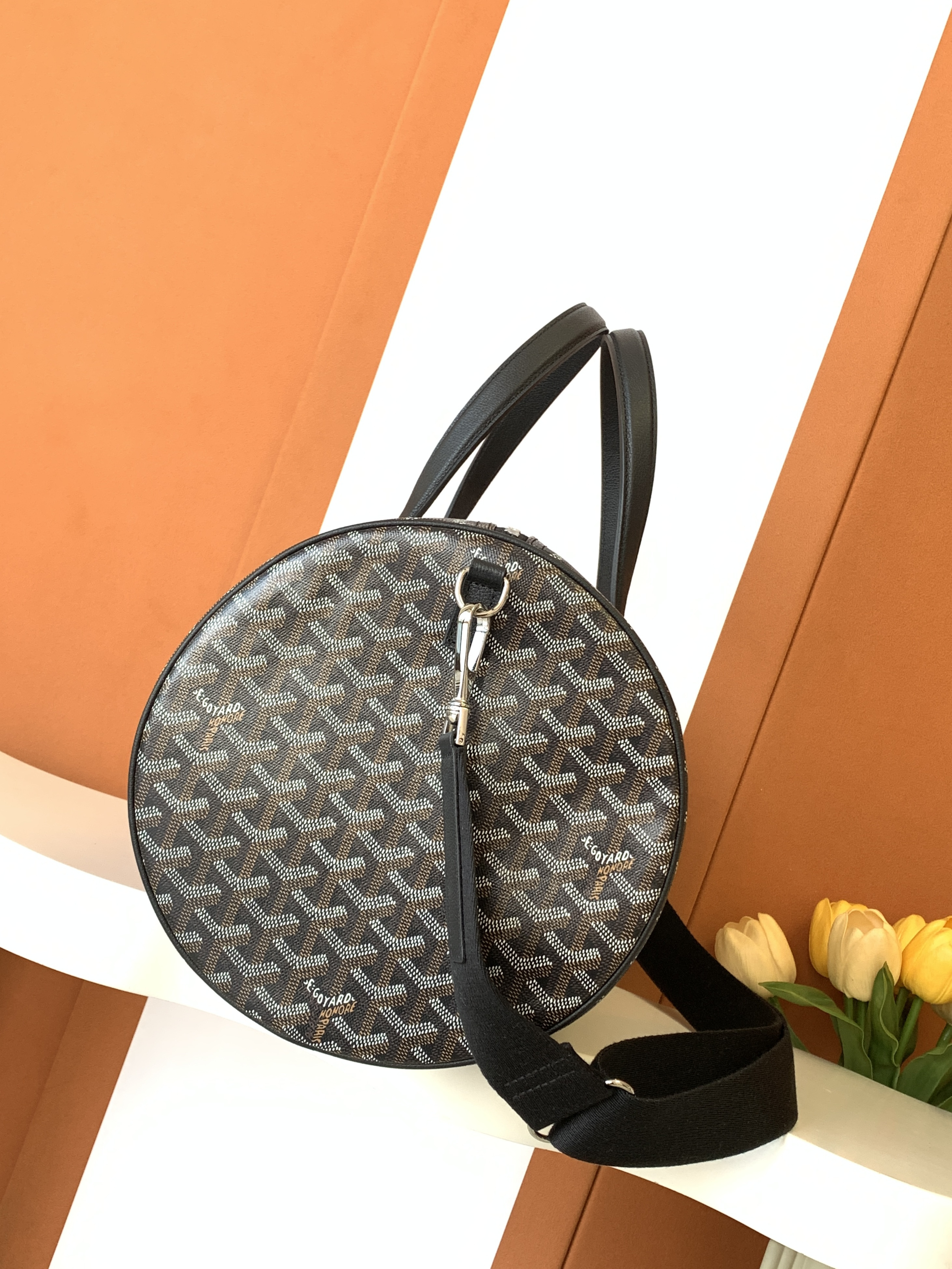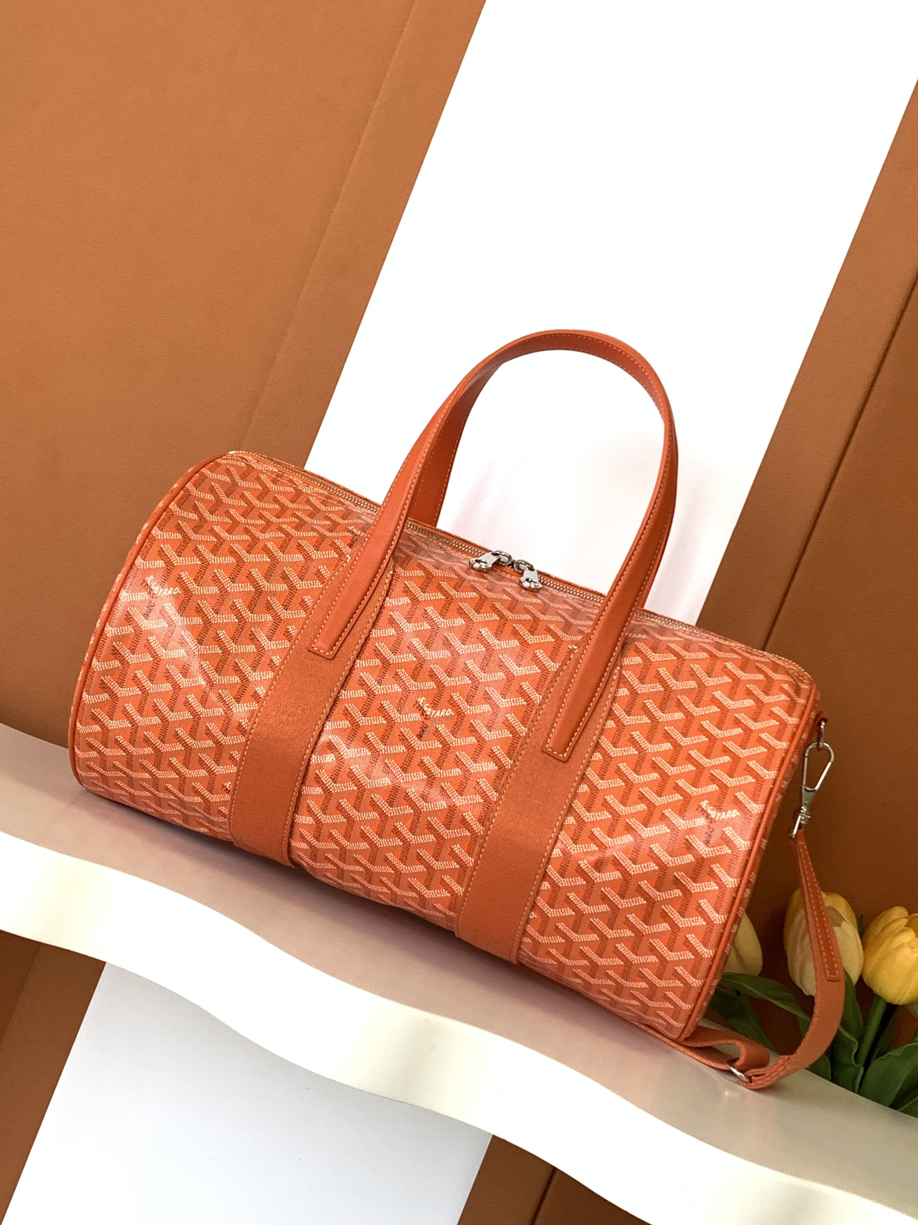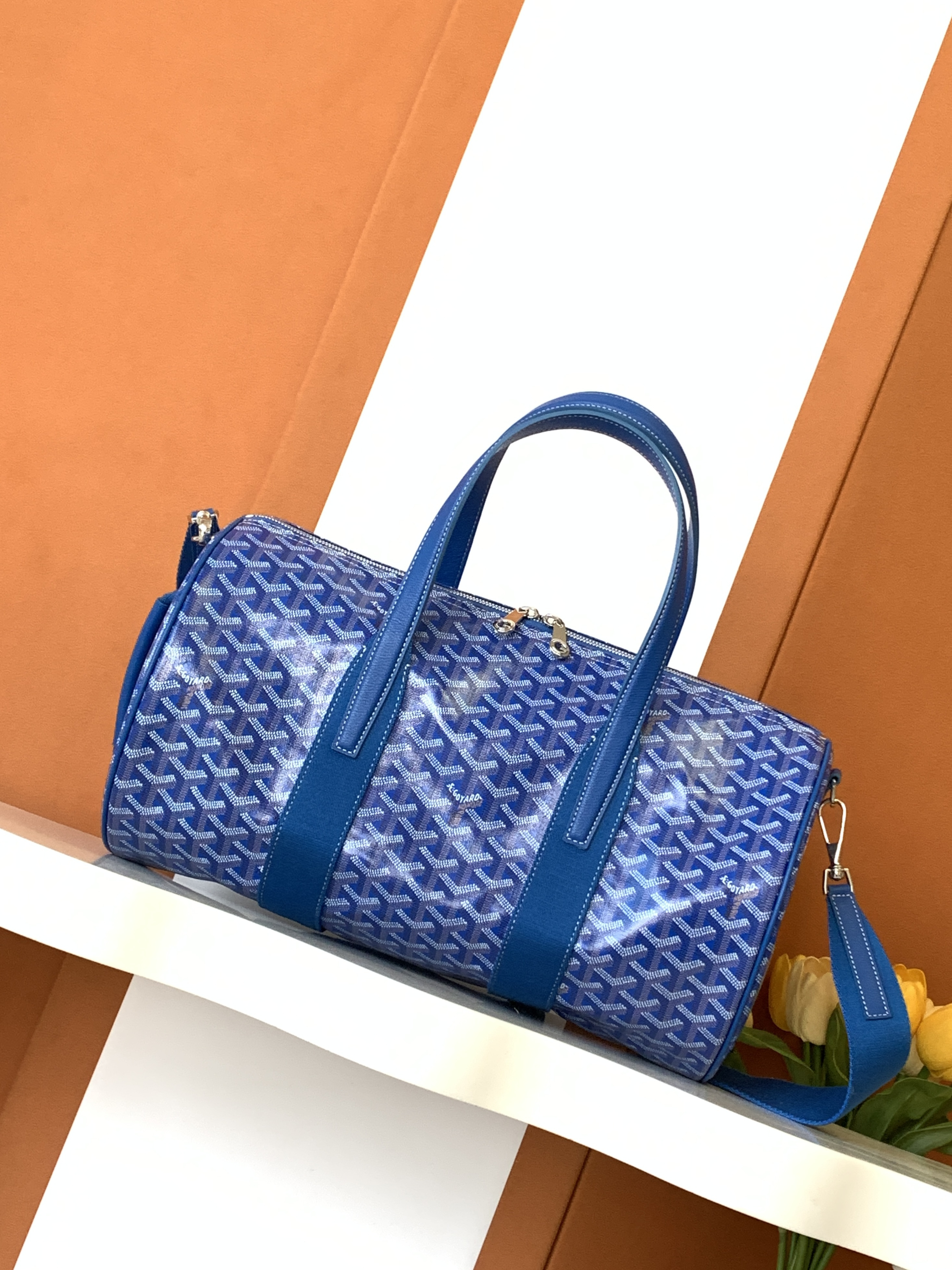 This Goyard handbag showcases the brand's exceptional craftsmanship and attention to detail. this piece combines timeless luxury with modern style.