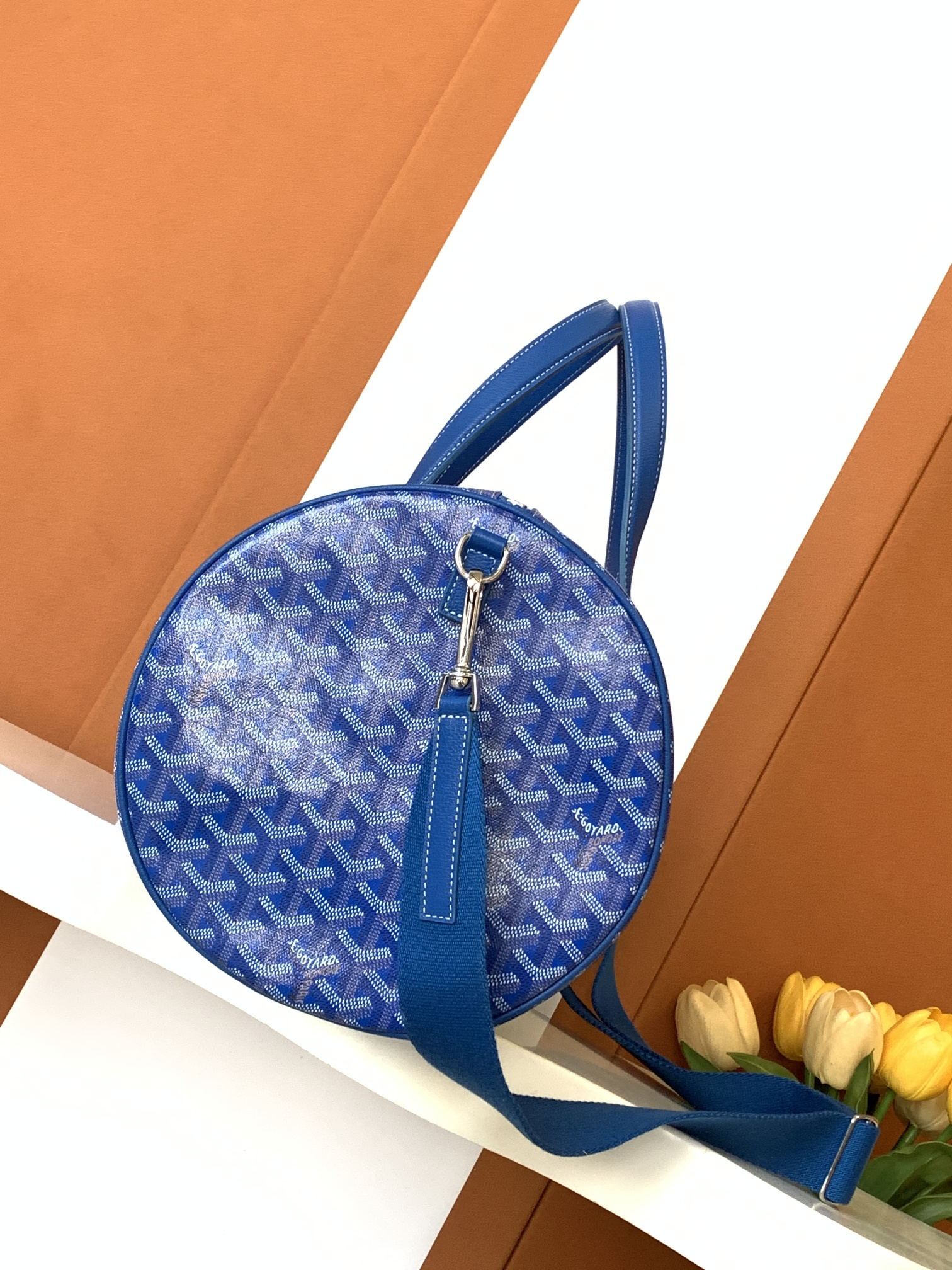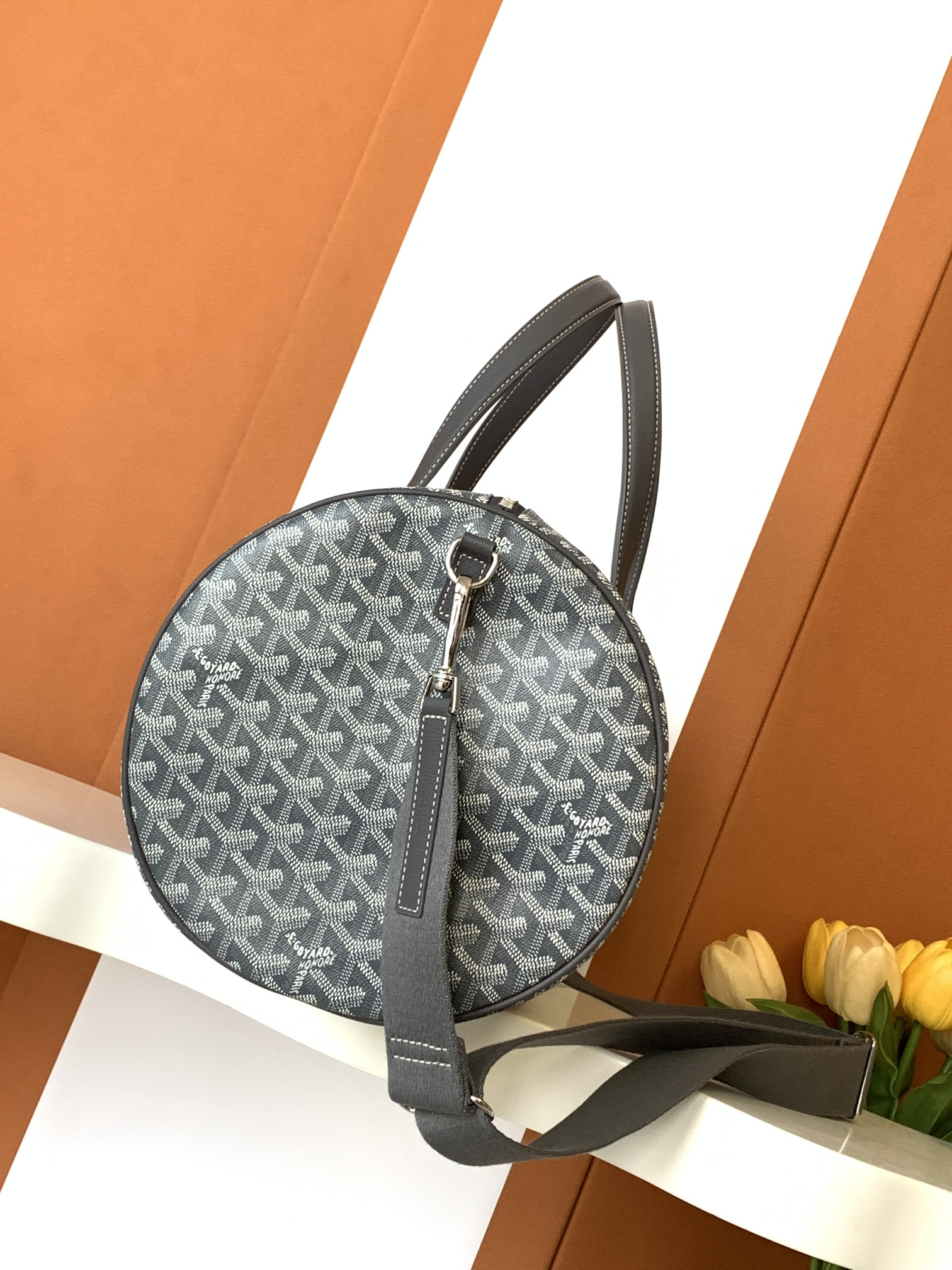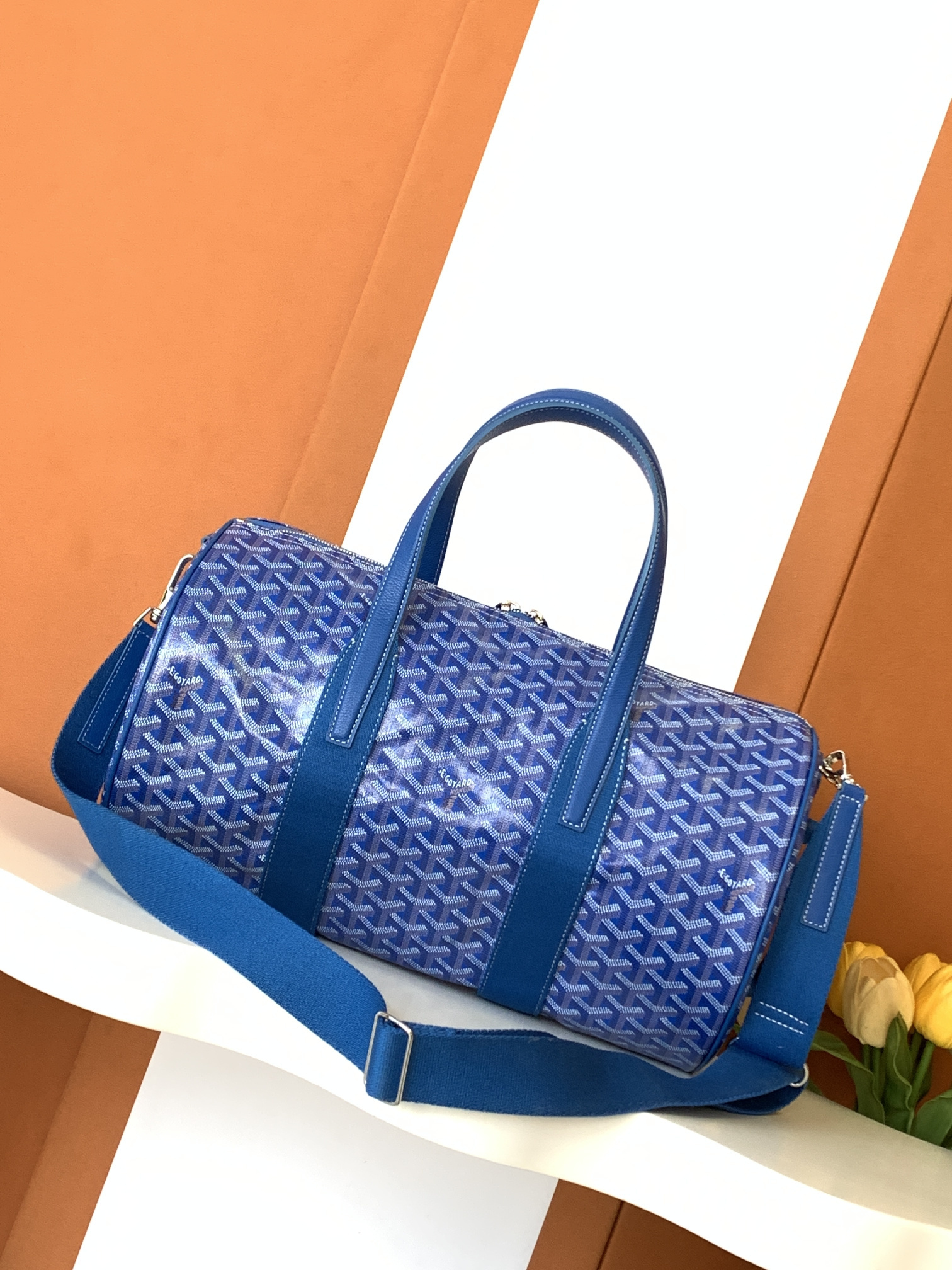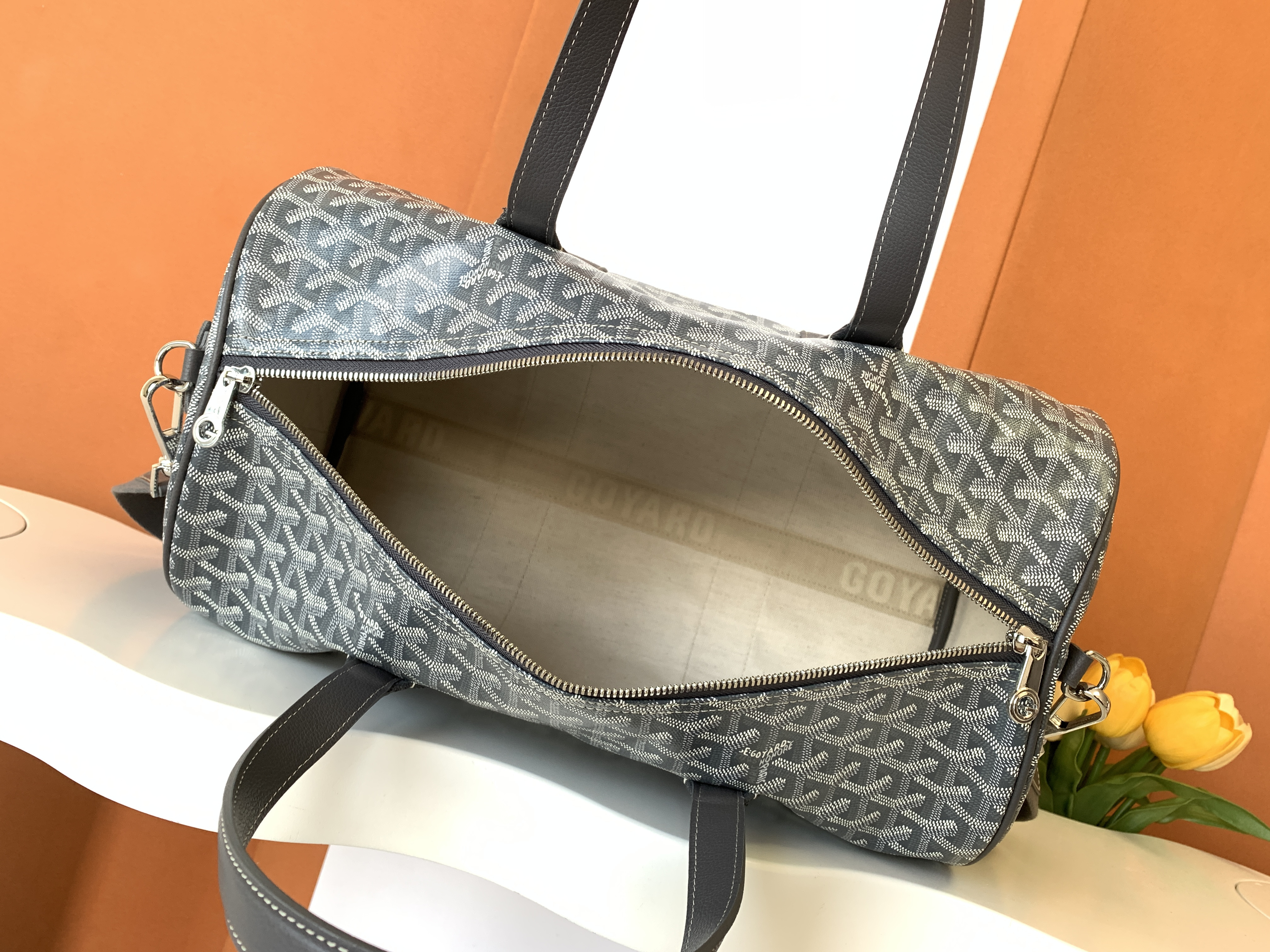 This Goyard handbag showcases the brand's exceptional craftsmanship and attention to detail. this piece combines timeless luxury with modern style.