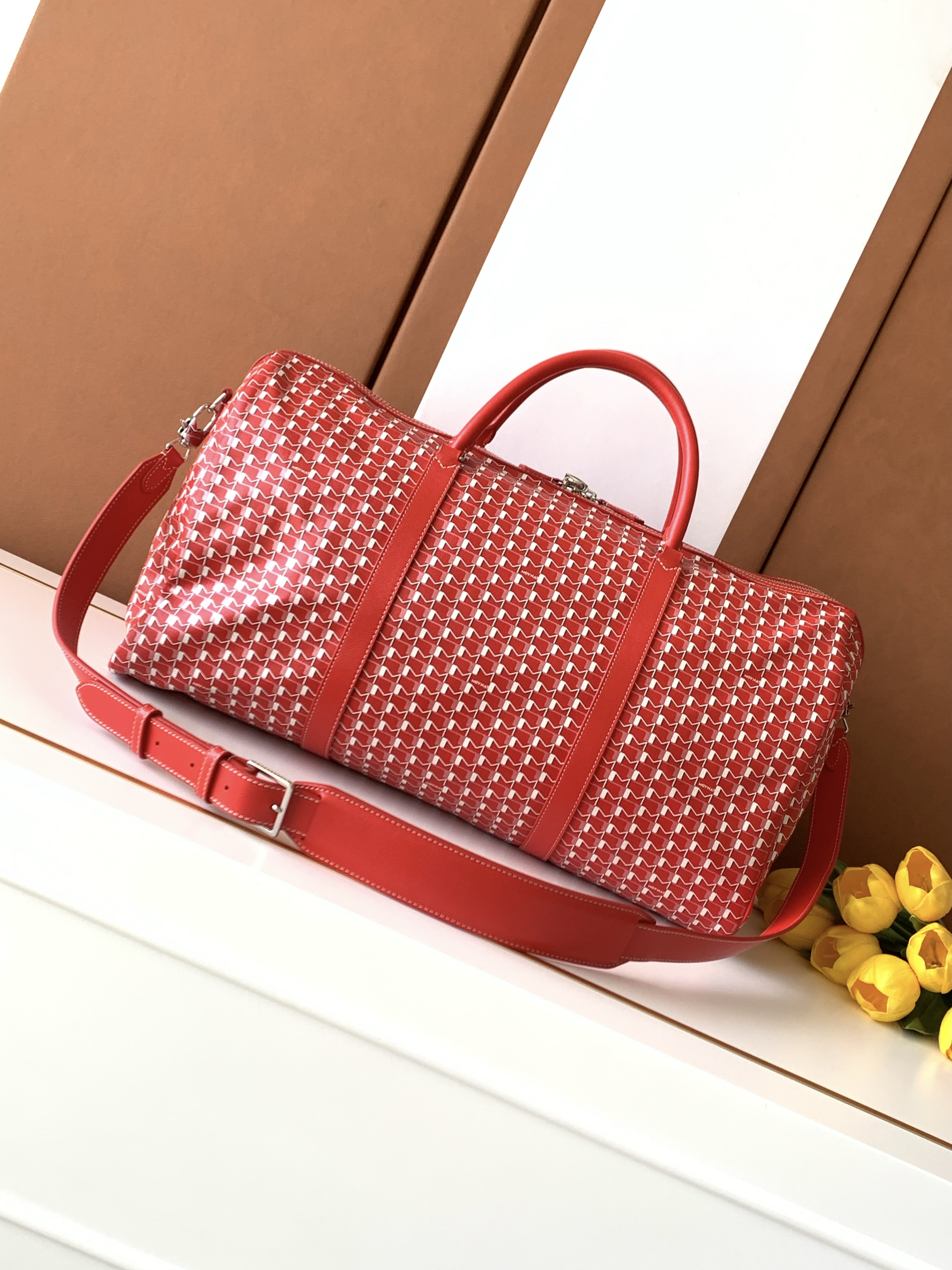 This Goyard handbag showcases the brand's exceptional craftsmanship and attention to detail. this piece combines timeless luxury with modern style.