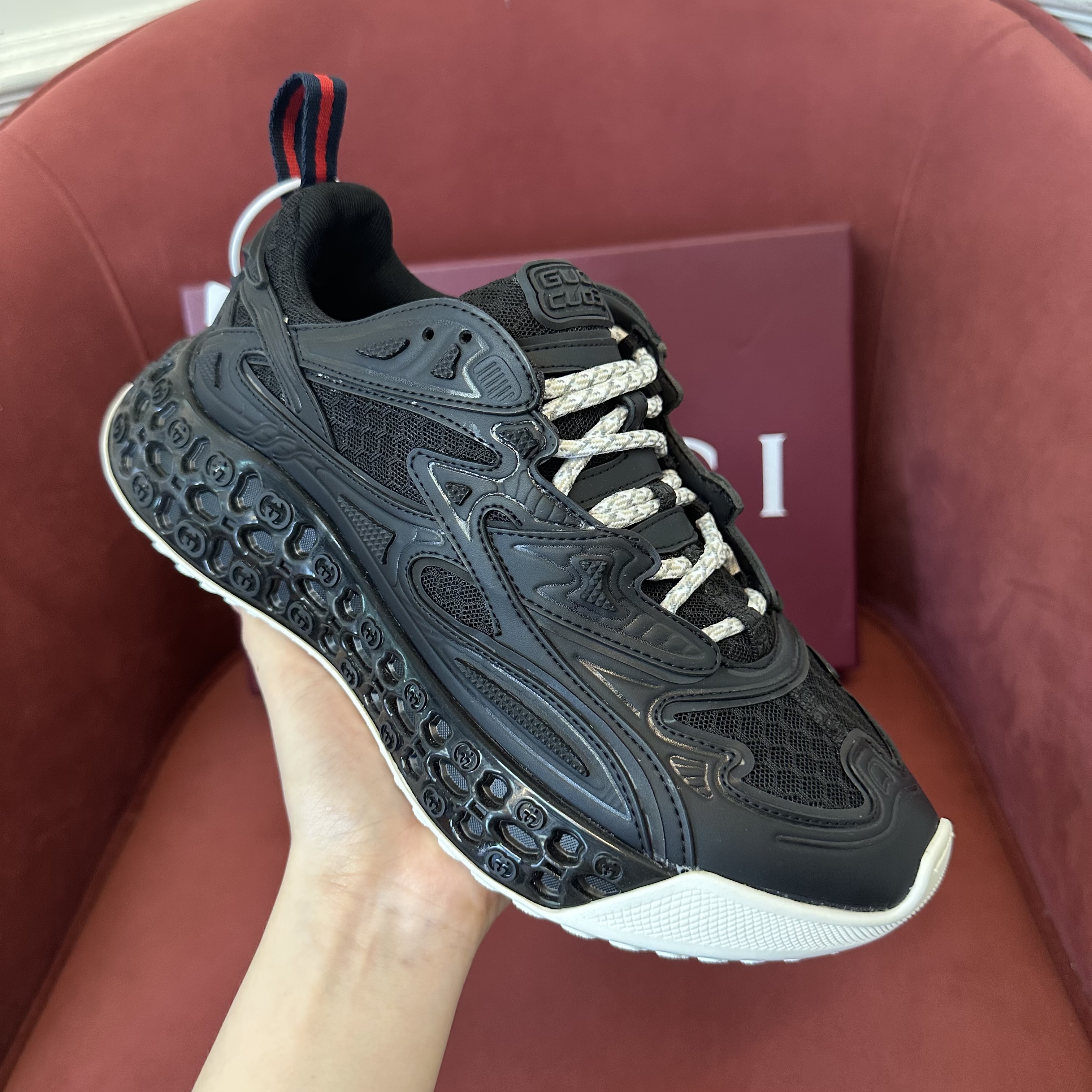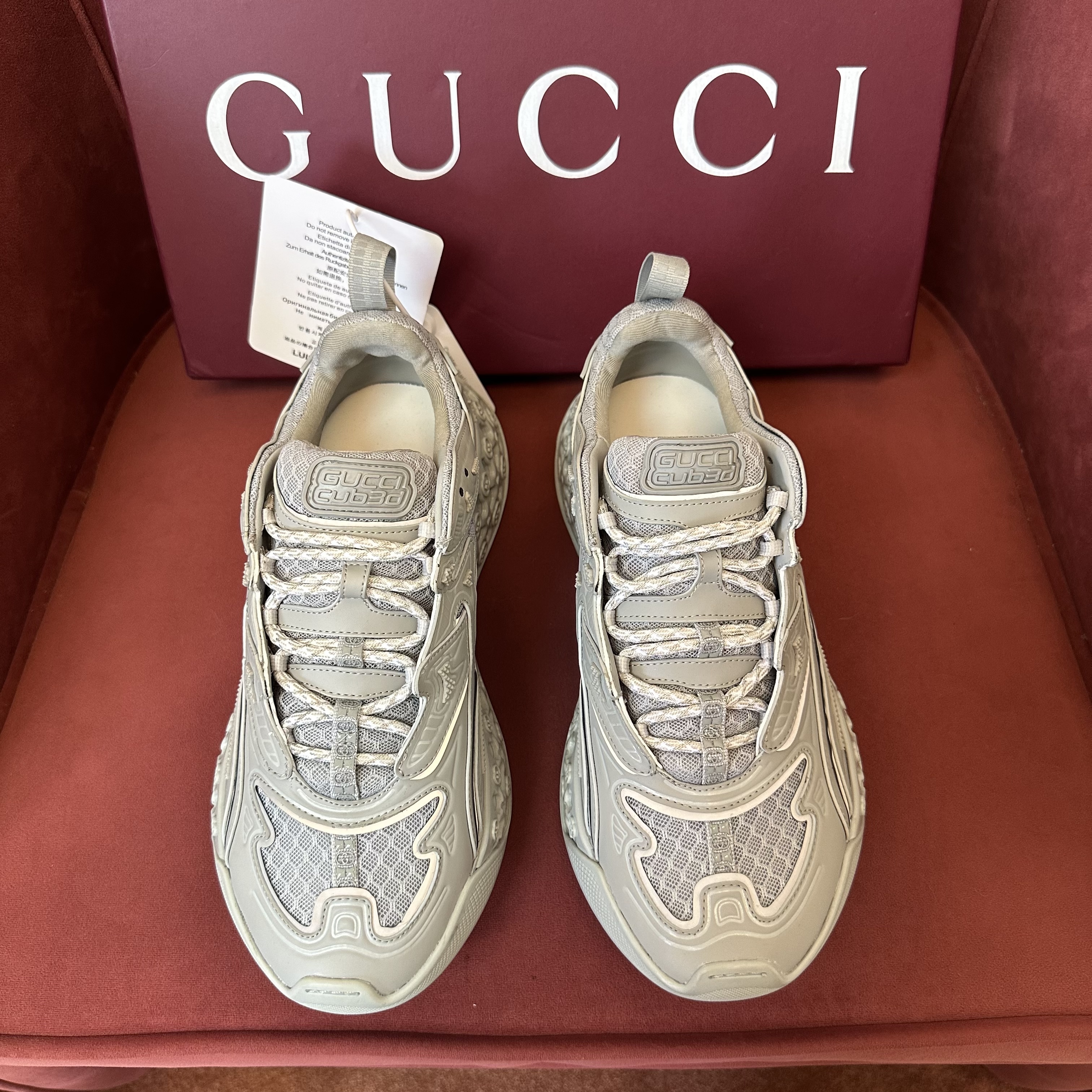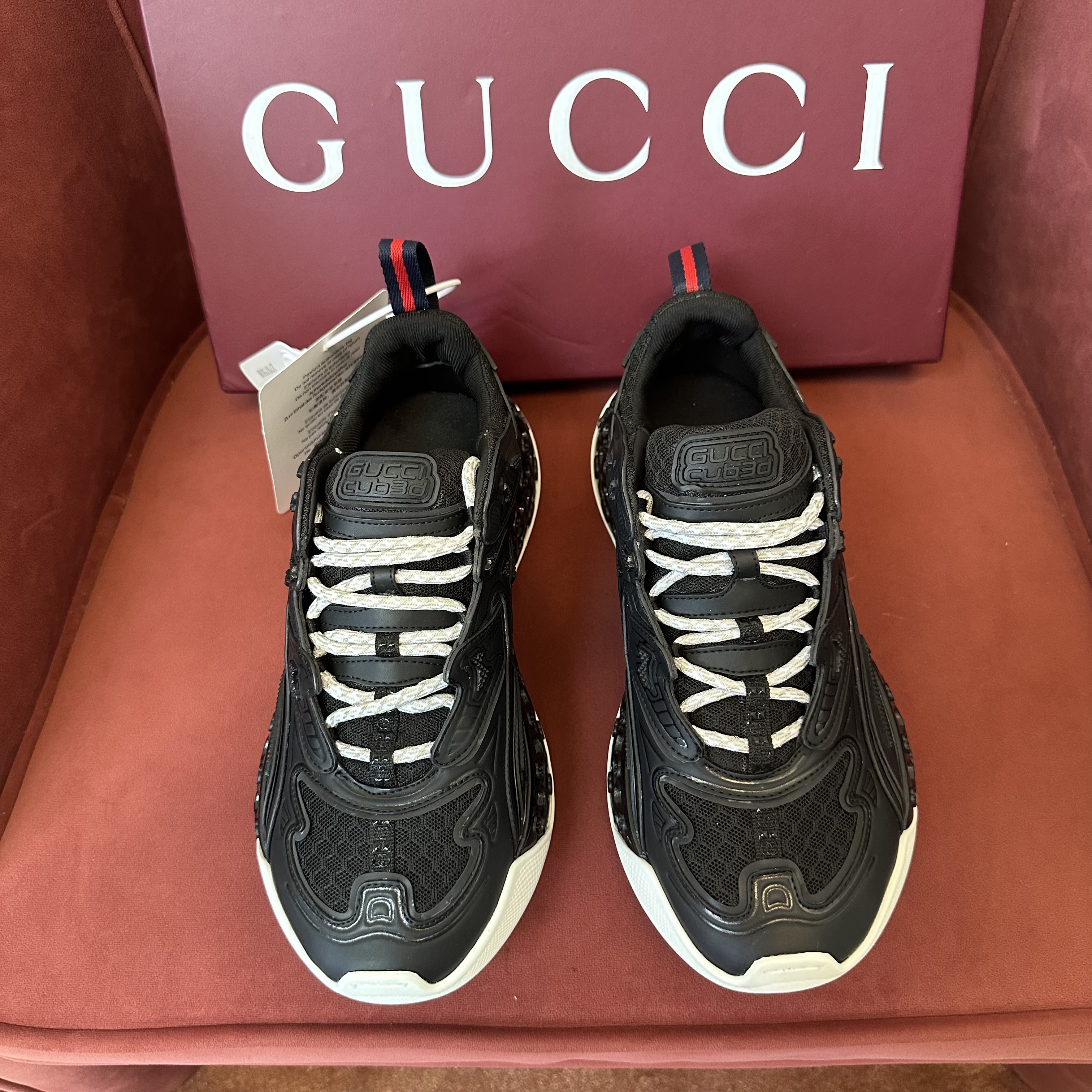 NIGO Gucci cub3d Men's And Women's Solid Color Round Toe Lace-up Mesh Fabric Thick Sole Sneakers Shoes #nigo77529