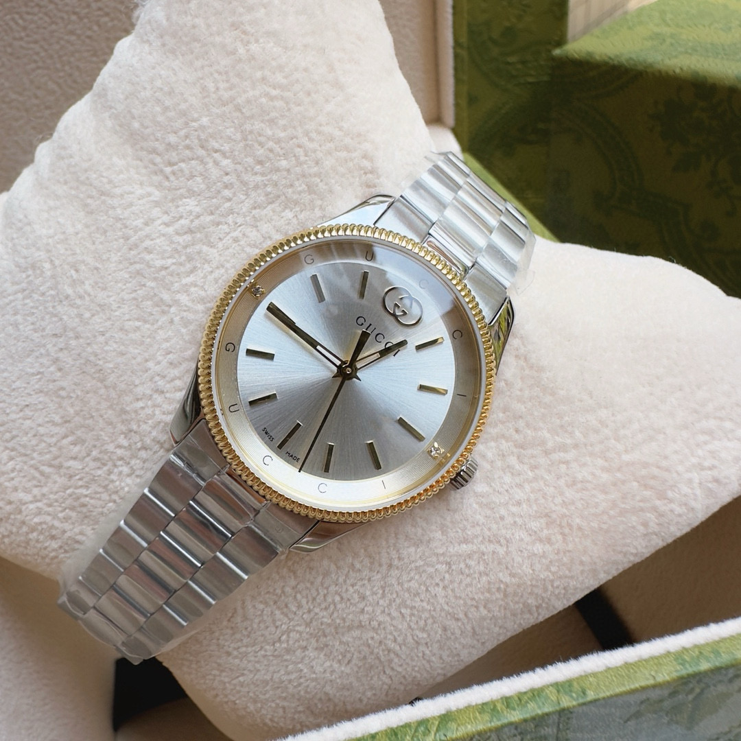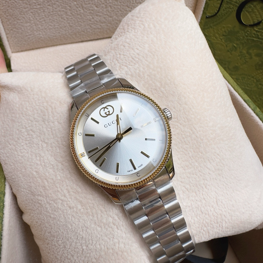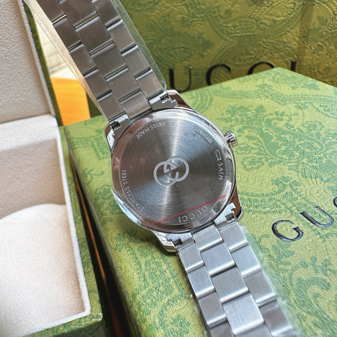 This Gucci watch showcases the brand's exceptional craftsmanship and attention to detail. Crafted from premium stainless steel, this piece combines timeless luxury with modern style.
