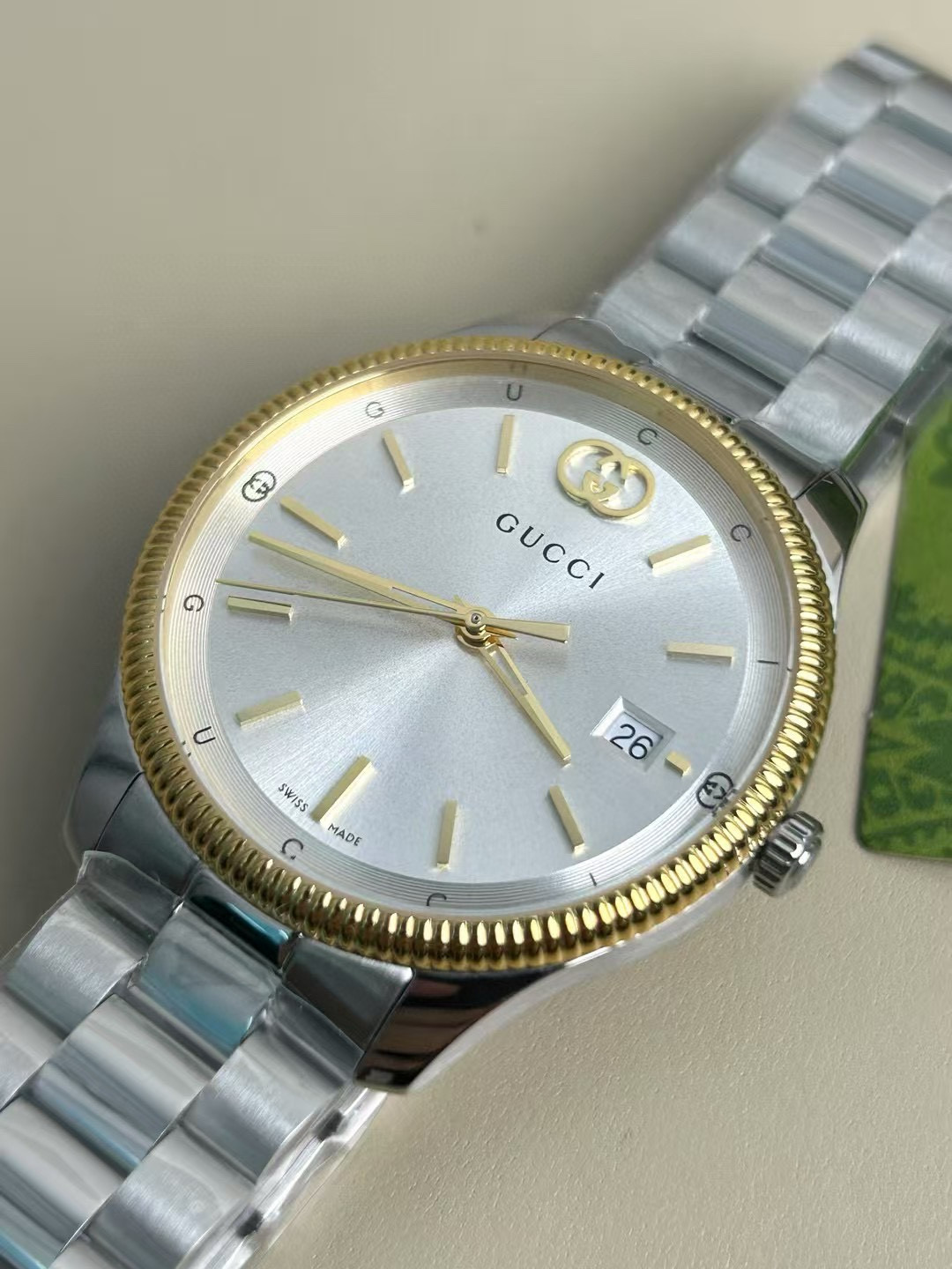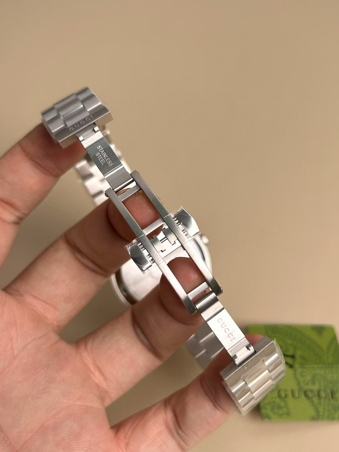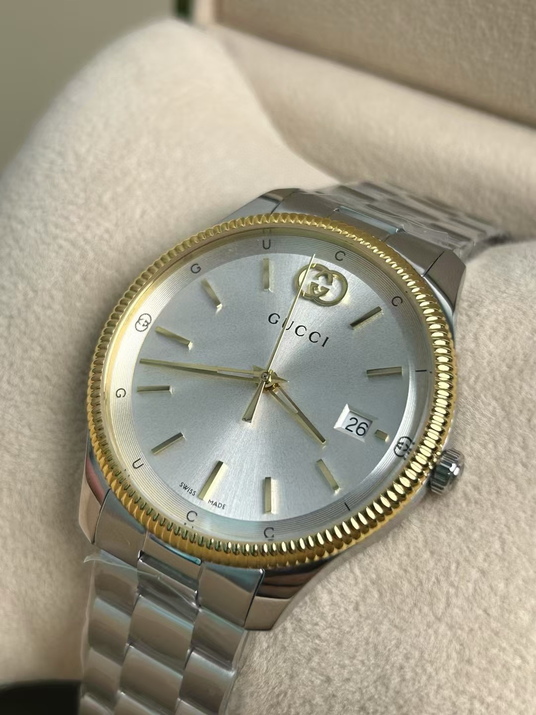 This Gucci watch showcases the brand's exceptional craftsmanship and attention to detail. Crafted from premium stainless steel, this piece combines timeless luxury with modern style.