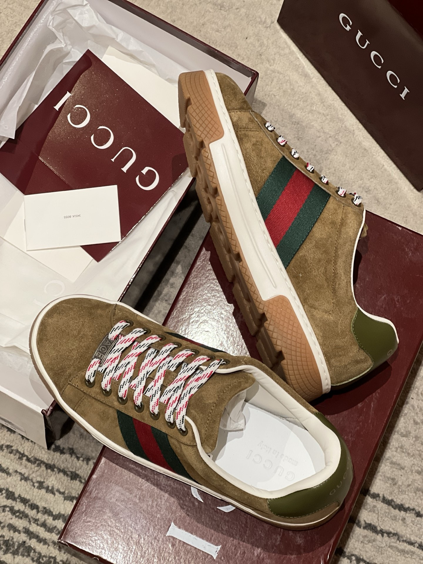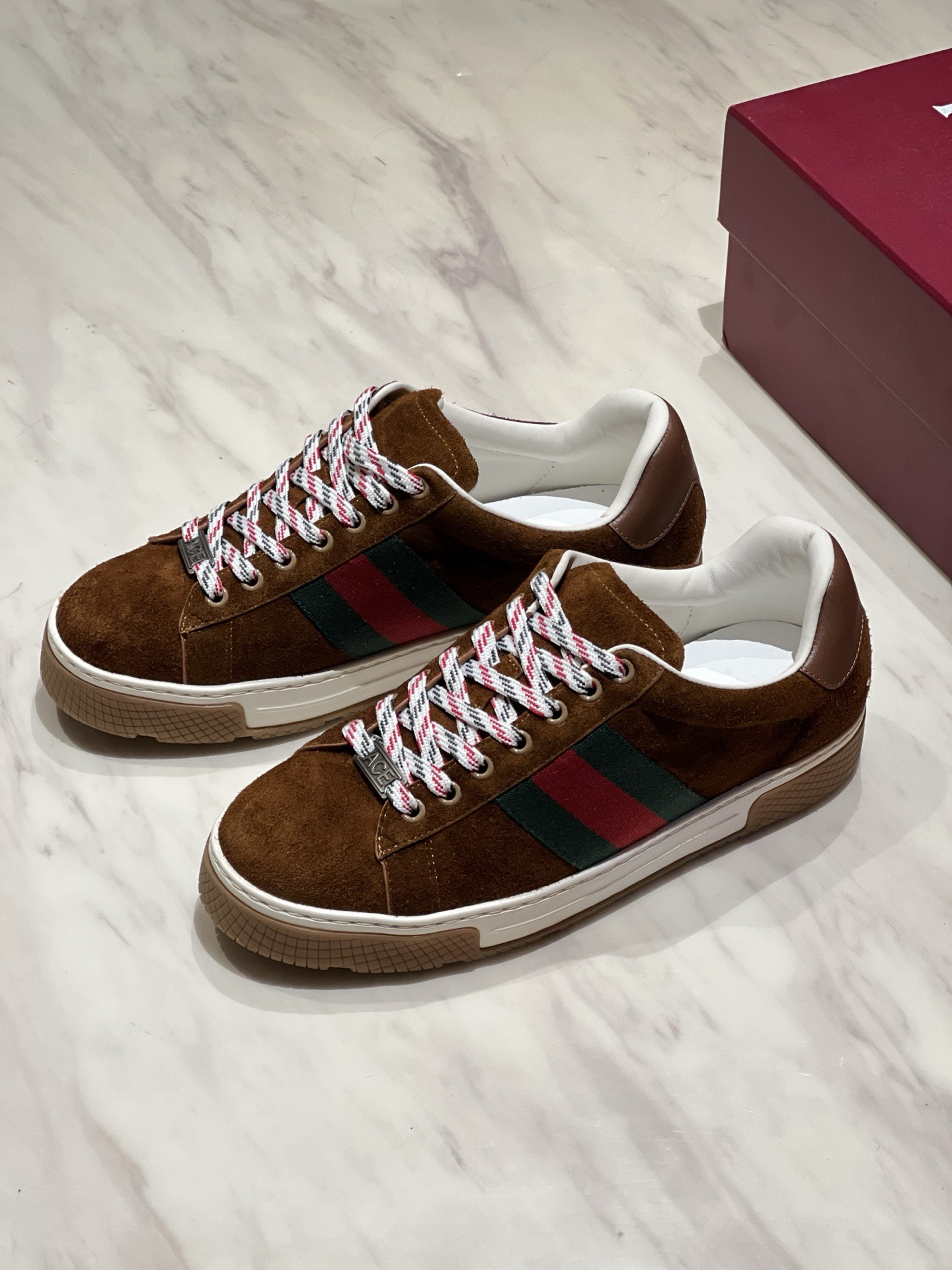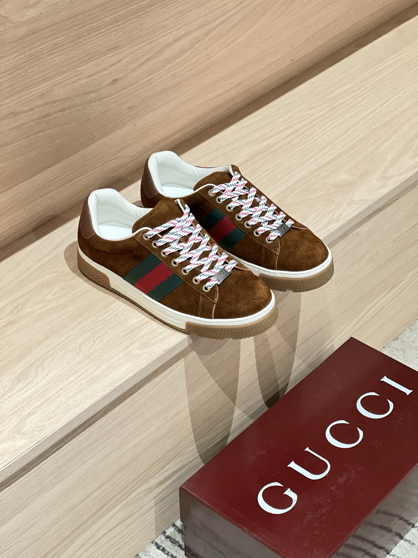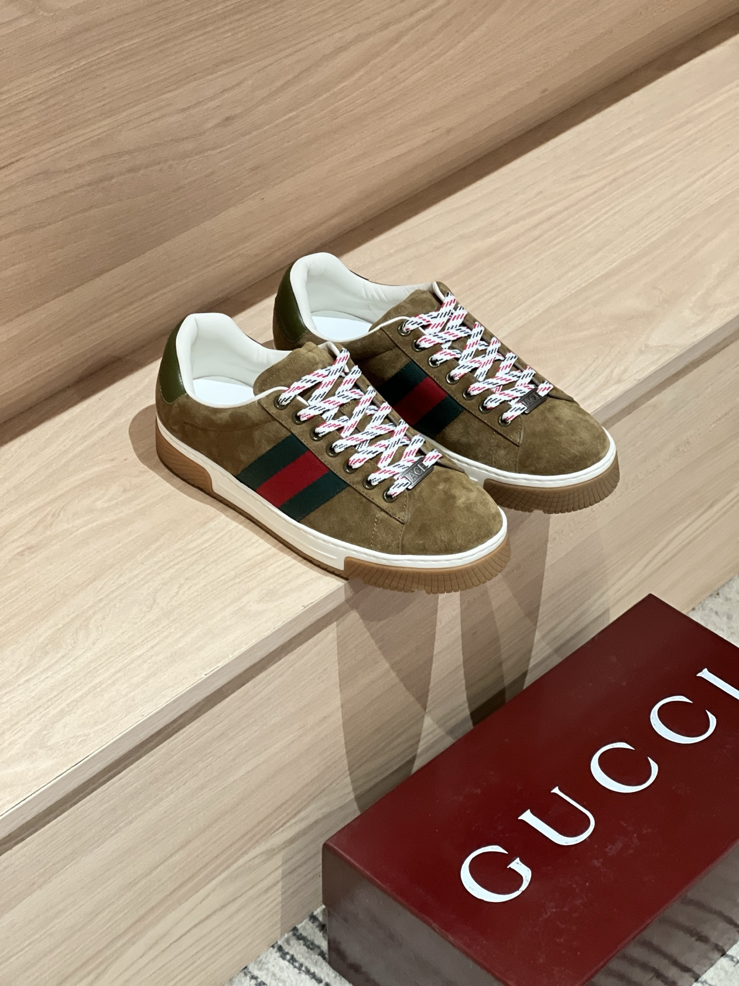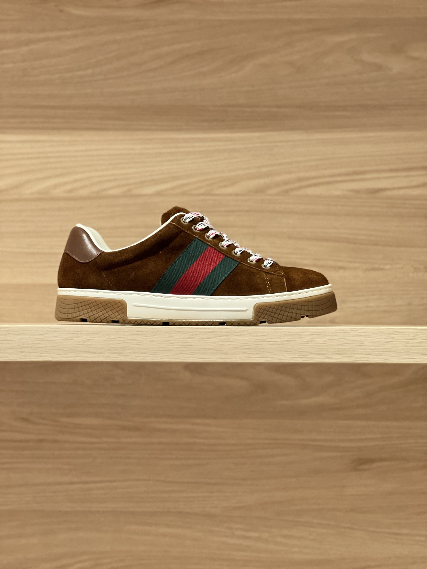 This Gucci shoes showcases the brand's exceptional craftsmanship and attention to detail. Crafted from premium suede, this piece combines timeless luxury with modern style.
