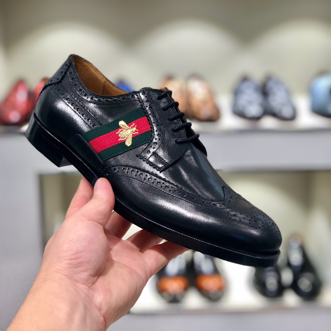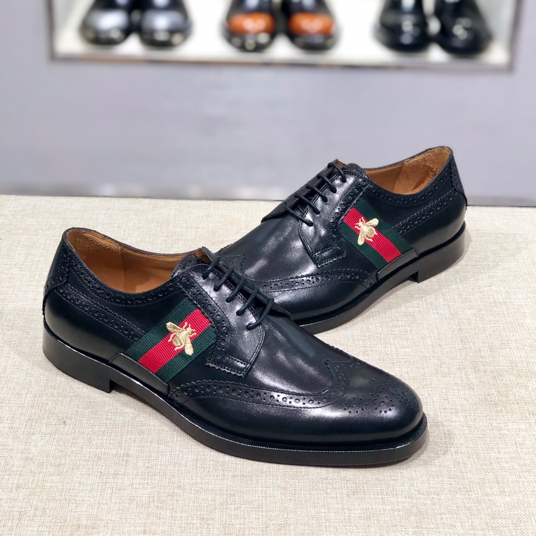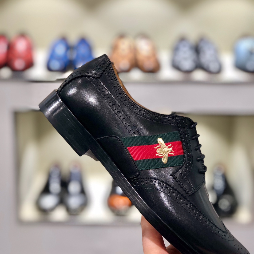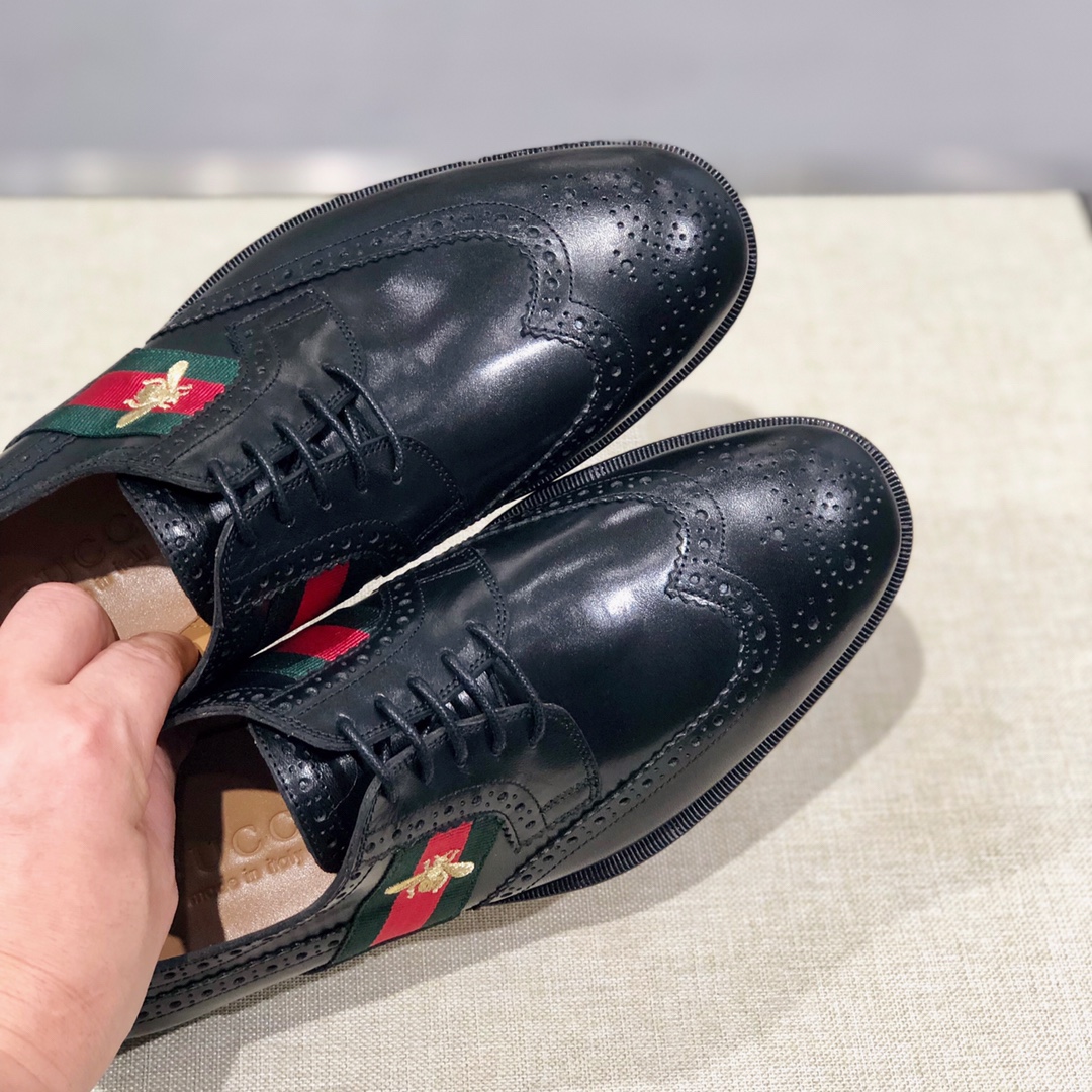 NIGO Gucci Men's Spring and Autumn Solid Color Leather Low Top Lace-up Loafers Shoes #nigo75372