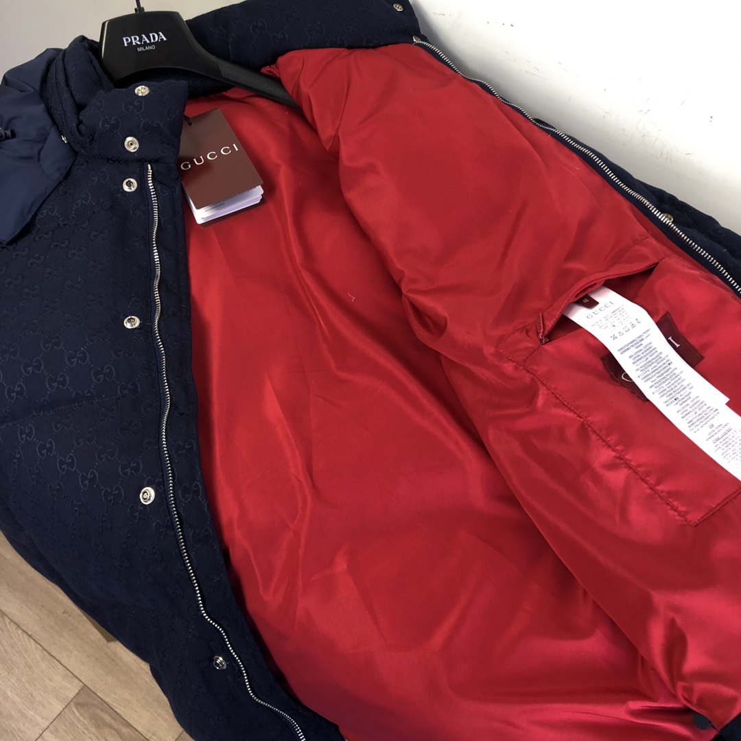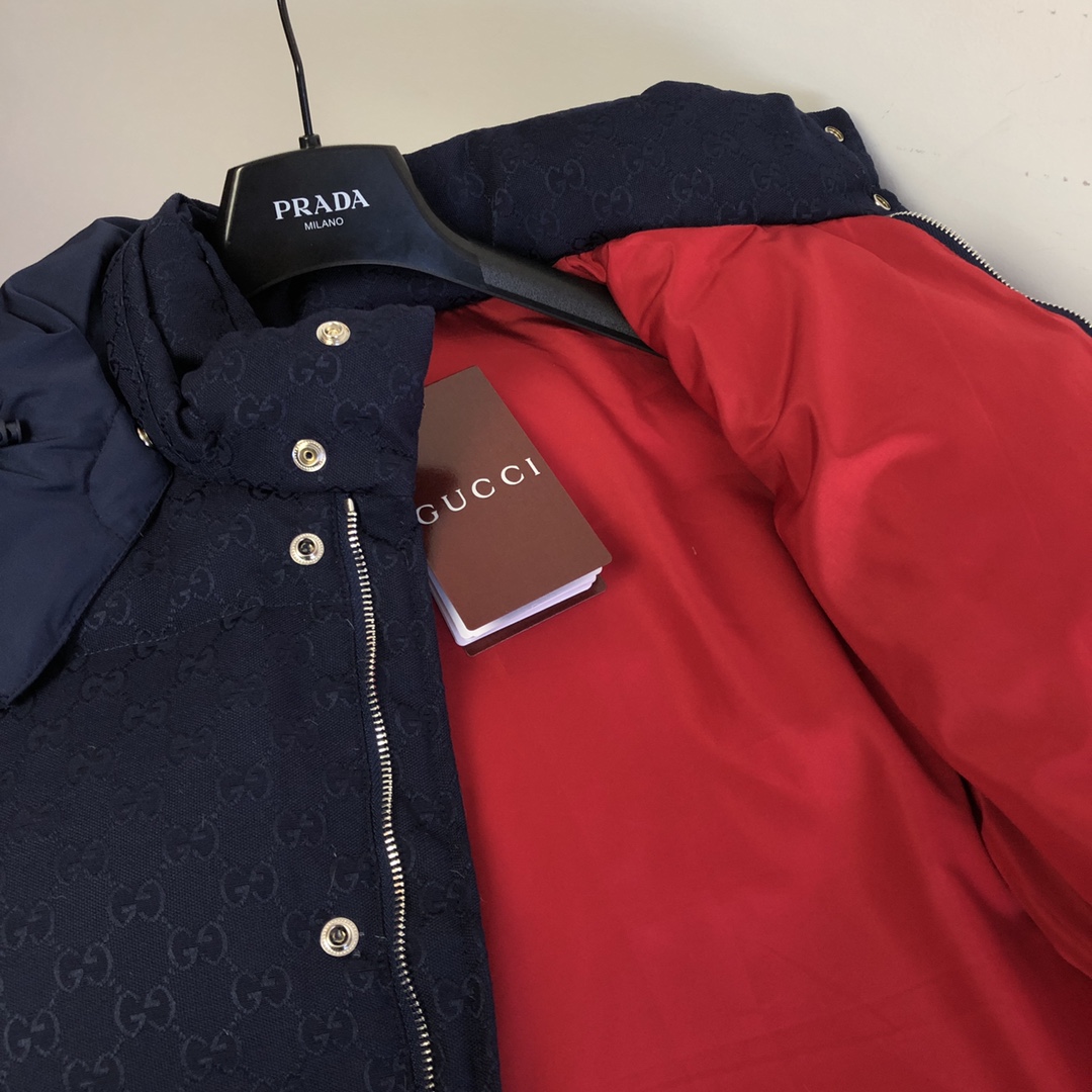 NIGO Gucci Men's Spring and Autumn Winter GG Full Print Canvas Zipper Detachable Hood Solid Color Long Sleeve Down Jacket #nigo81753