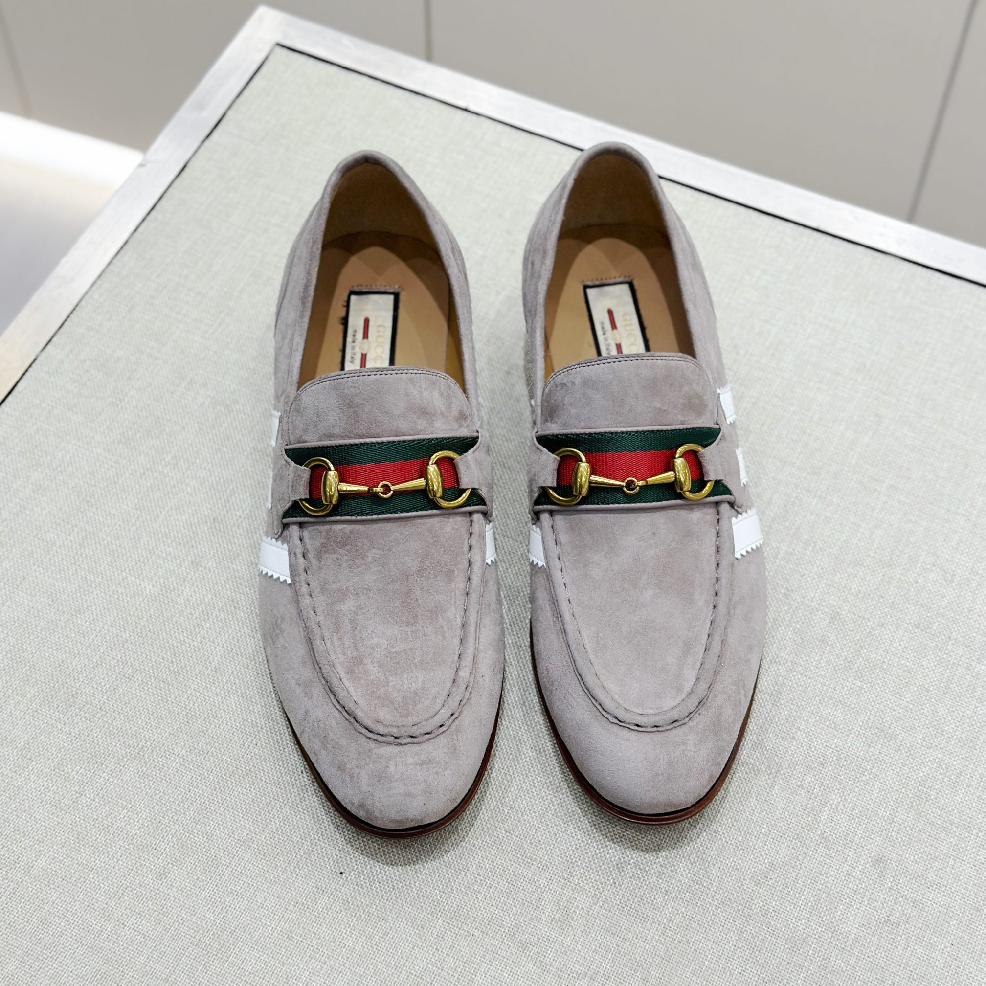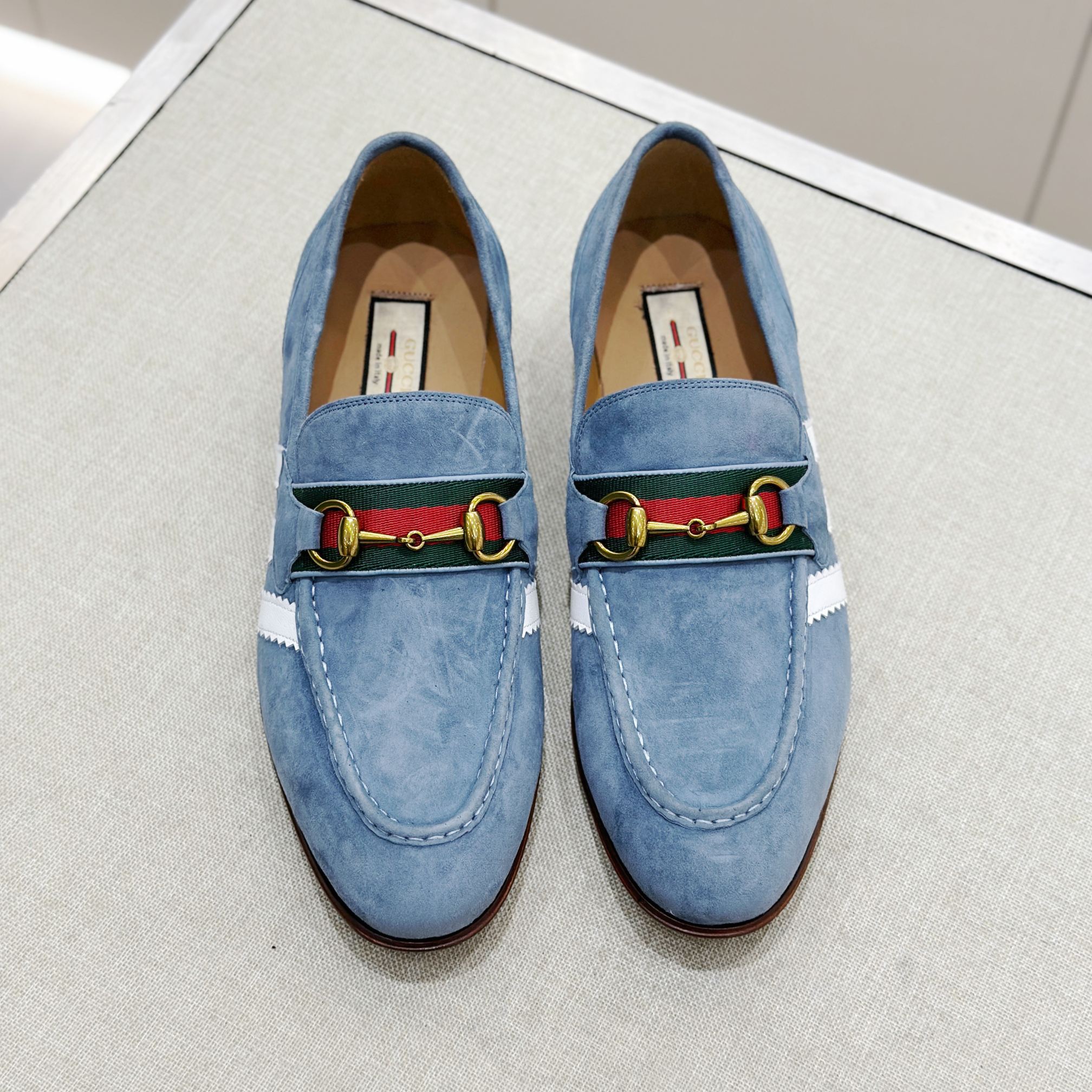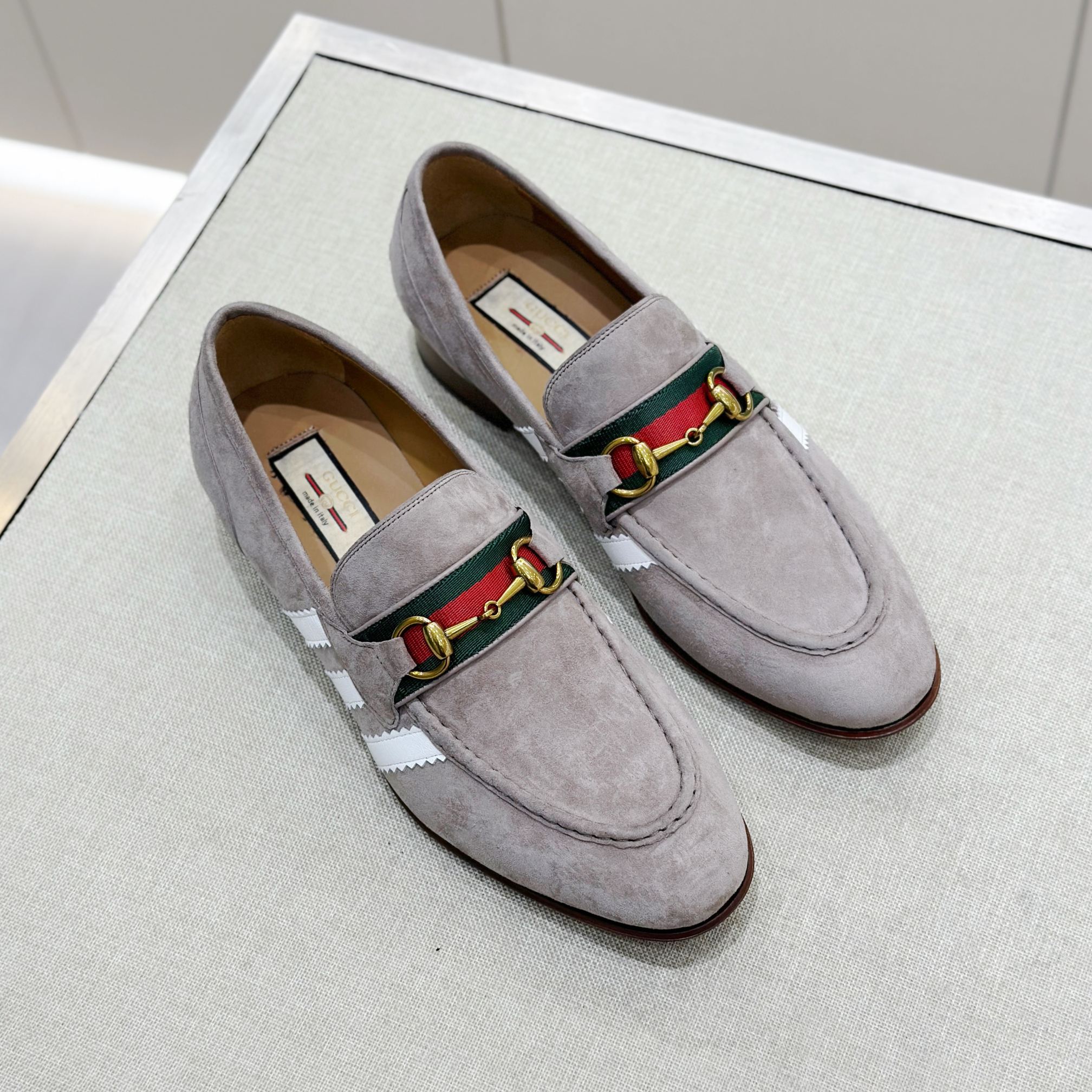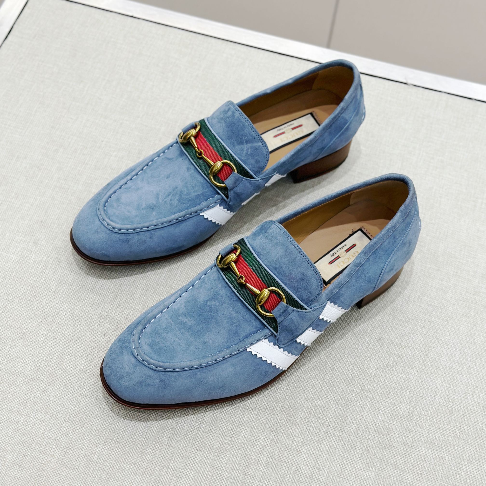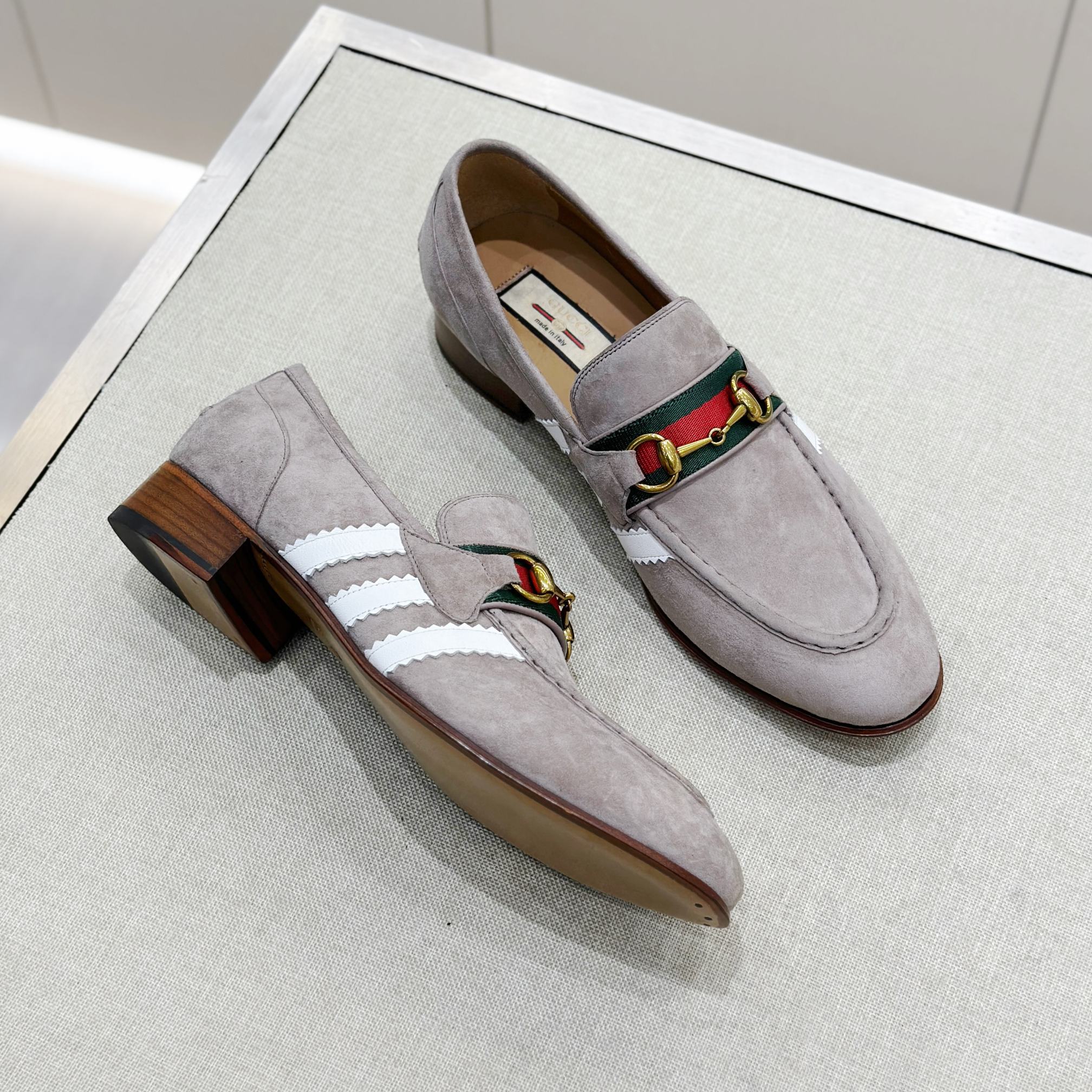 This Gucci shoes showcases the brand's exceptional craftsmanship and attention to detail. Crafted from premium suede, this piece combines timeless luxury with modern style.