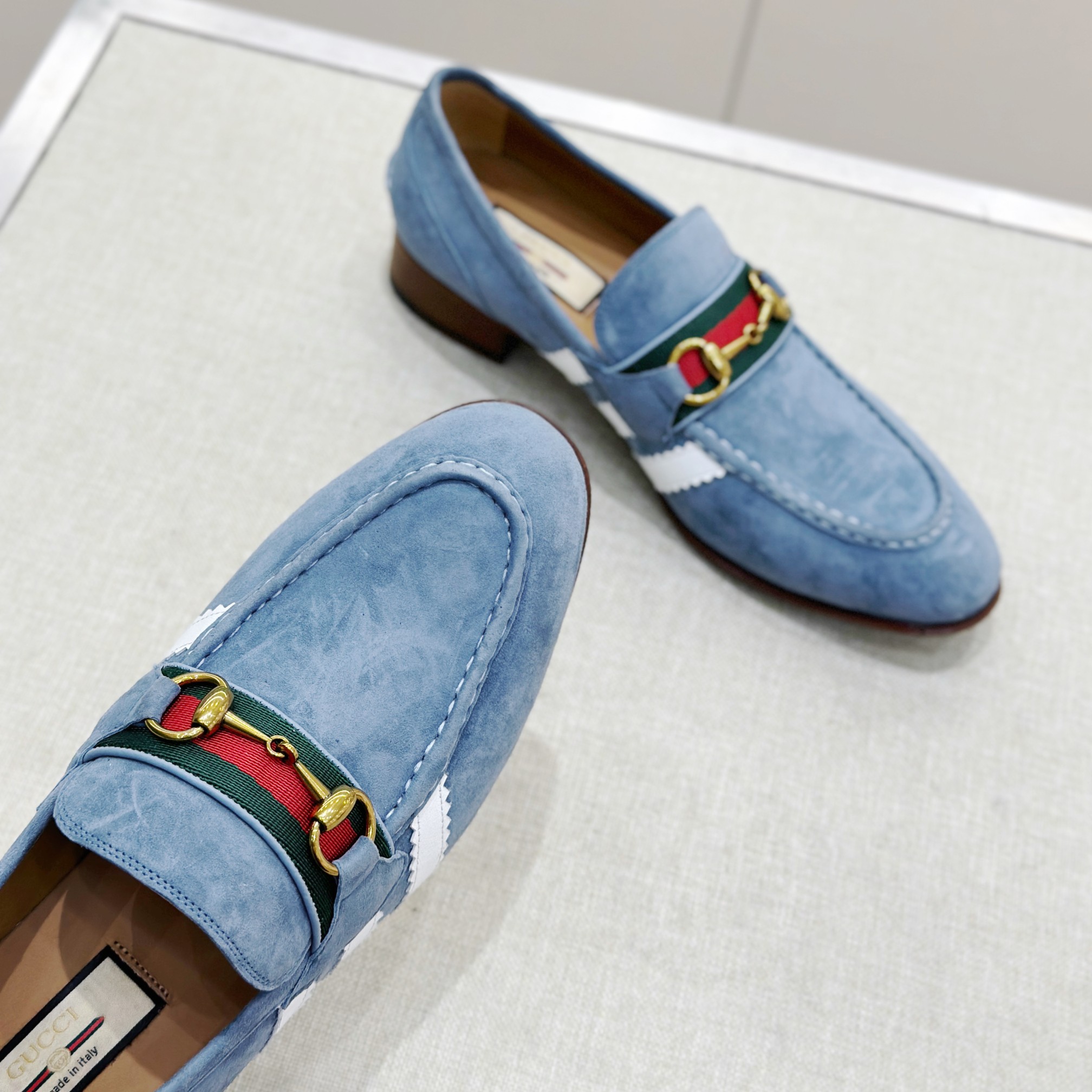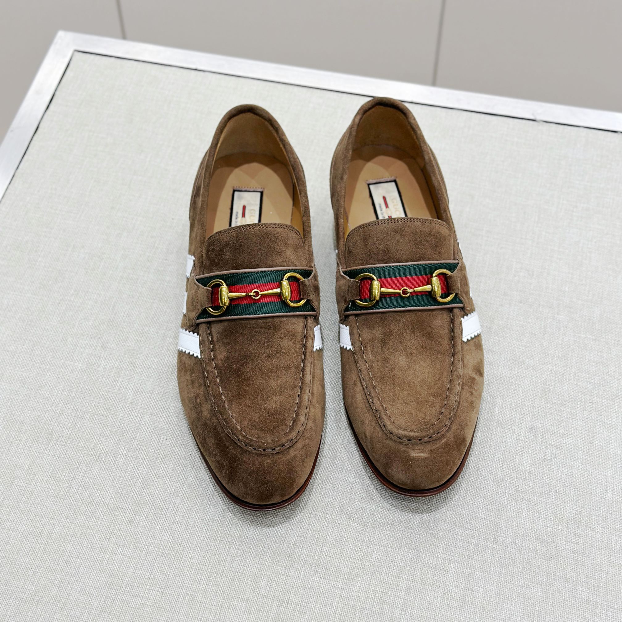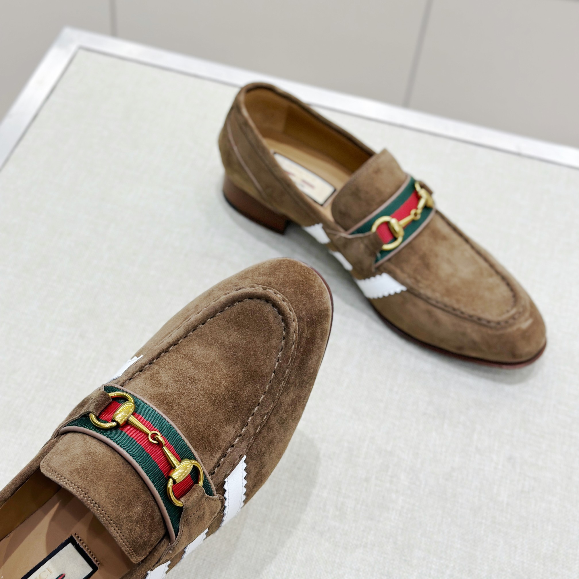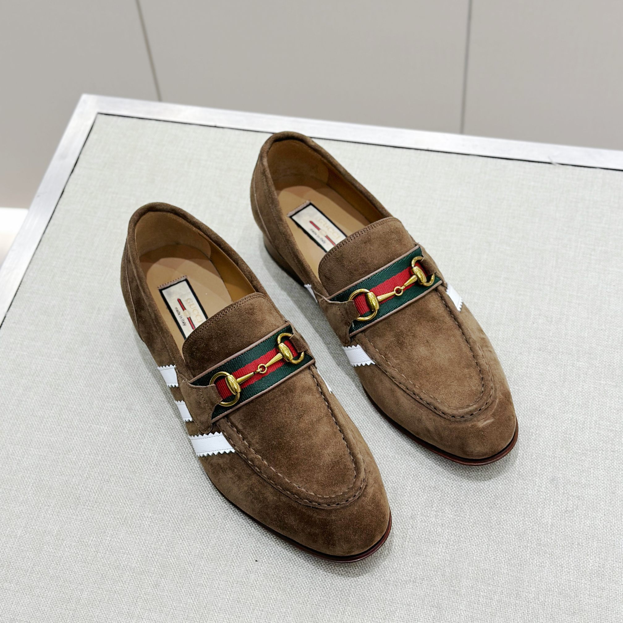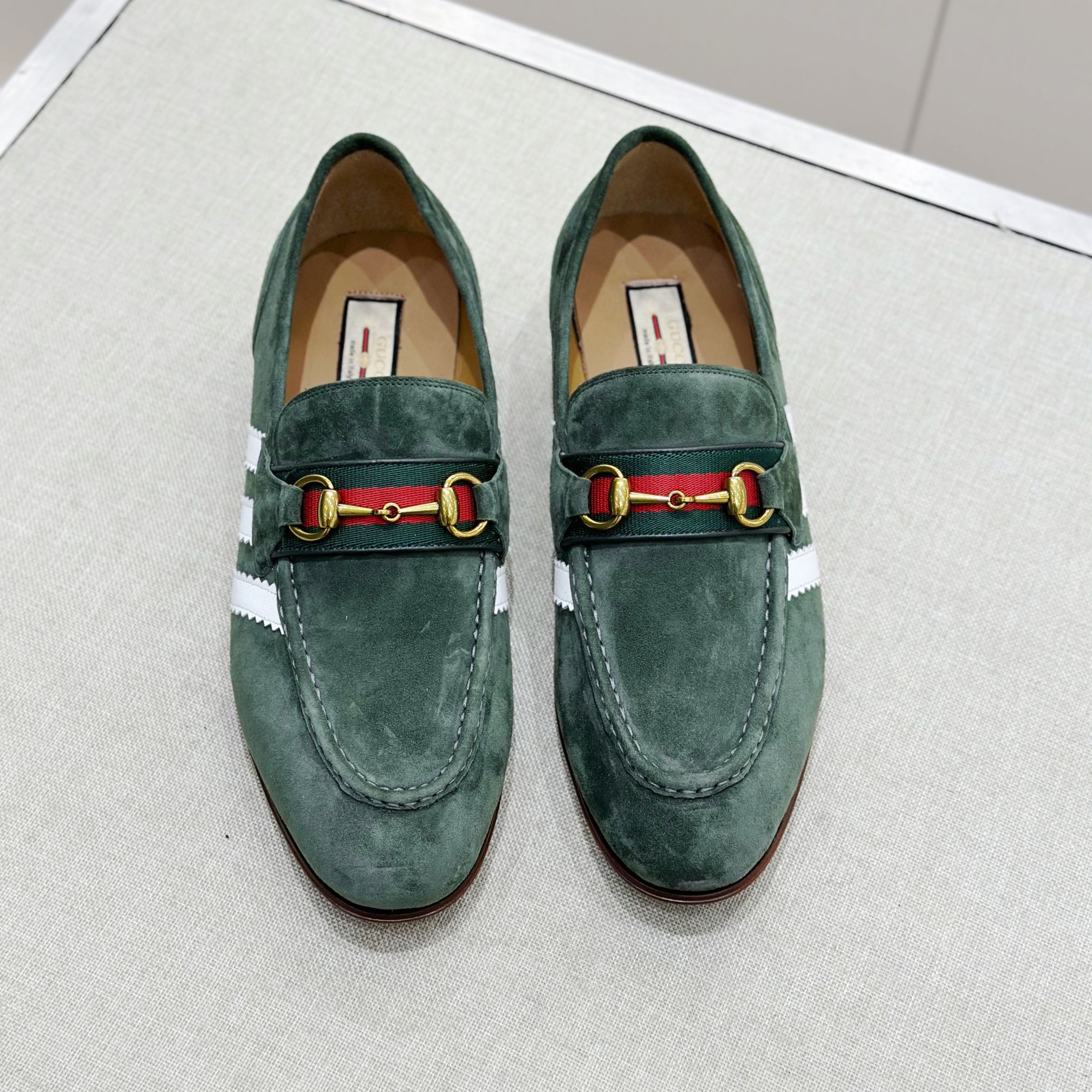 This Gucci shoes showcases the brand's exceptional craftsmanship and attention to detail. Crafted from premium suede, this piece combines timeless luxury with modern style.