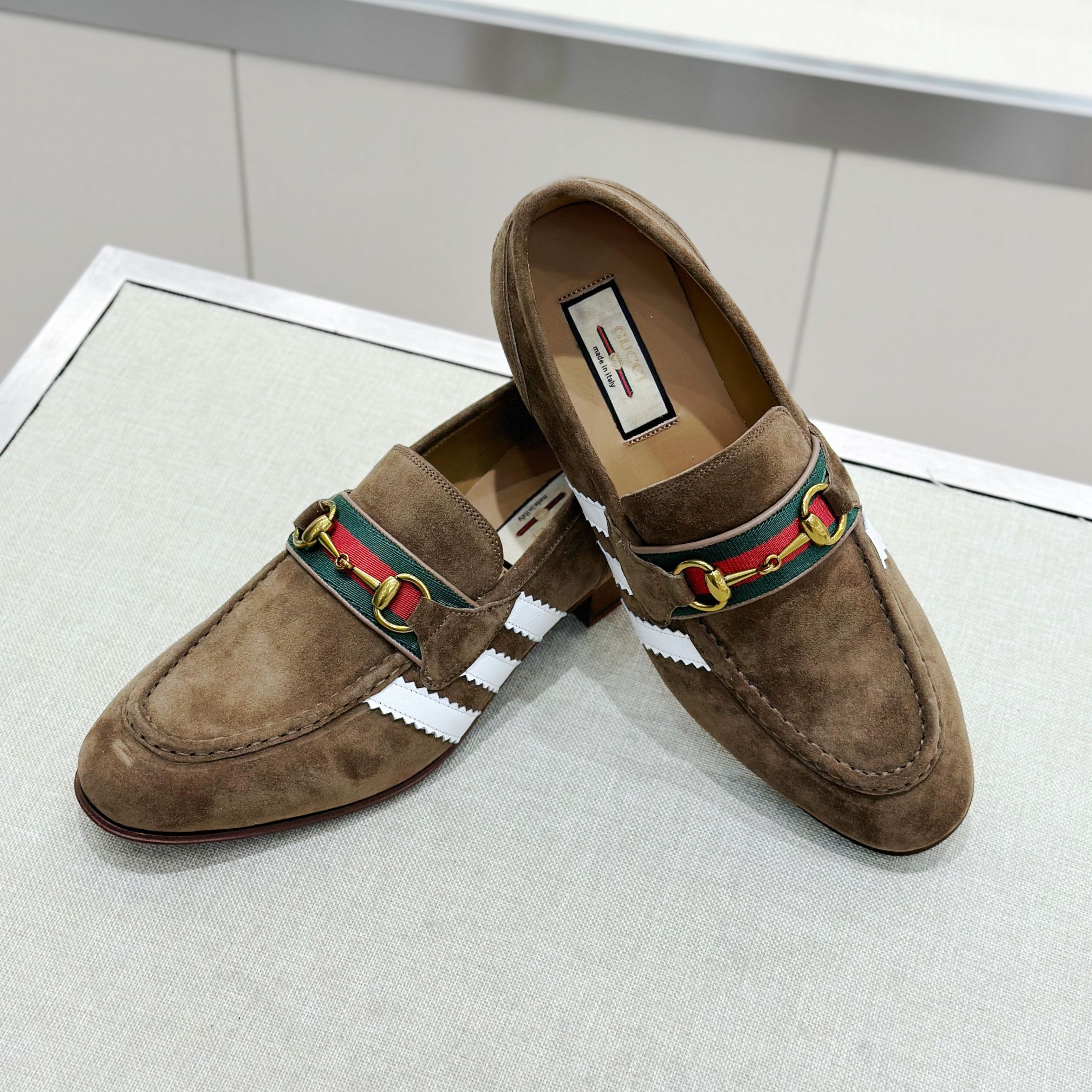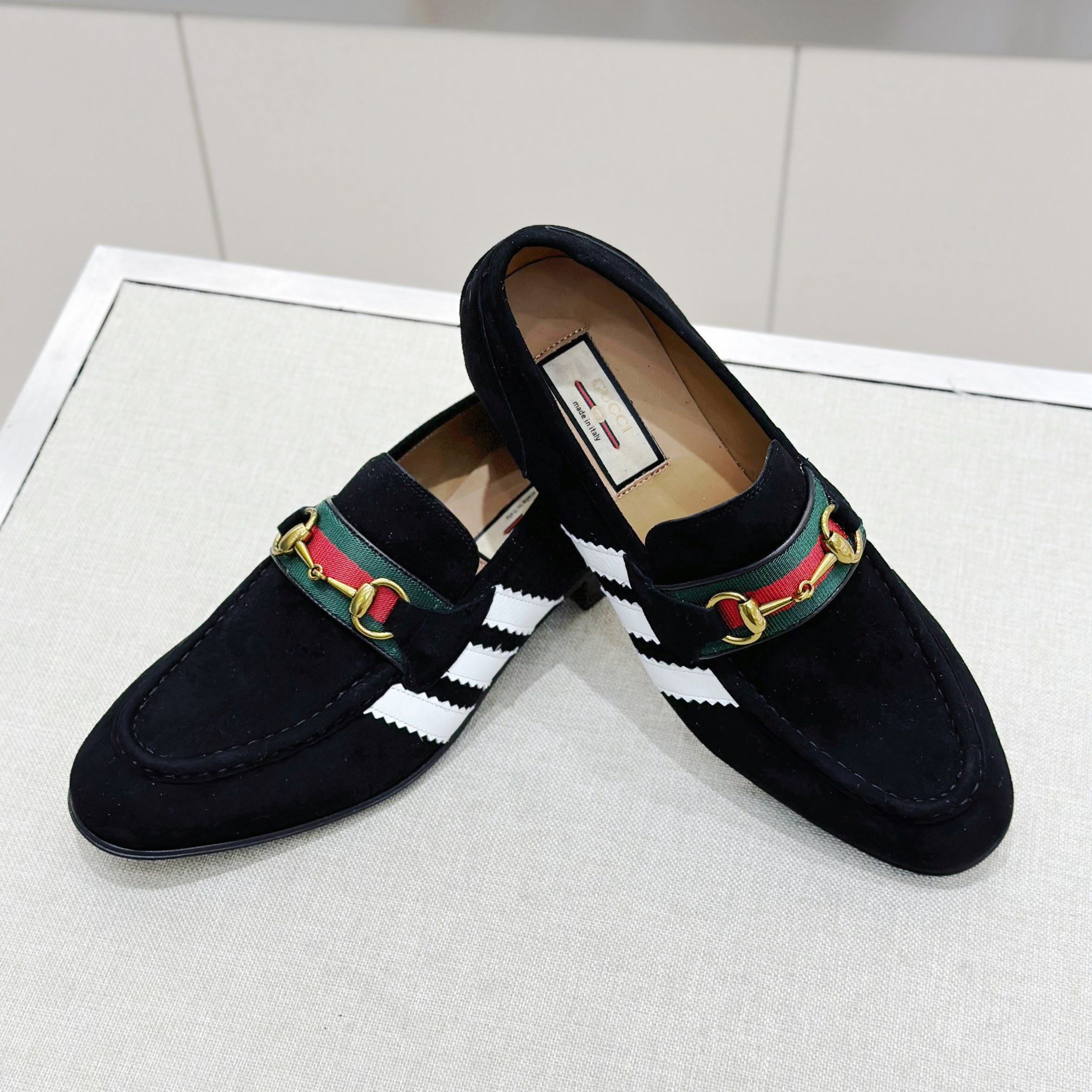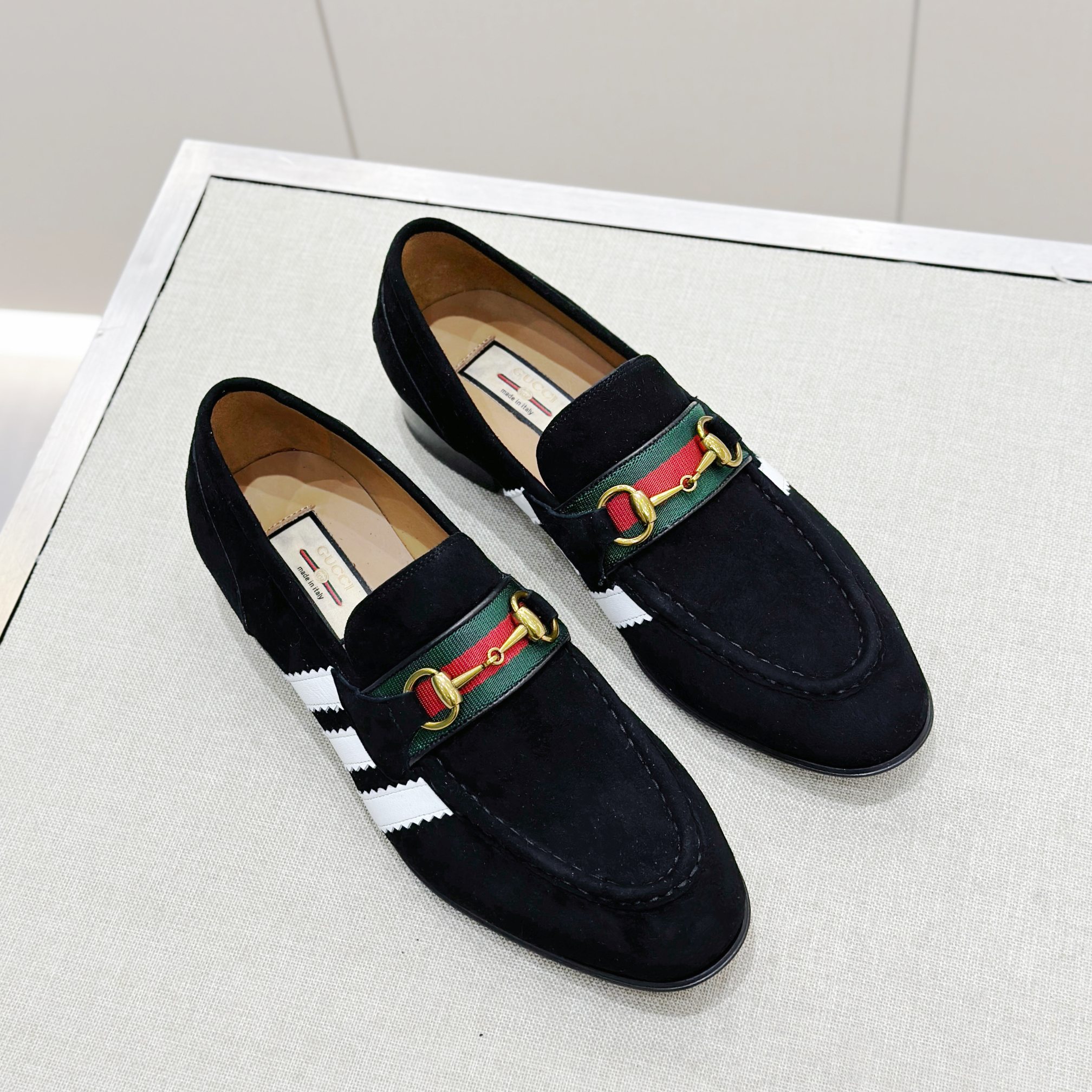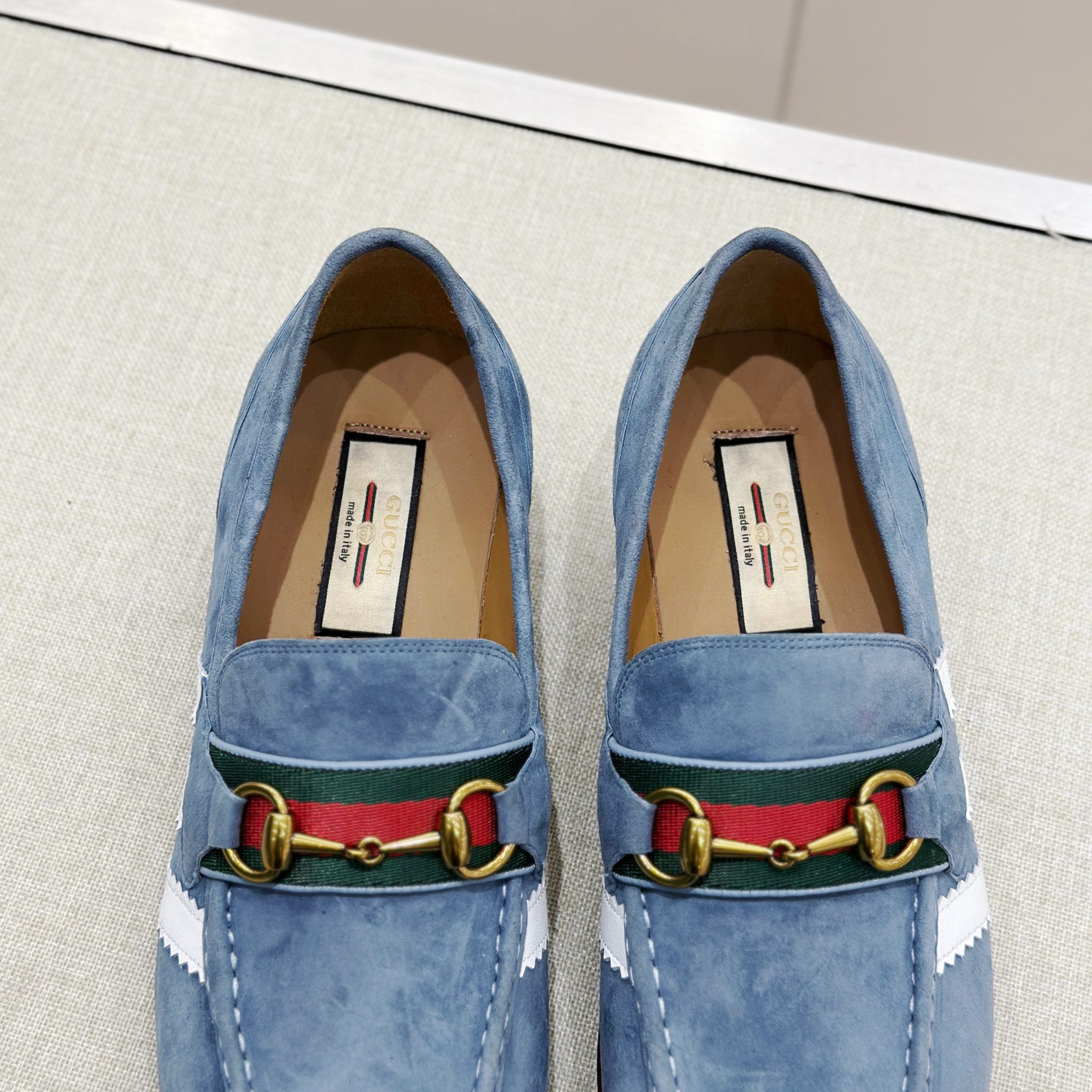 This Gucci shoes showcases the brand's exceptional craftsmanship and attention to detail. Crafted from premium suede, this piece combines timeless luxury with modern style.