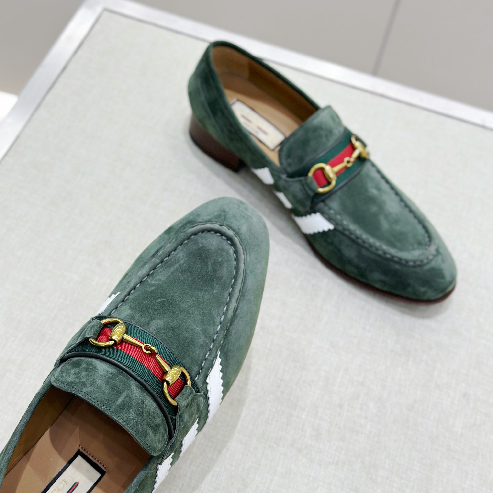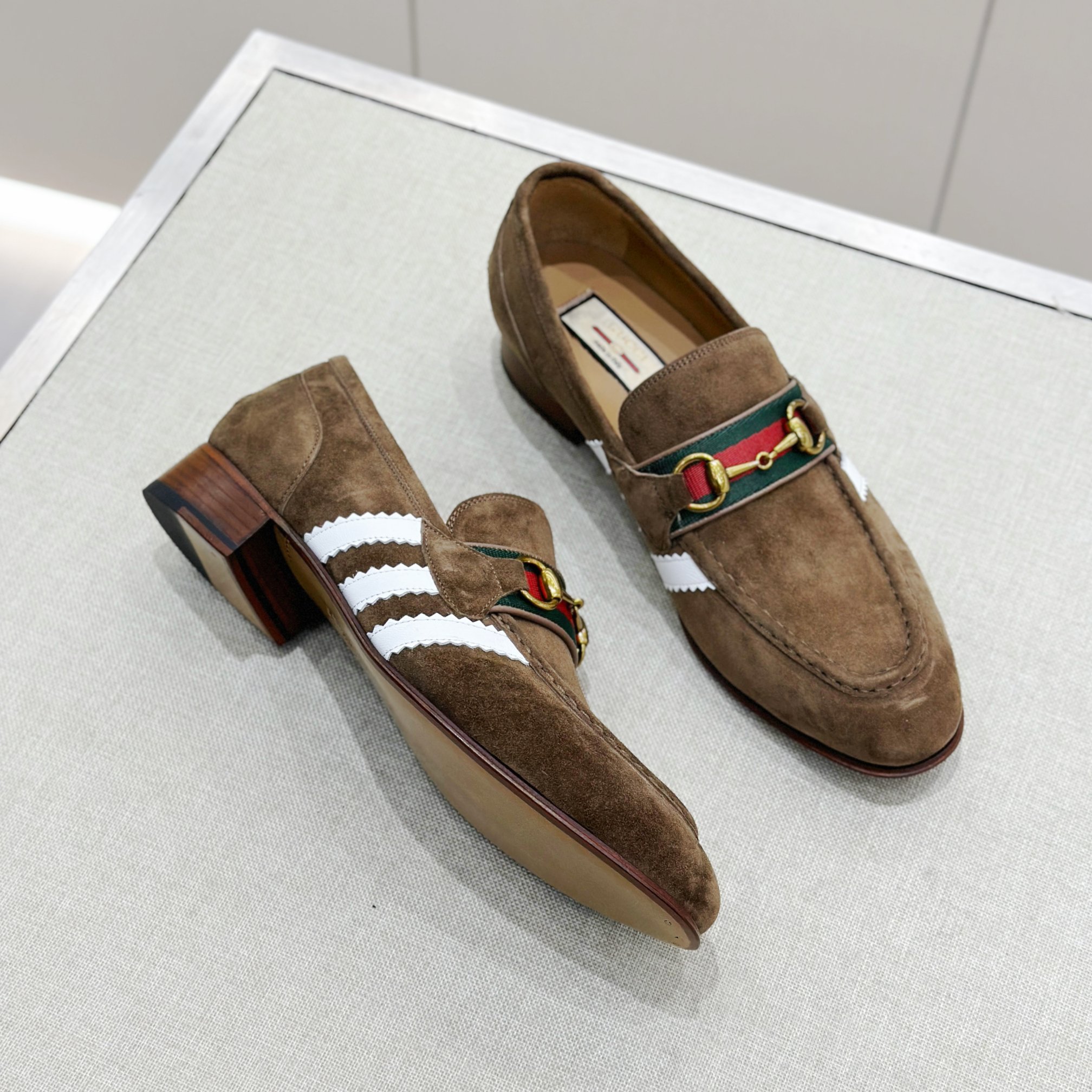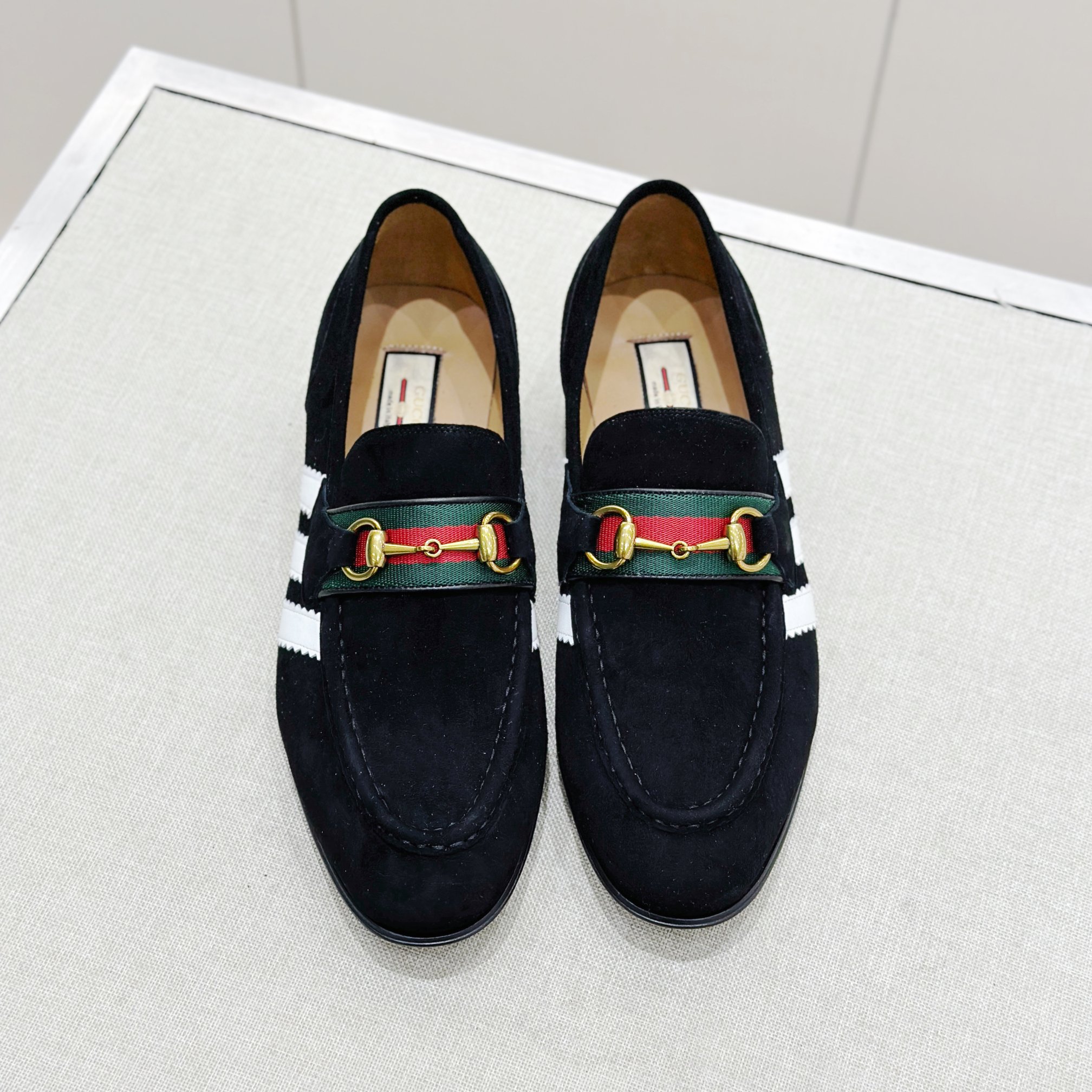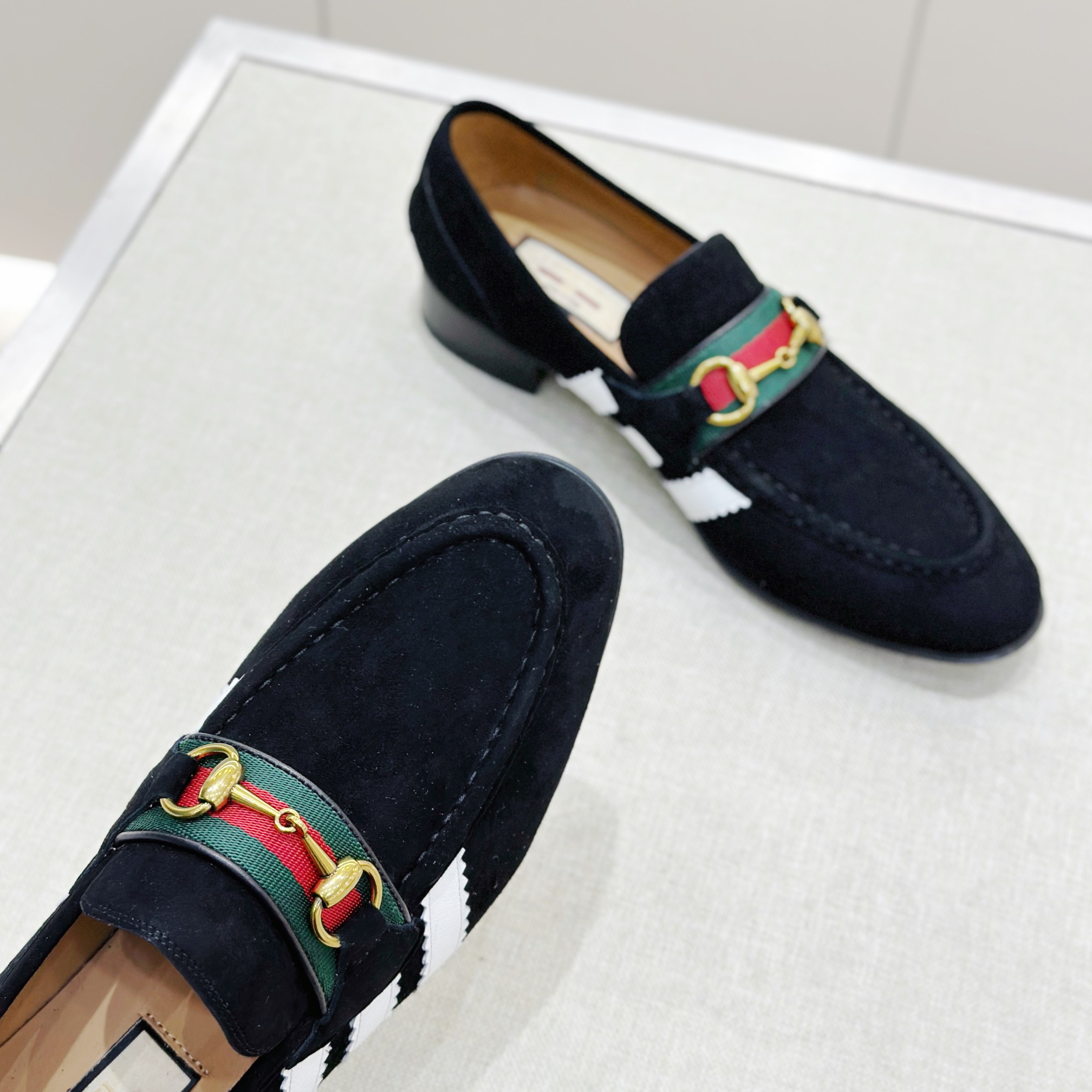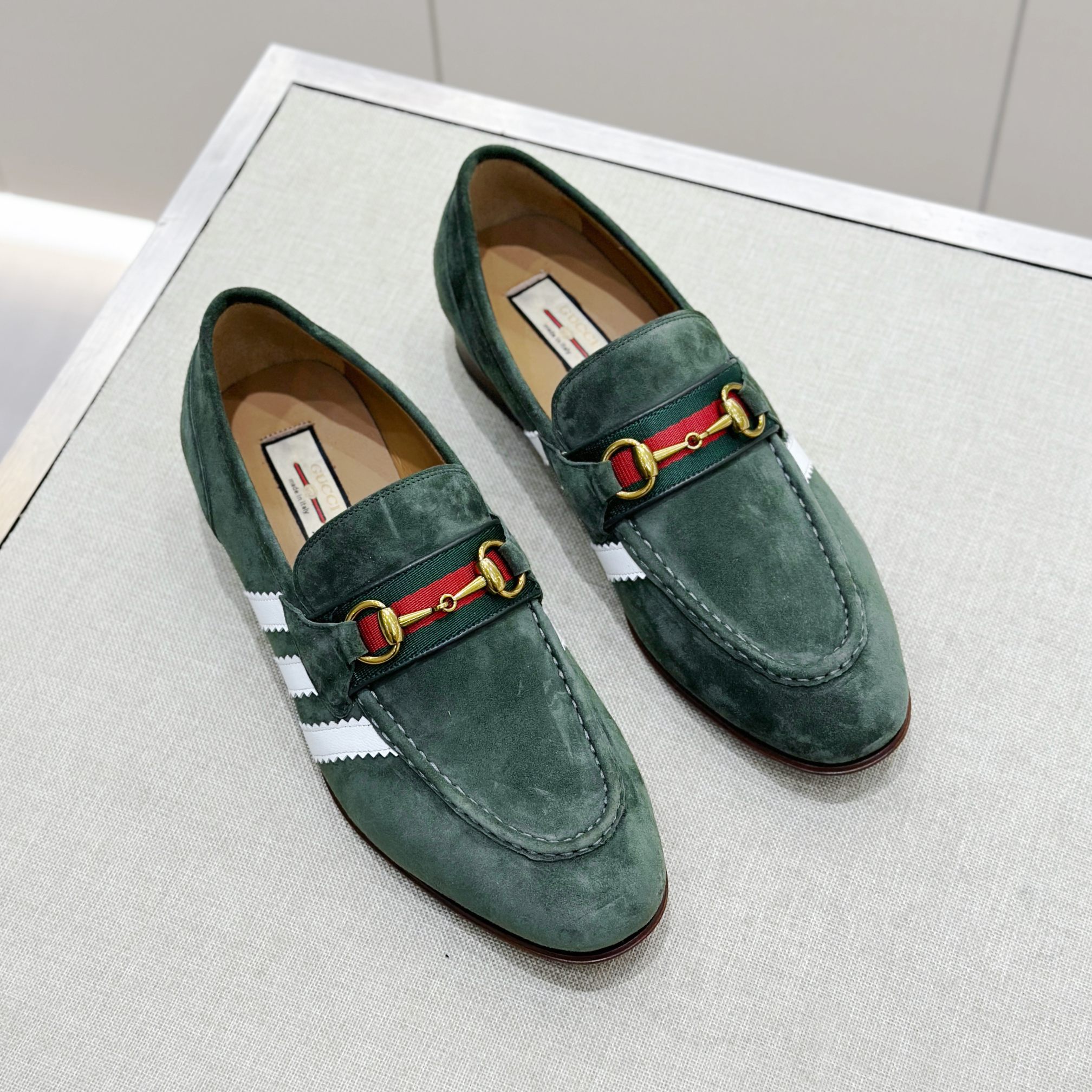 This Gucci shoes showcases the brand's exceptional craftsmanship and attention to detail. Crafted from premium suede, this piece combines timeless luxury with modern style.