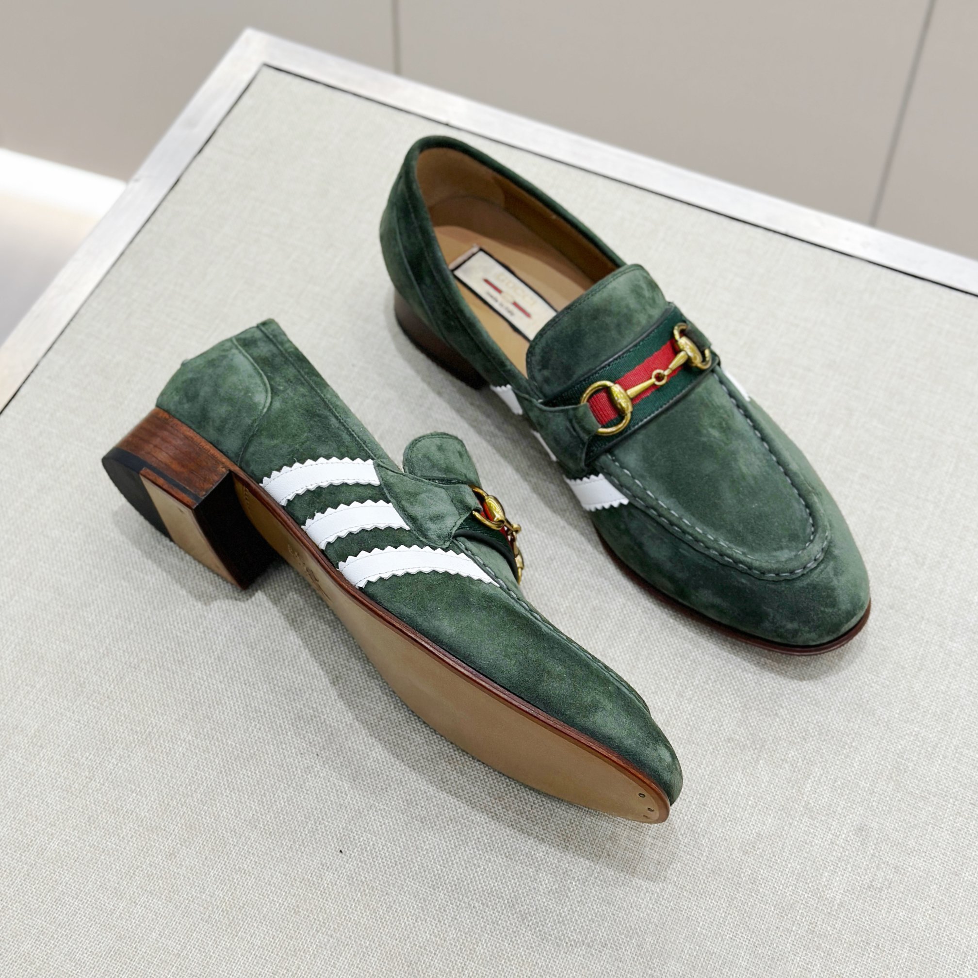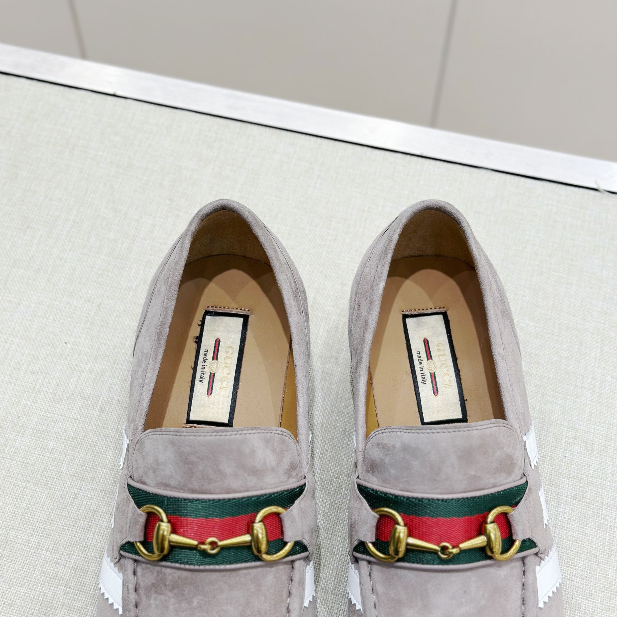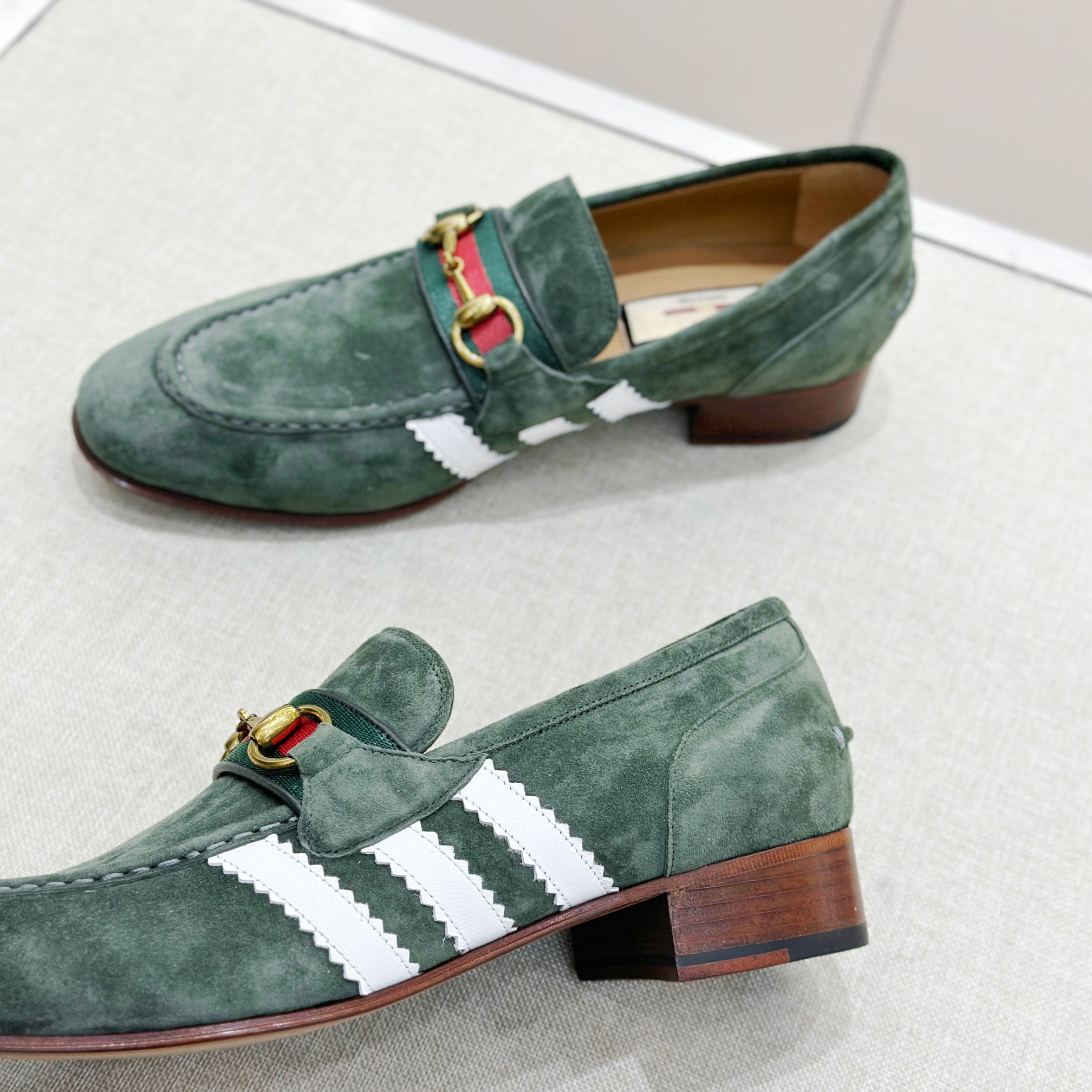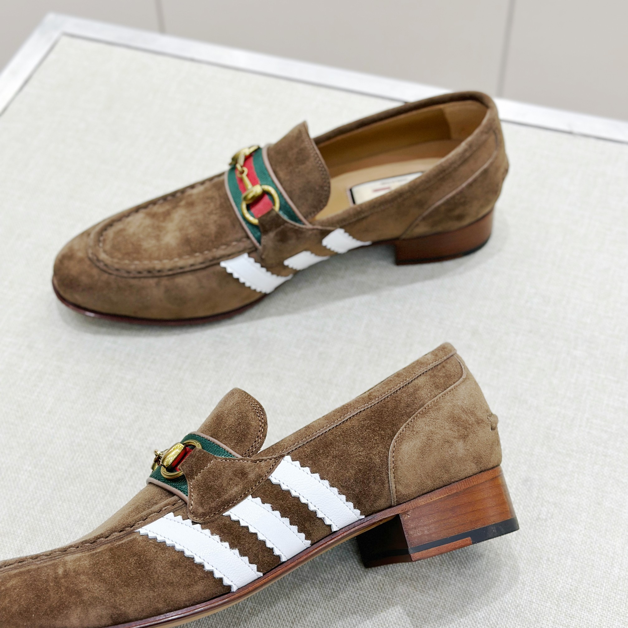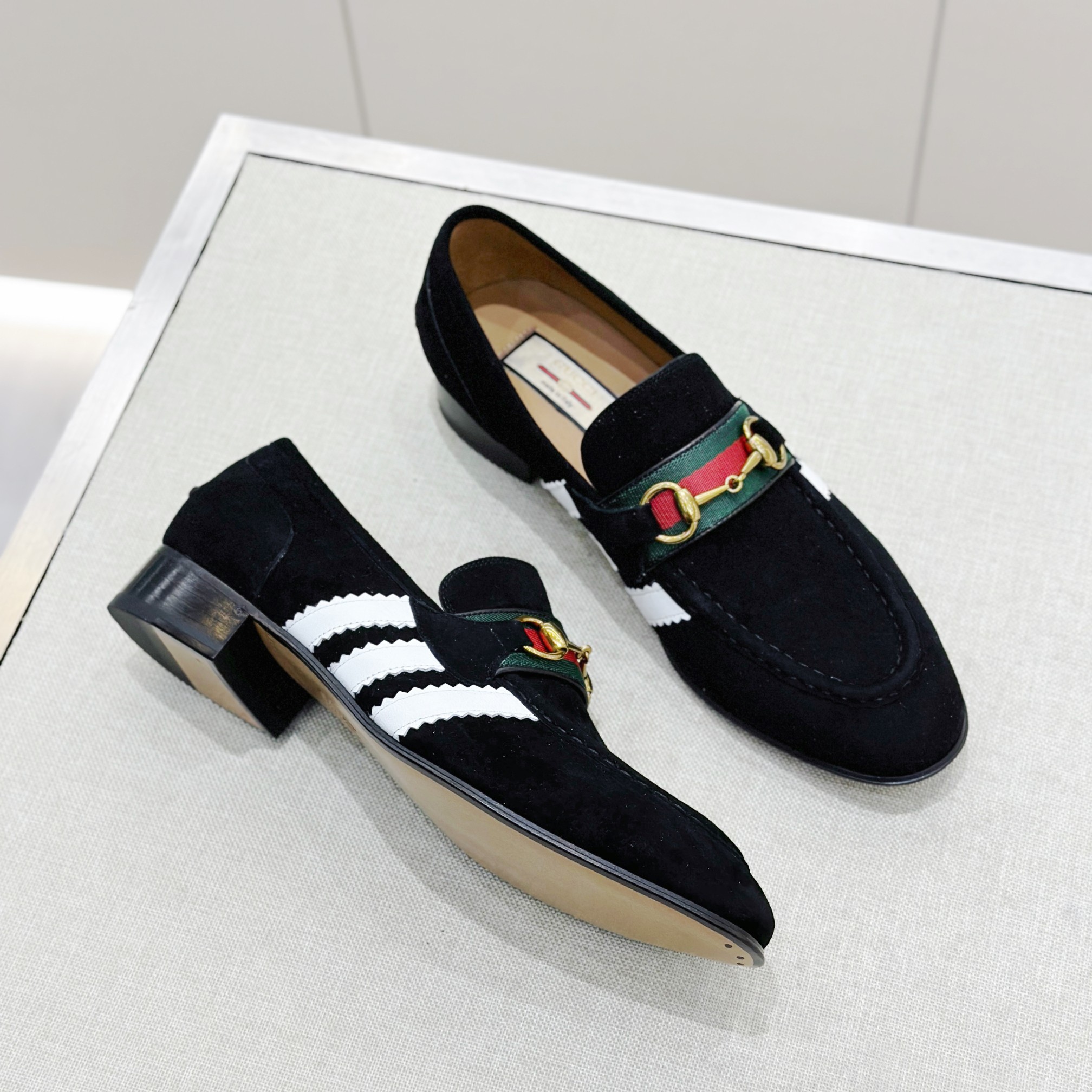This Gucci shoes showcases the brand's exceptional craftsmanship and attention to detail. Crafted from premium suede, this piece combines timeless luxury with modern style.