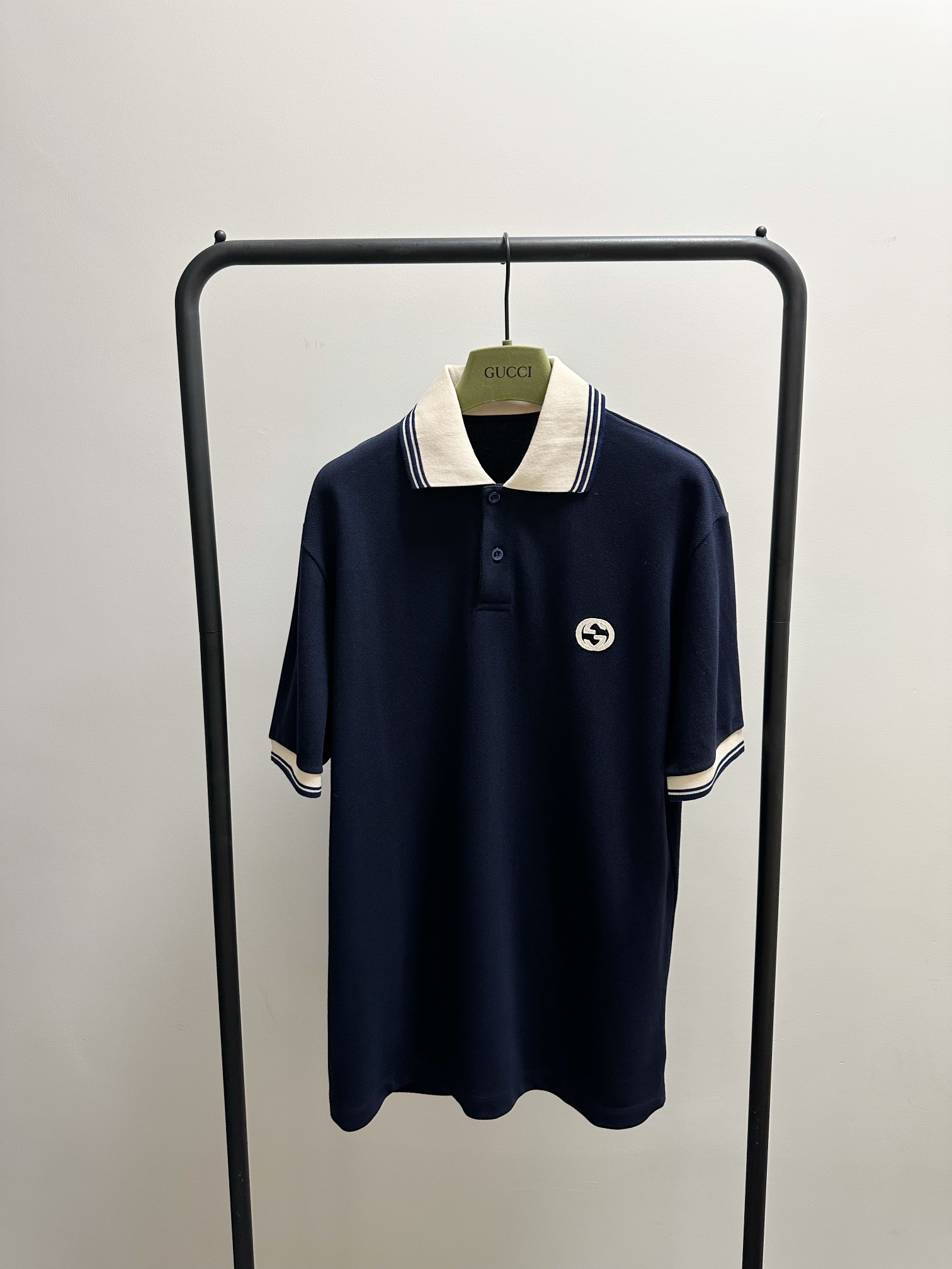 NIGO Gucci Men's Summer Colorblocked Stripe Trim Cotton Polo Neck Short Sleeve T-Shirt #nigo98684