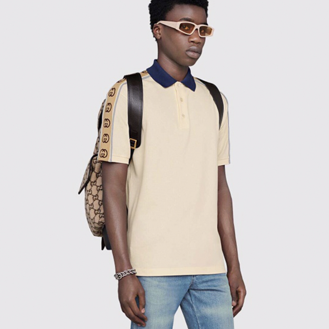 NIGO Gucci Men's Summer Double G Logo Striped Polo Shirt Color Block Button Cotton Casual Fit T-shirt #nigo71282
