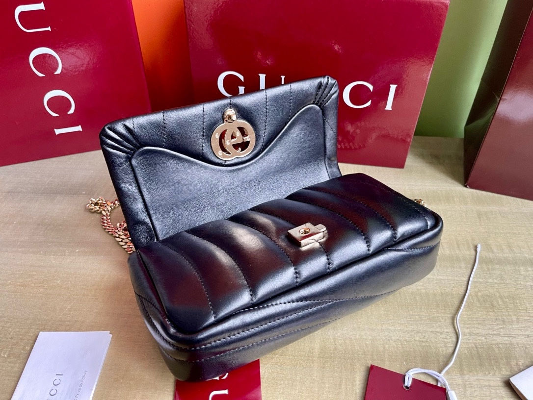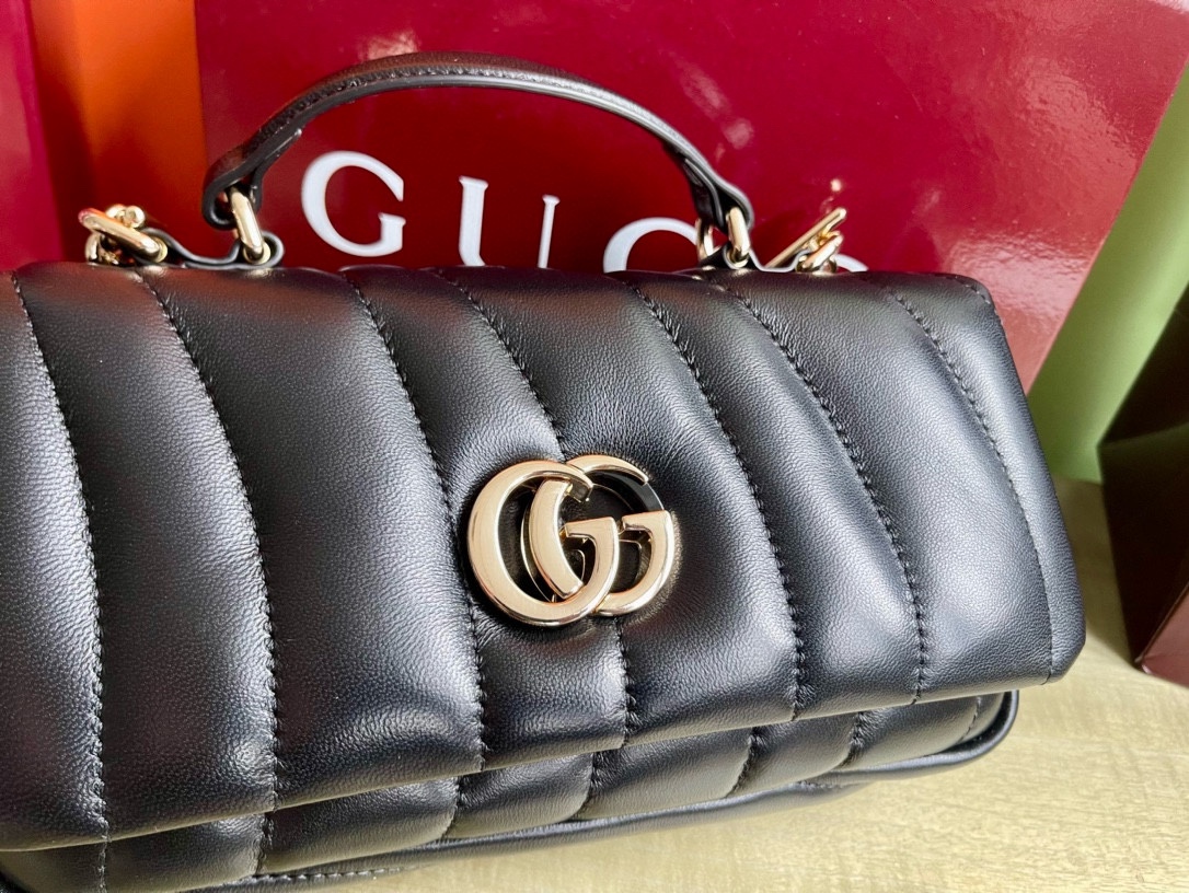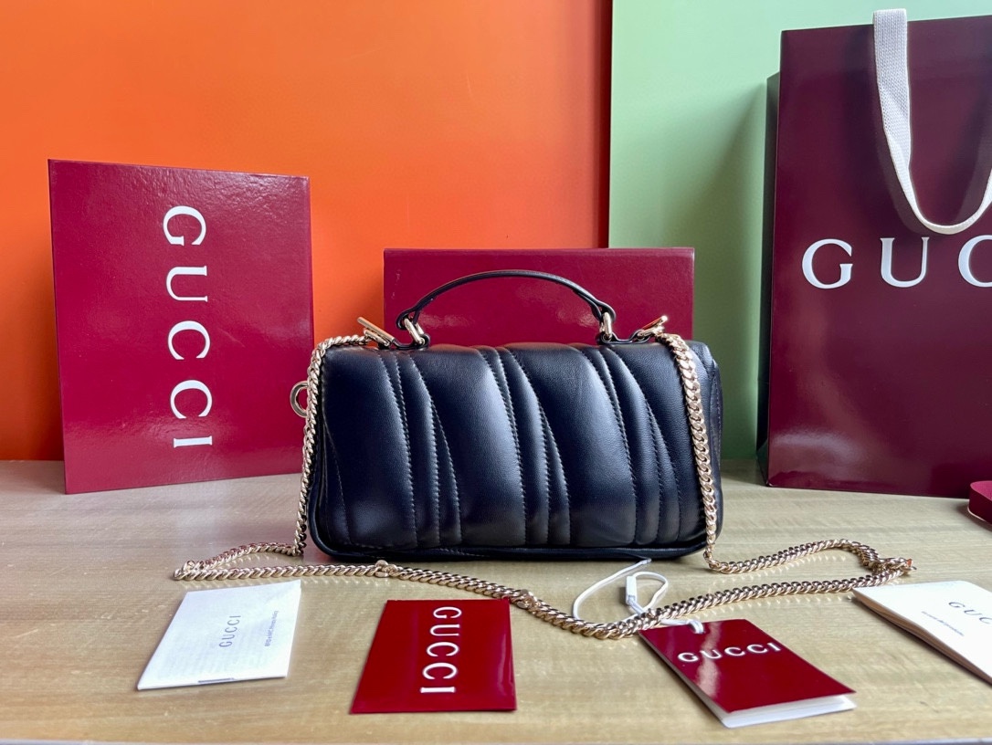 This Gucci handbag showcases the brand's exceptional craftsmanship and attention to detail. Crafted from premium leather, this piece combines timeless luxury with modern style.