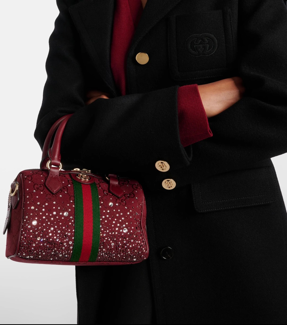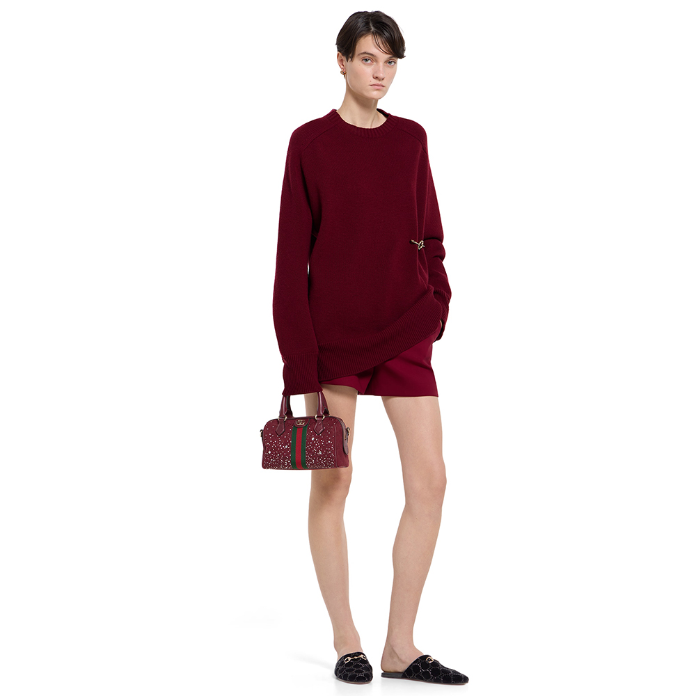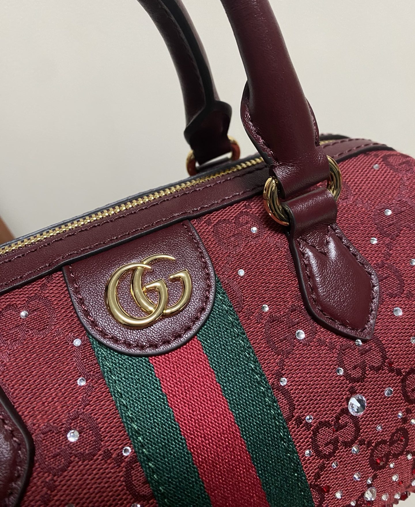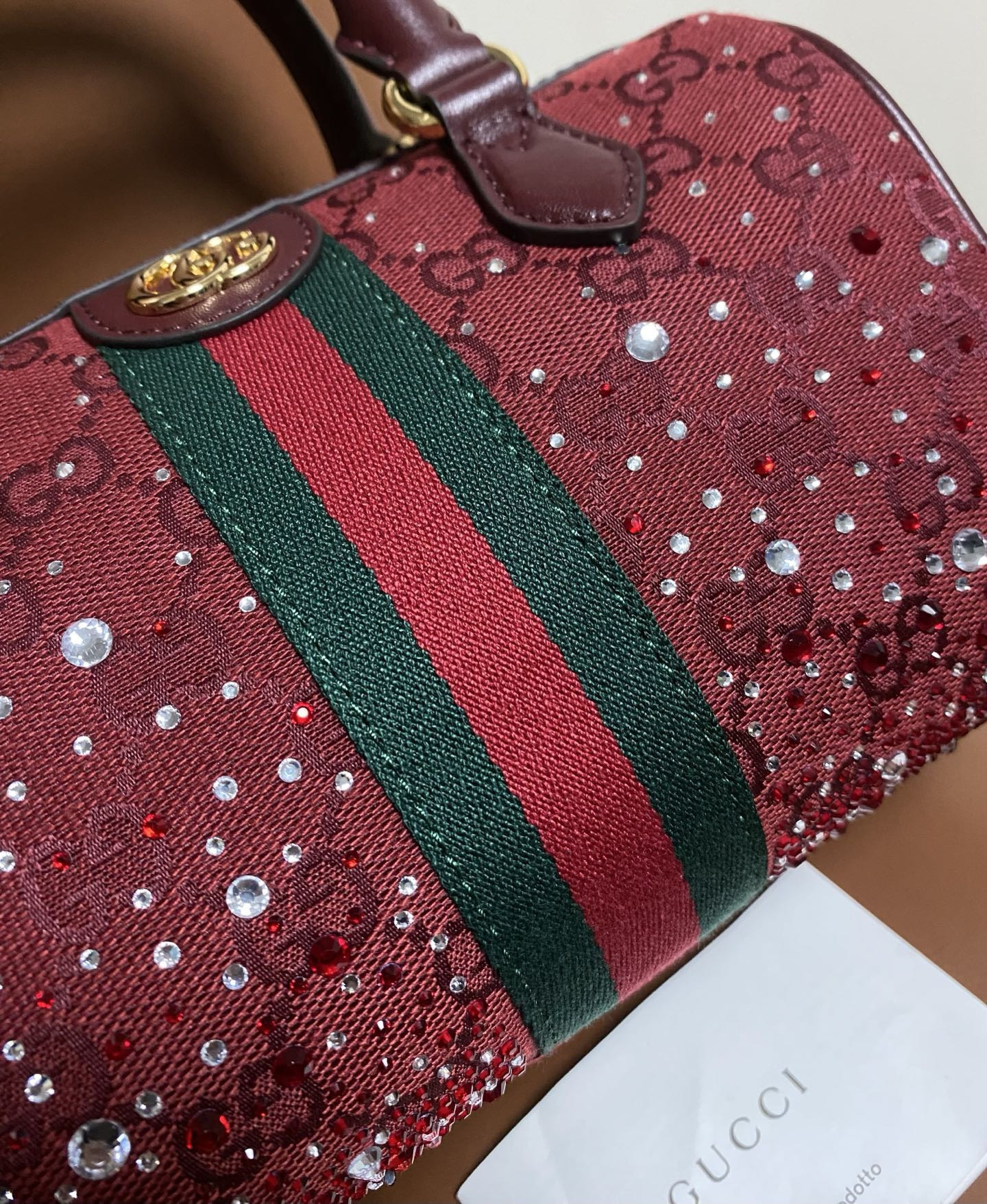 NIGO GUCCI Ophidia crystals small boston bag in Rosso Ancora red GG canvas #nigo335872