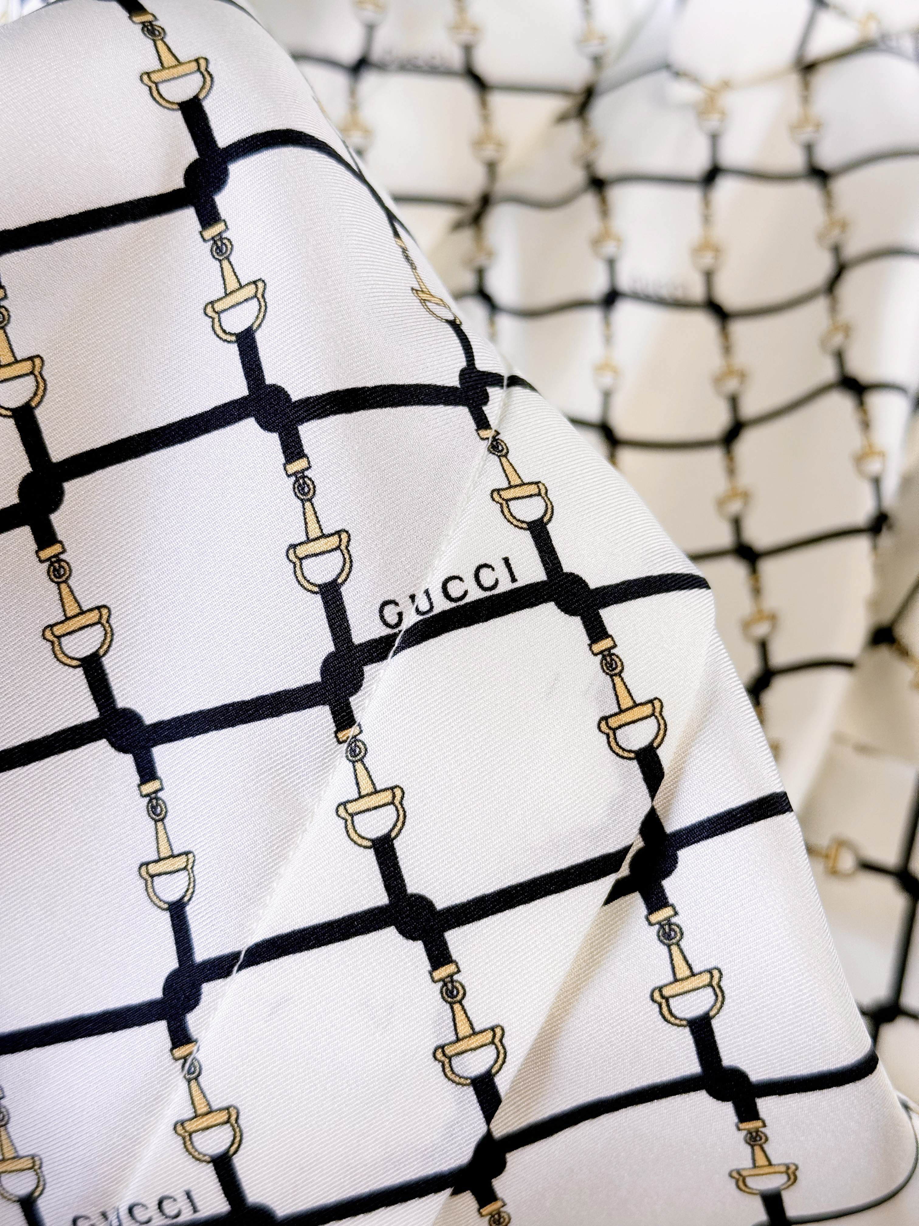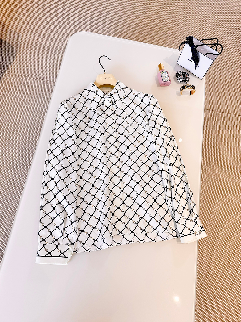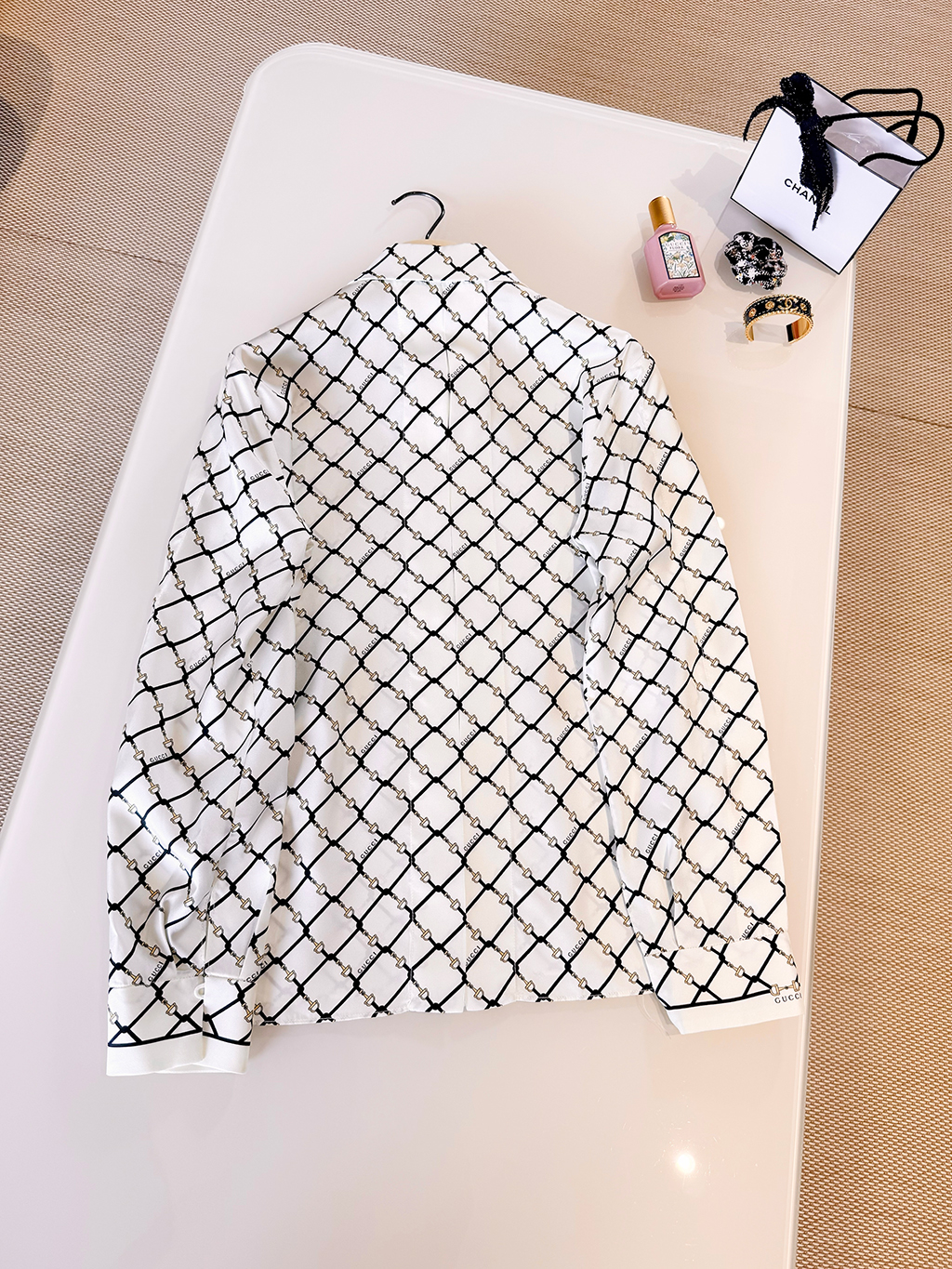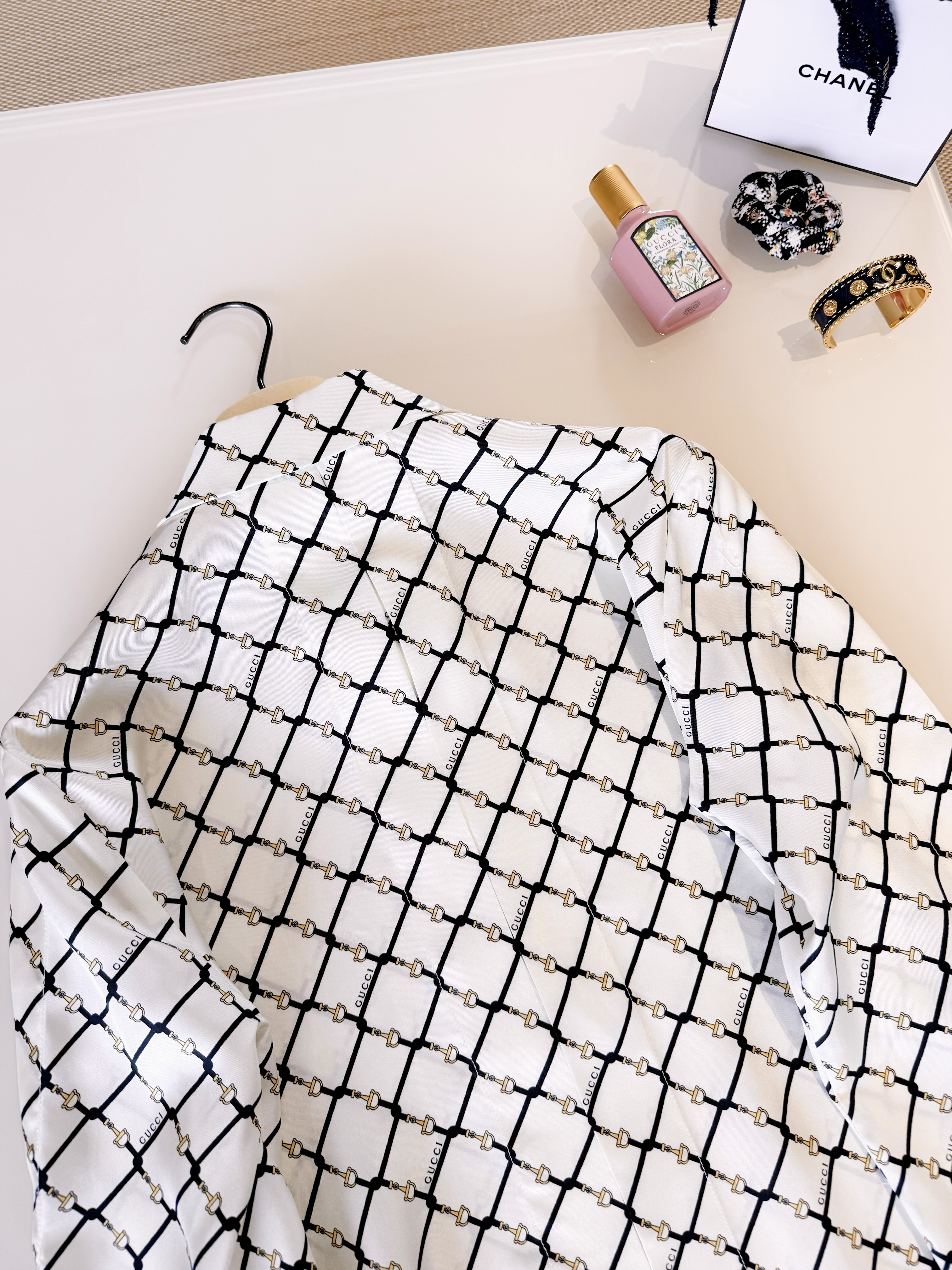 This Gucci clothing showcases the brand's exceptional craftsmanship and attention to detail. Crafted from premium silk, in a stunning white colorway, this piece combines timeless luxury with modern style.