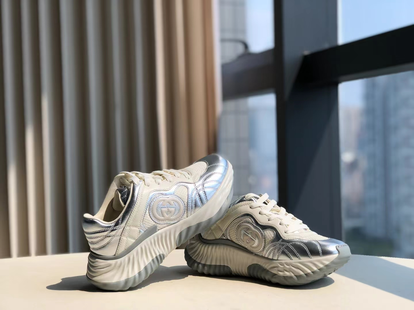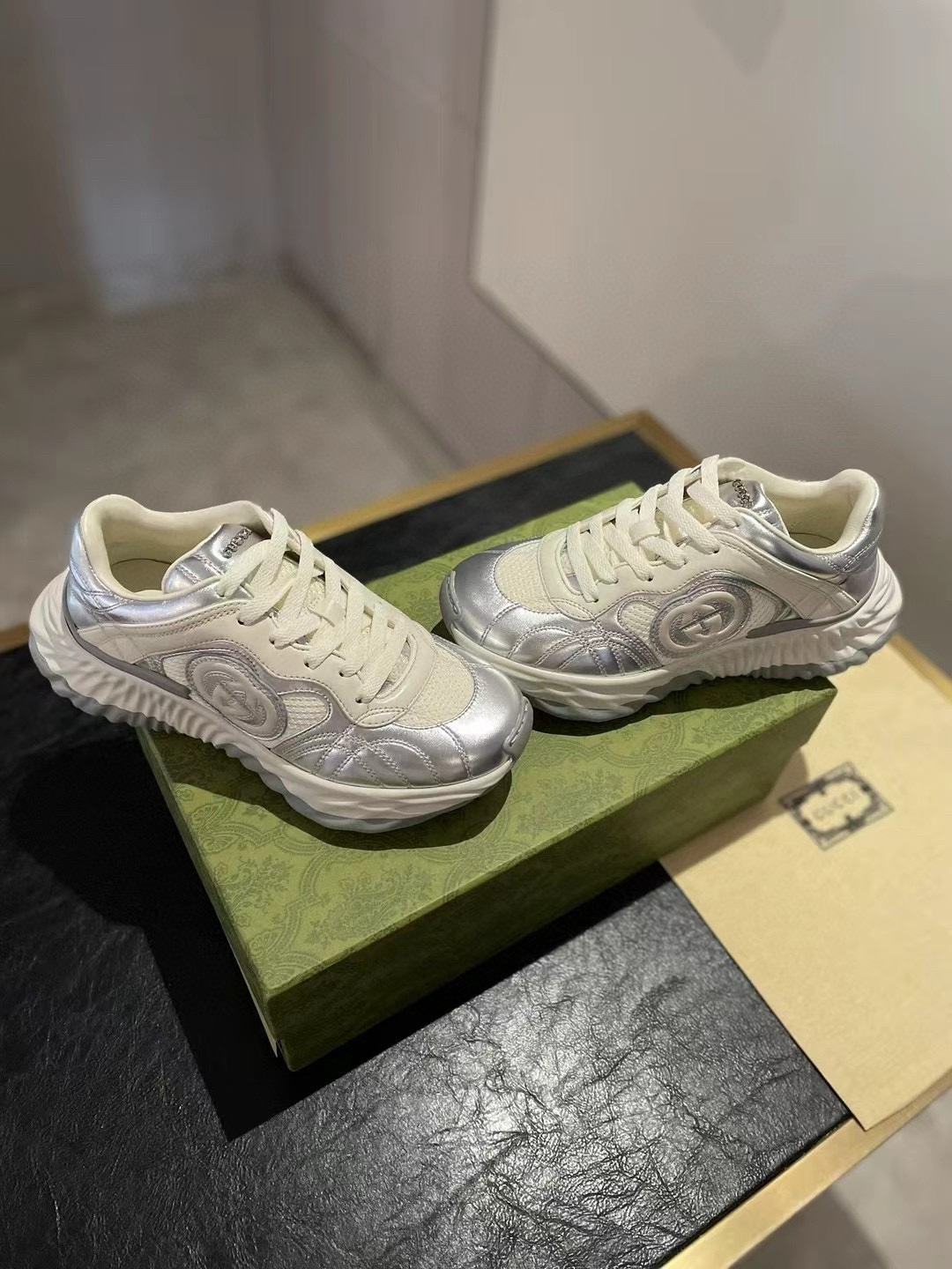 NIGO Gucci Ripple Women's Solid Color Leather Fashion Comfortable Low Top Lace Up Thick Bottom Sneakers Shoes #nigo72569