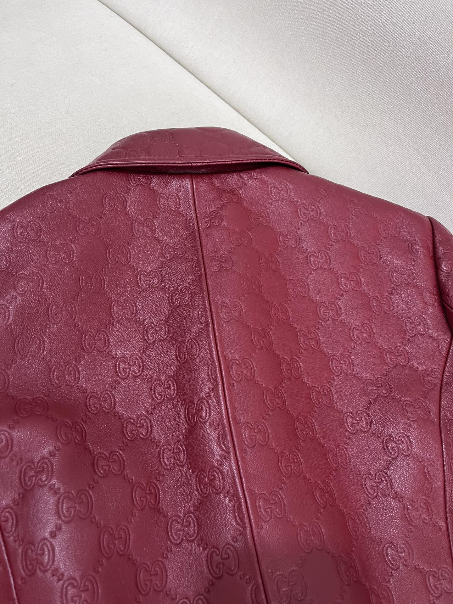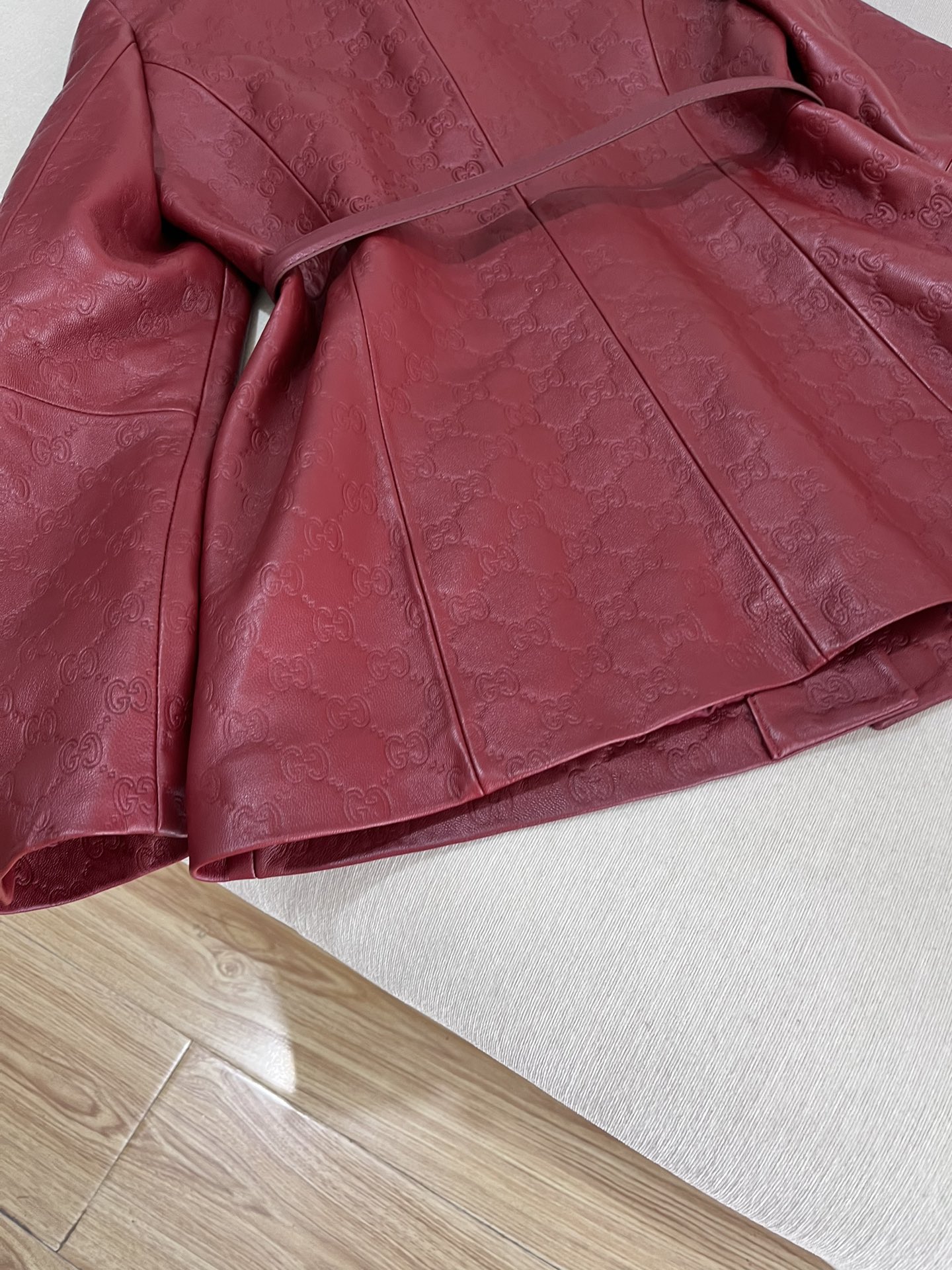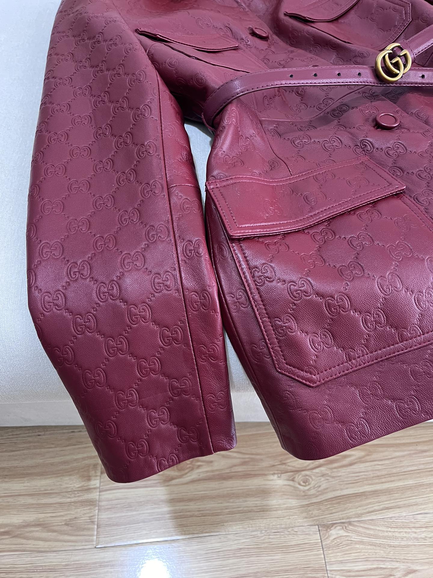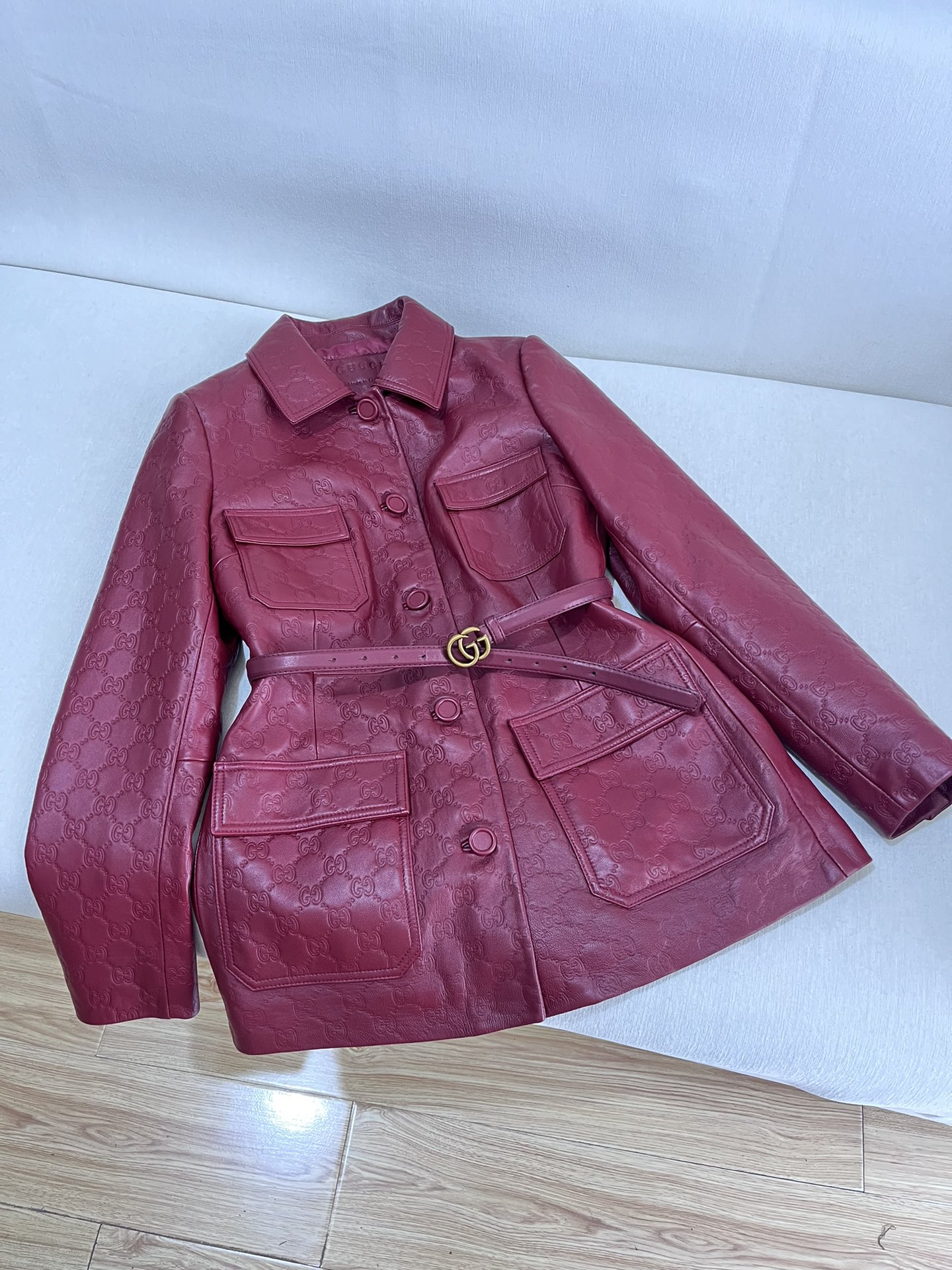 NIGO Gucci Women's Autumn and Winter Solid Color Lapel Embossed Printed Leather Mid-Length Belted Long Sleeve Jacket Coat #nigo74376