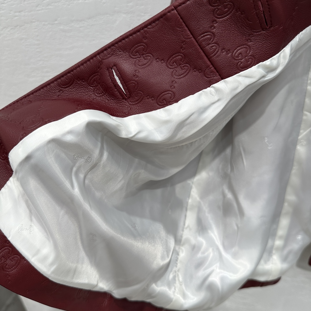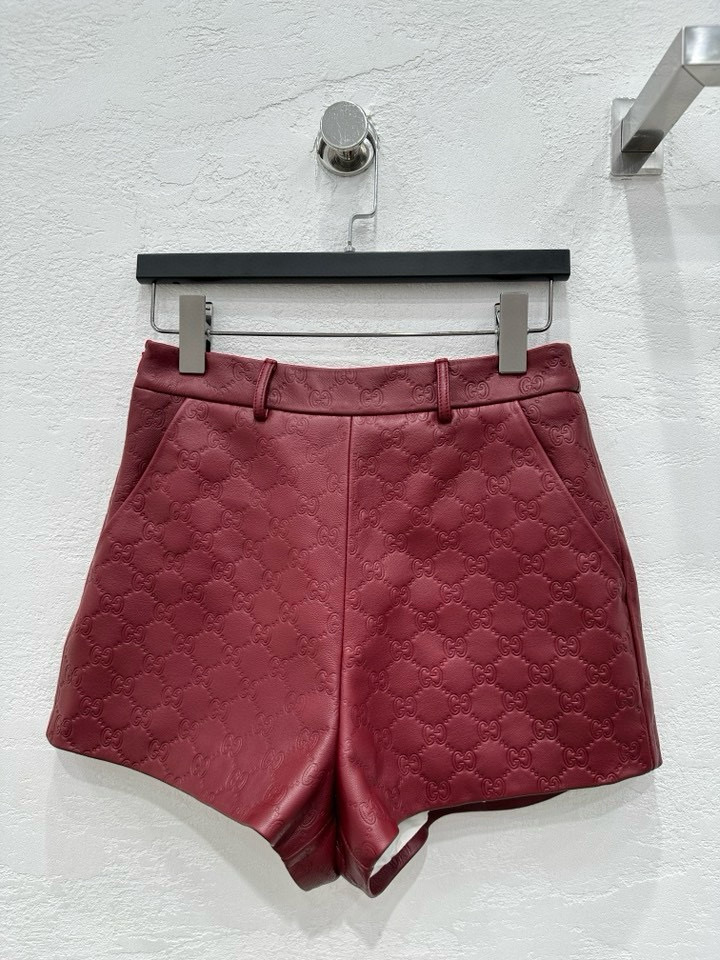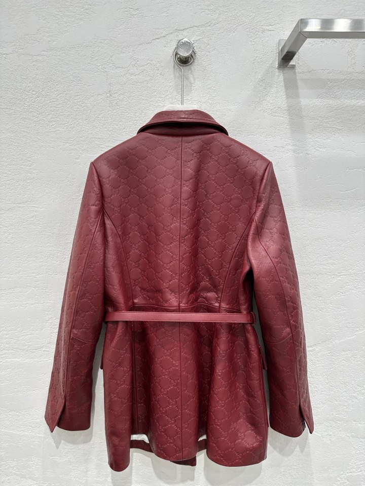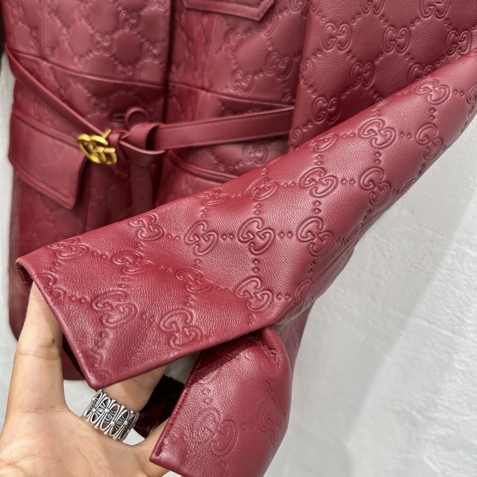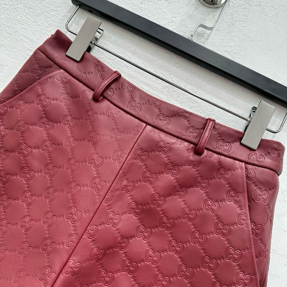 NIGO Gucci Women's Autumn and Winter Solid Color Lapel Embossed Printed Leather Mid-Length Drawstring Long Sleeve Jacket Coat Zipper Casual Shorts Set Suit #nigo75286