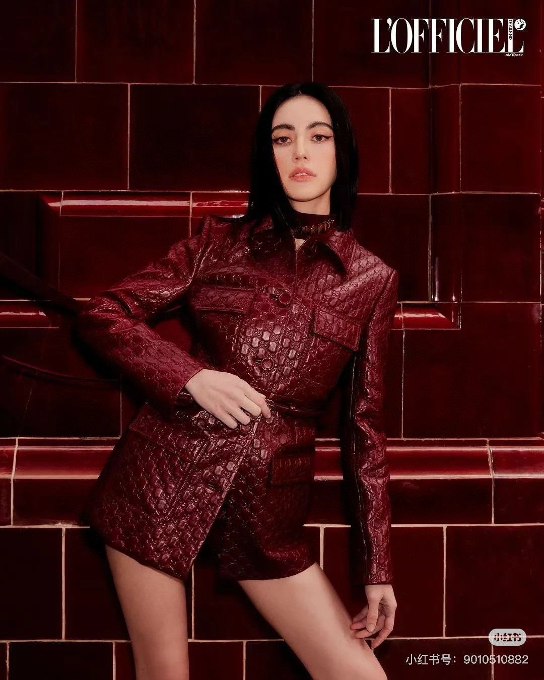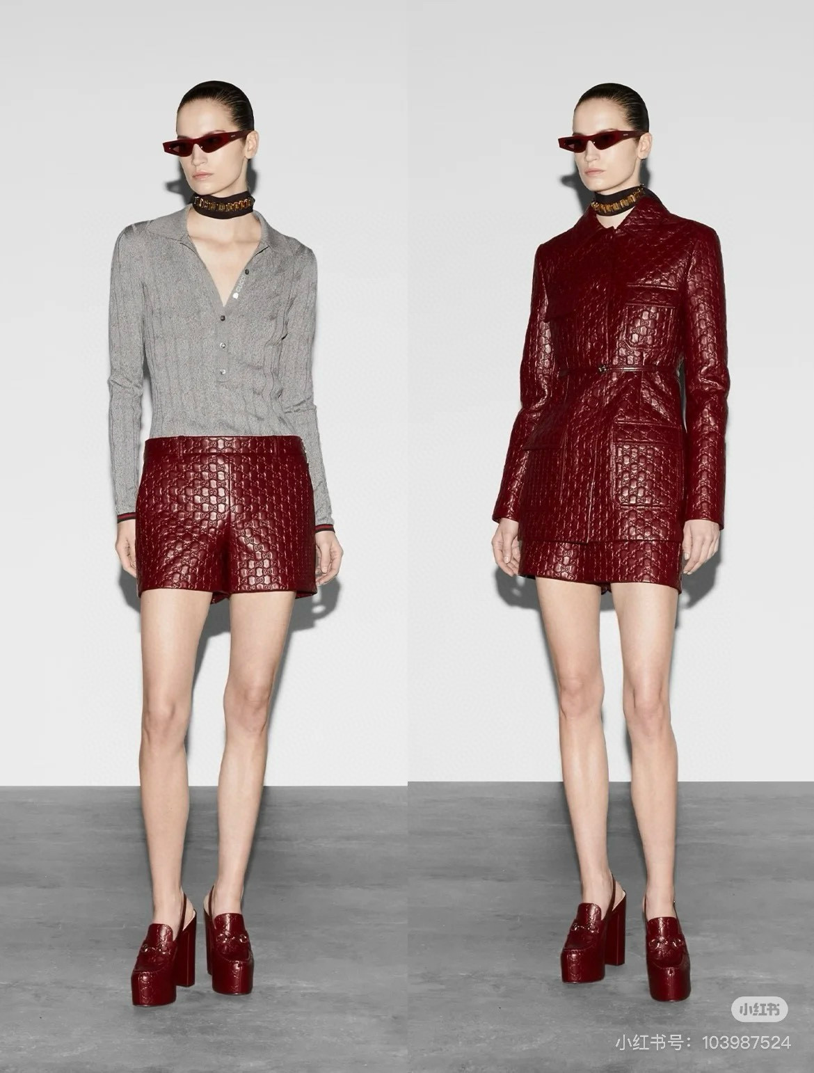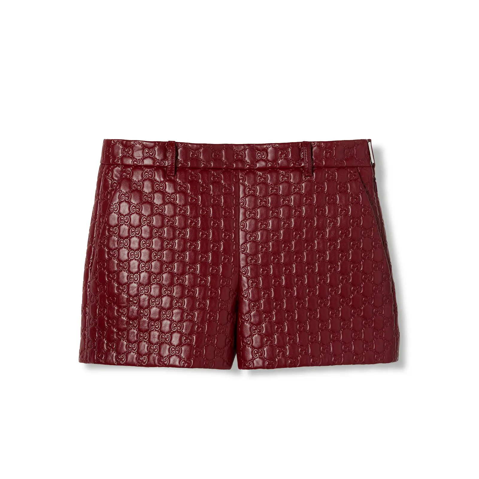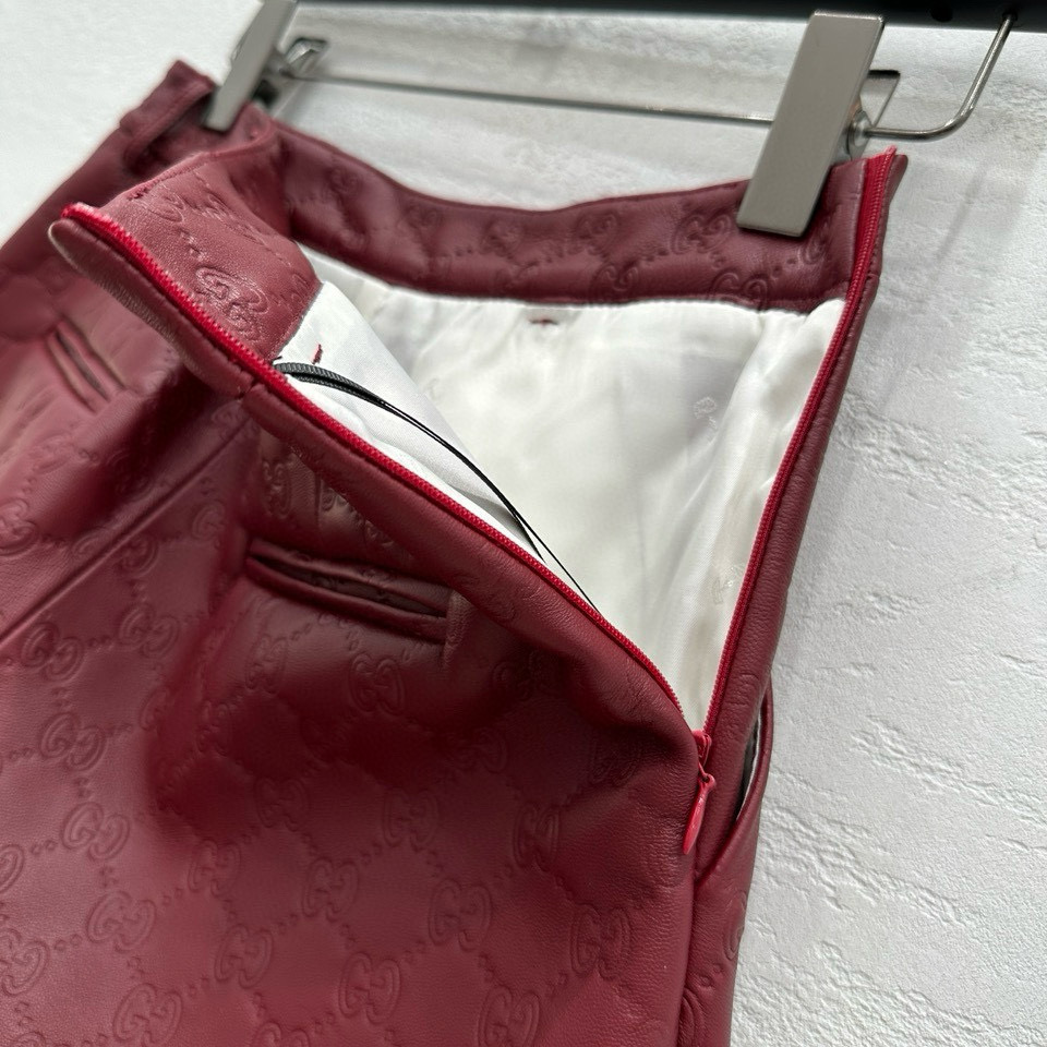 NIGO Gucci Women's Autumn and Winter Solid Color Lapel Embossed Printed Leather Mid-Length Drawstring Long Sleeve Jacket Coat Zipper Casual Shorts Set Suit #nigo75286