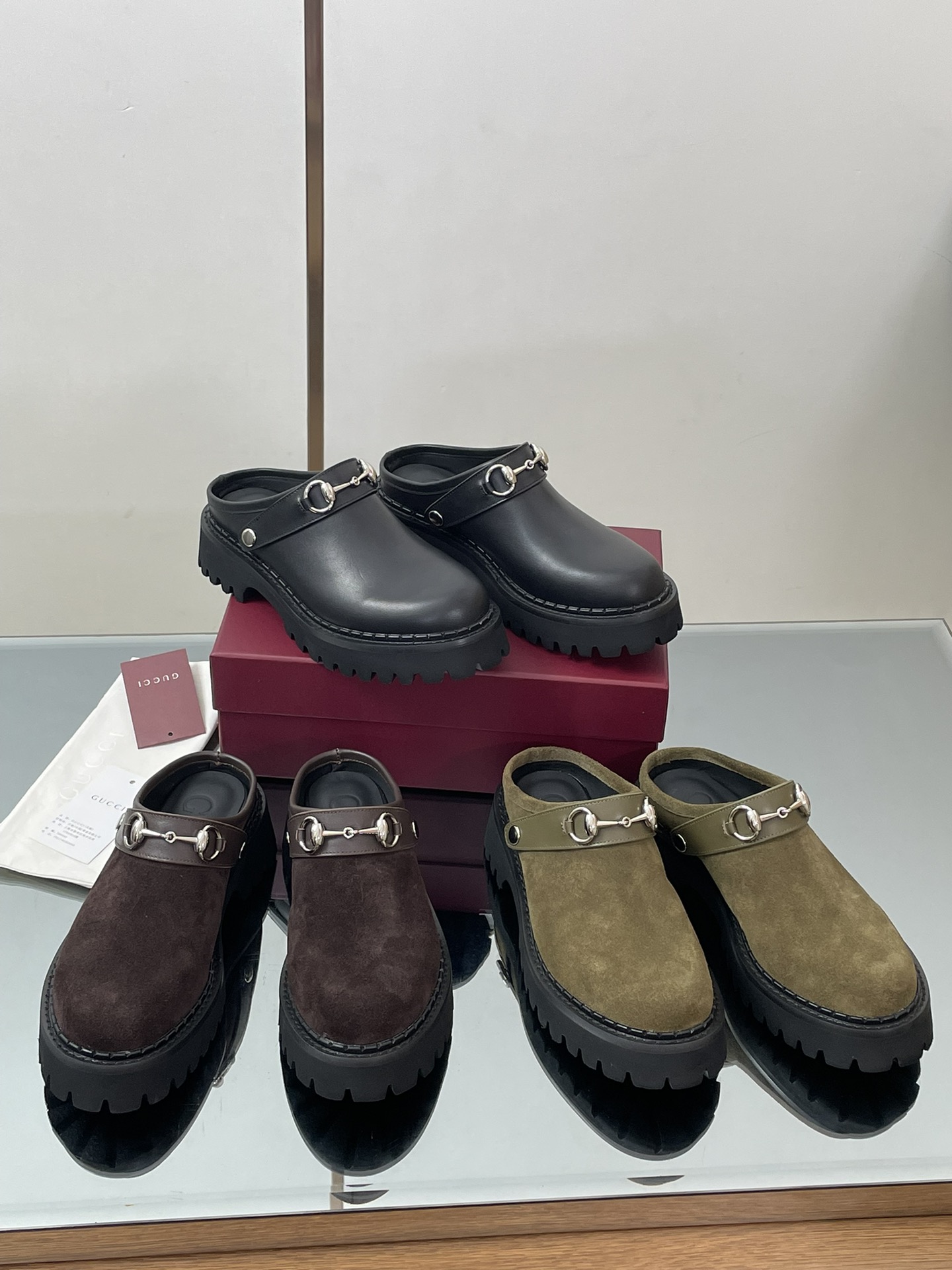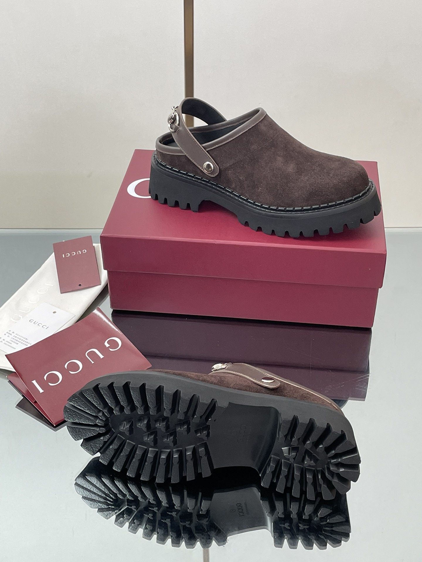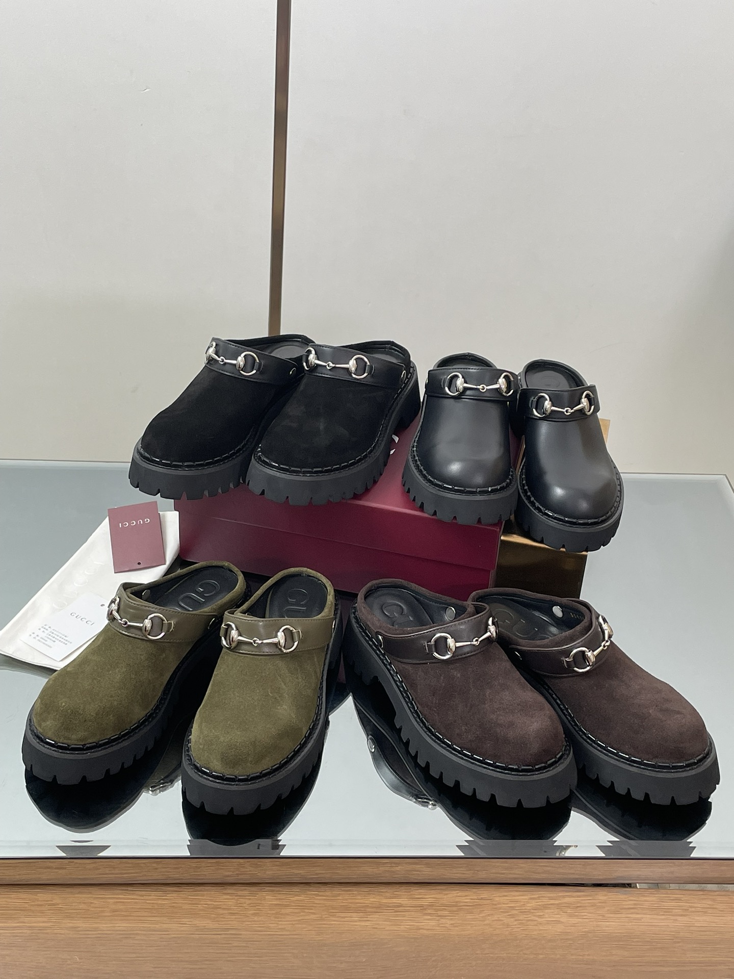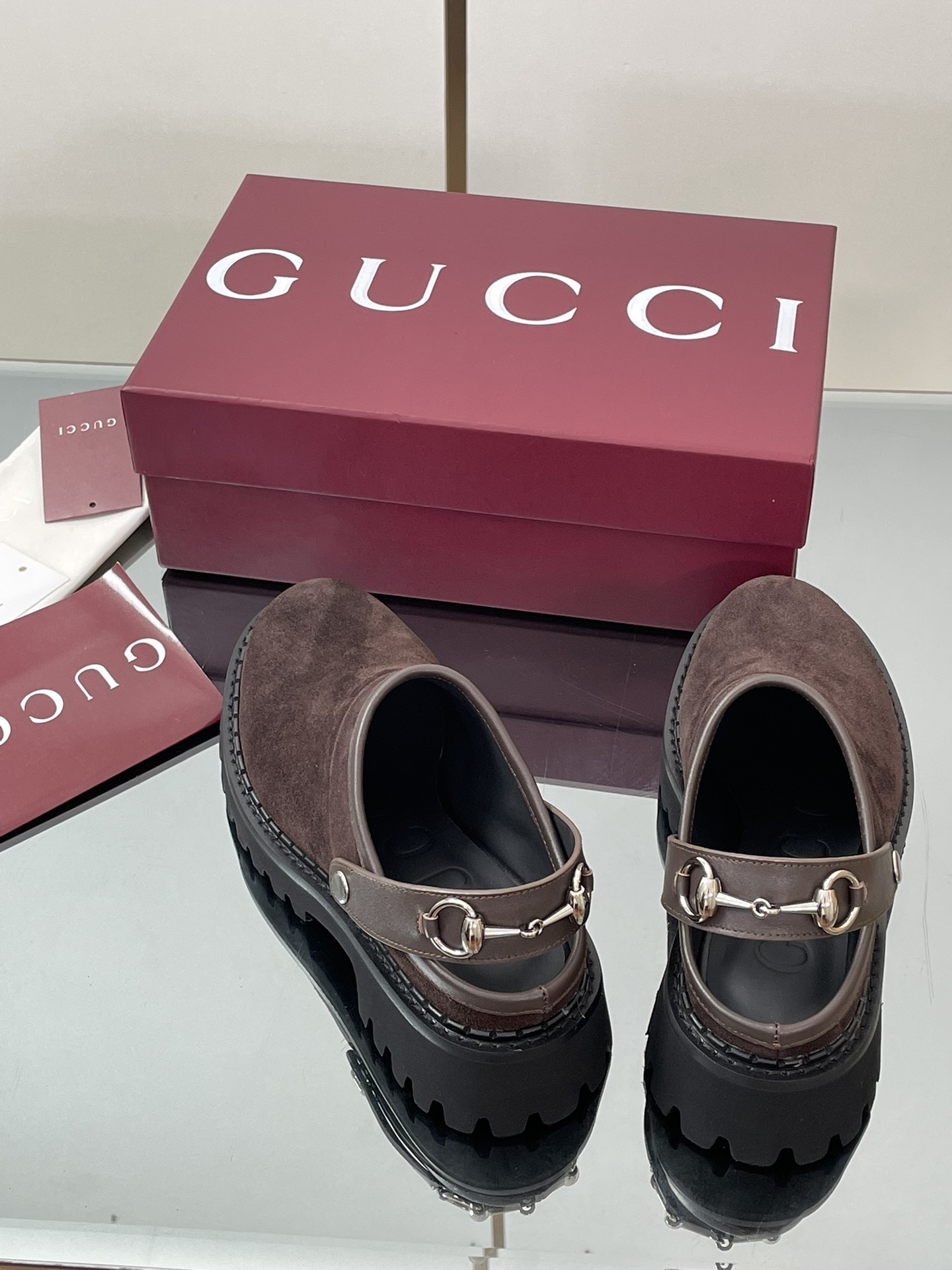 NIGO Gucci Women's Decorated Horsebit Buckle Mule Shoes Suede Leather Half Slippers Fashion Thick Bottom Height Increasing Shoes Heel Height:5cm #nigo81434