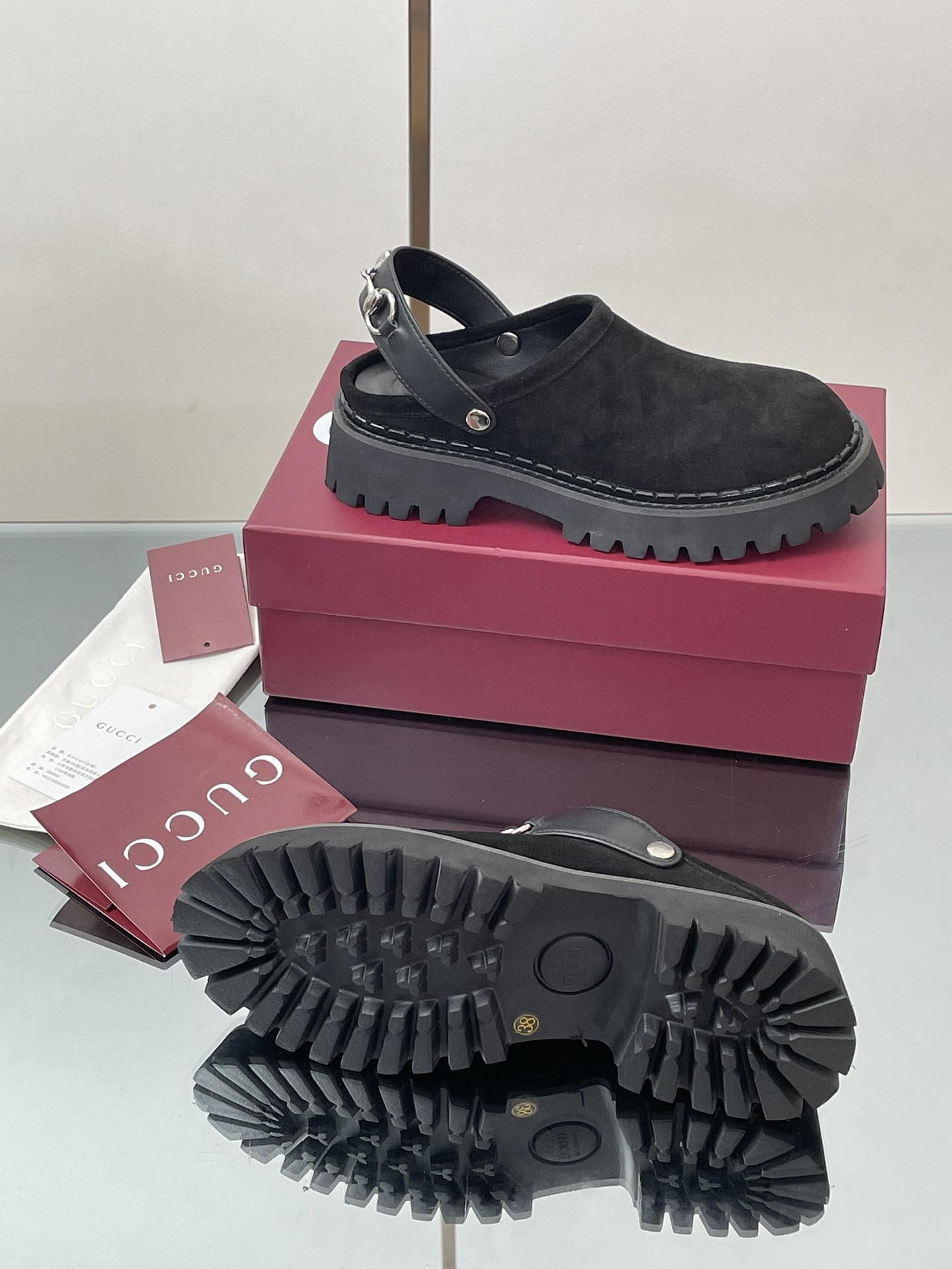 This Gucci shoes showcases the brand's exceptional craftsmanship and attention to detail. Crafted from premium leather, suede, this piece combines timeless luxury with modern style.