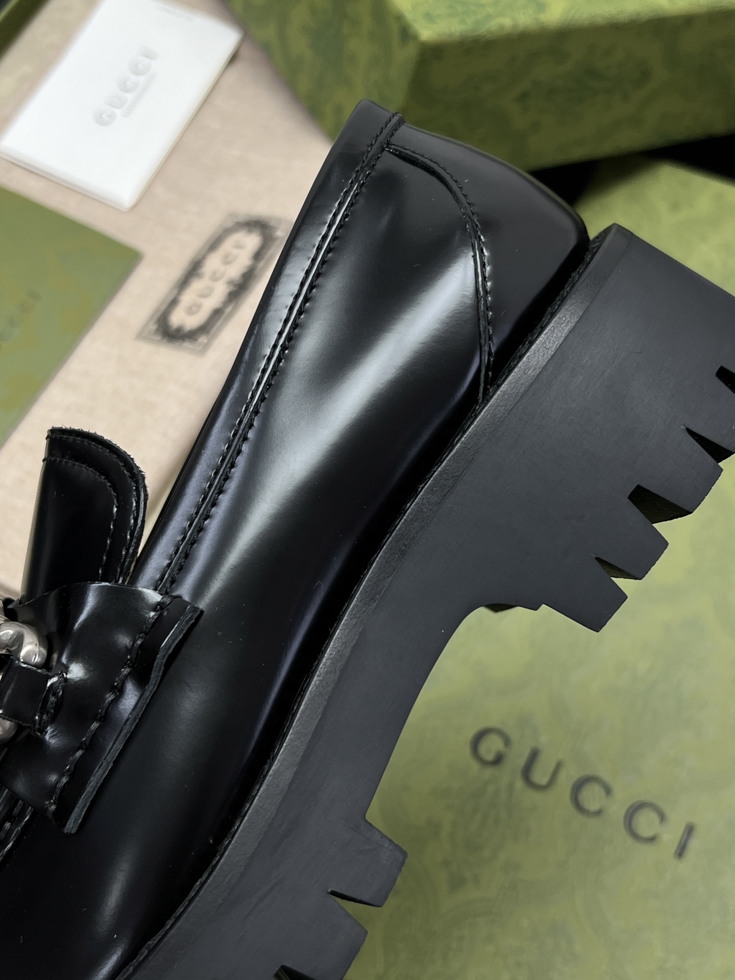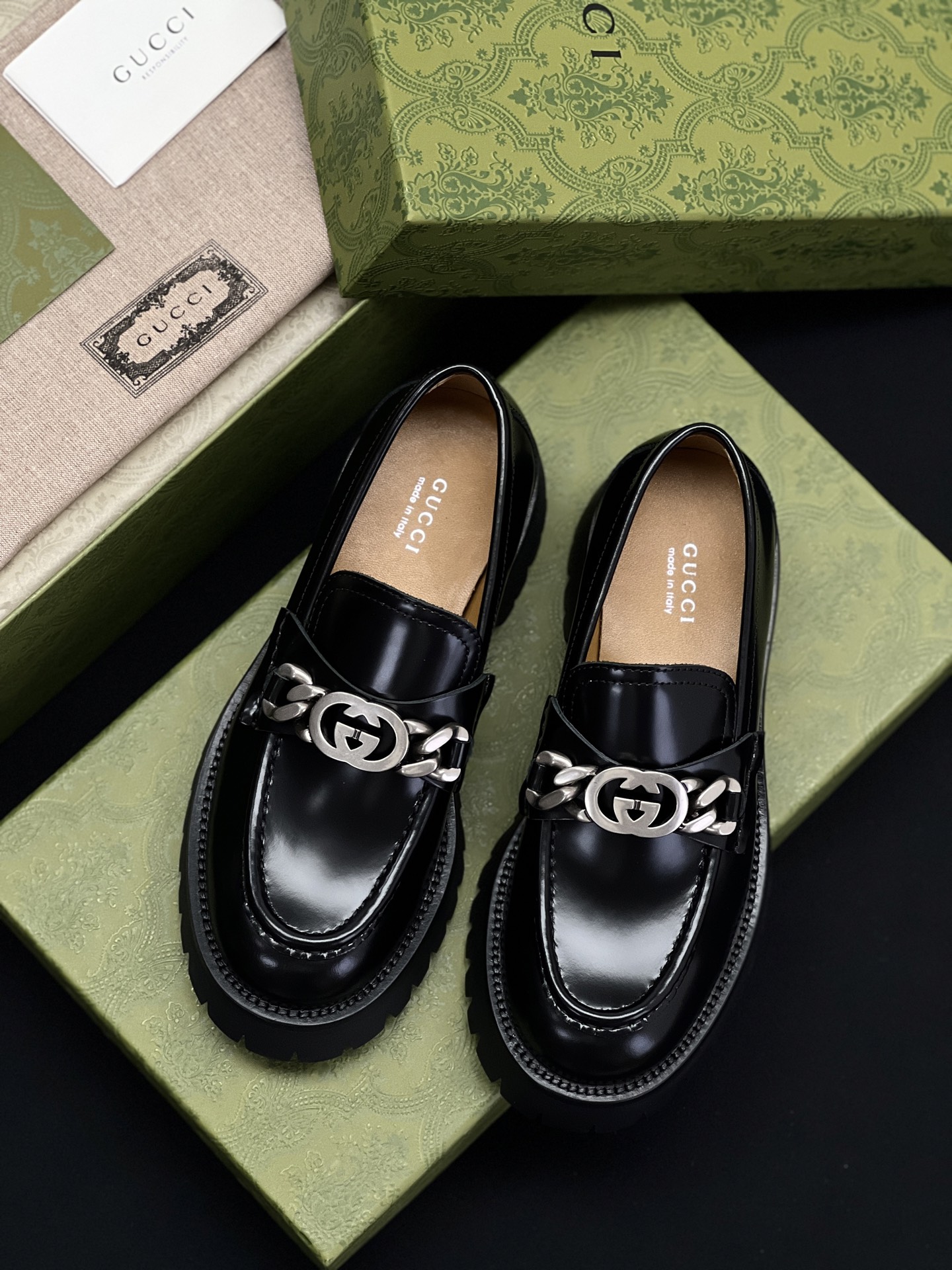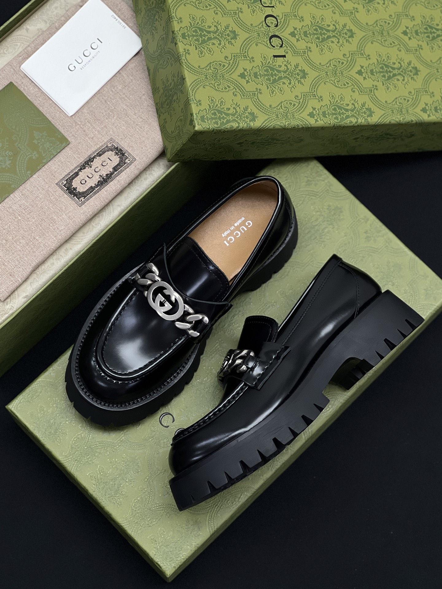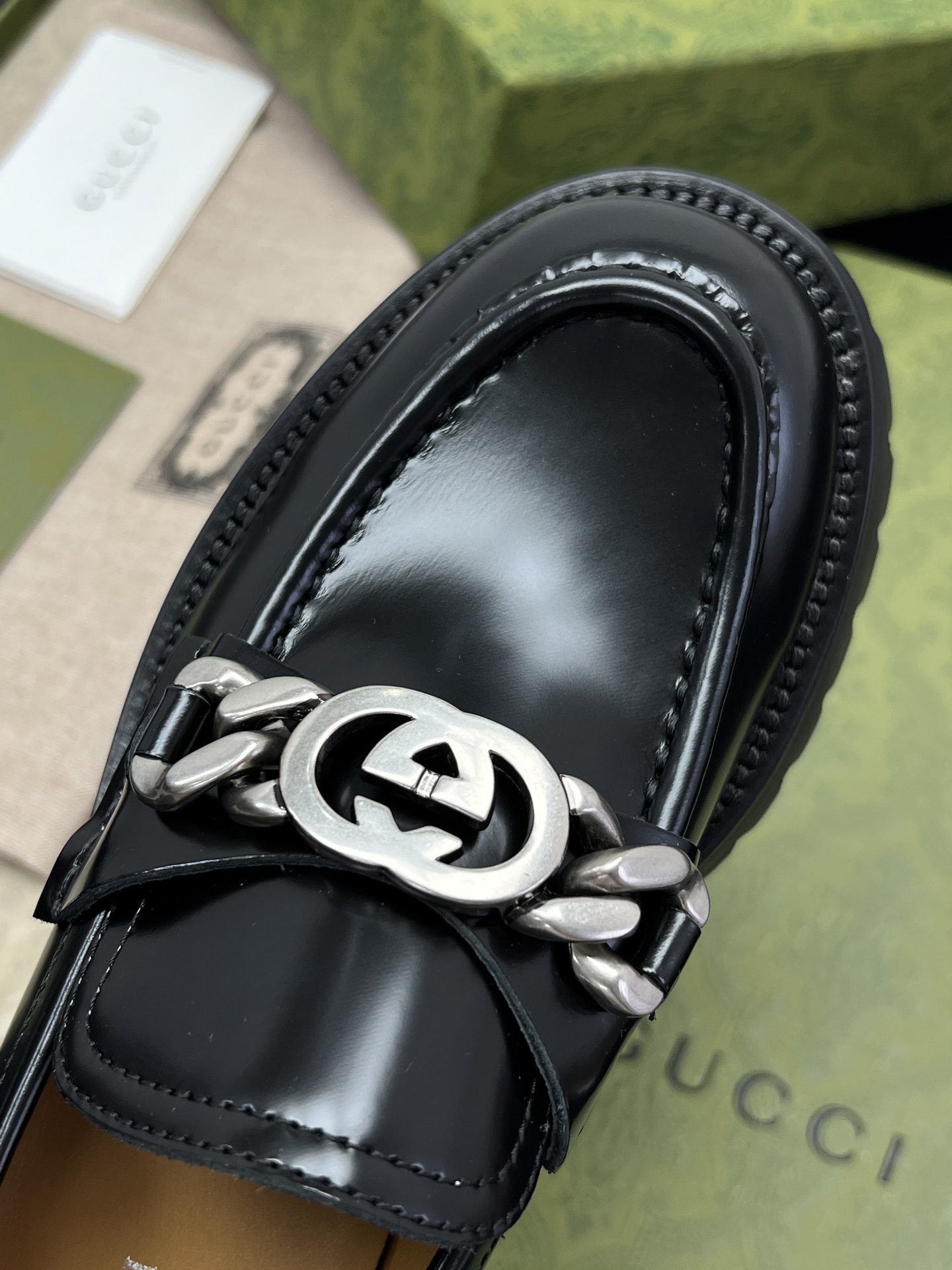 This Gucci shoes showcases the brand's exceptional craftsmanship and attention to detail. Crafted from premium leather, this piece combines timeless luxury with modern style.