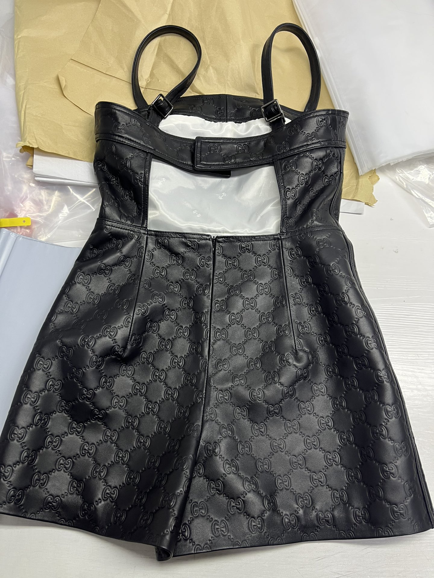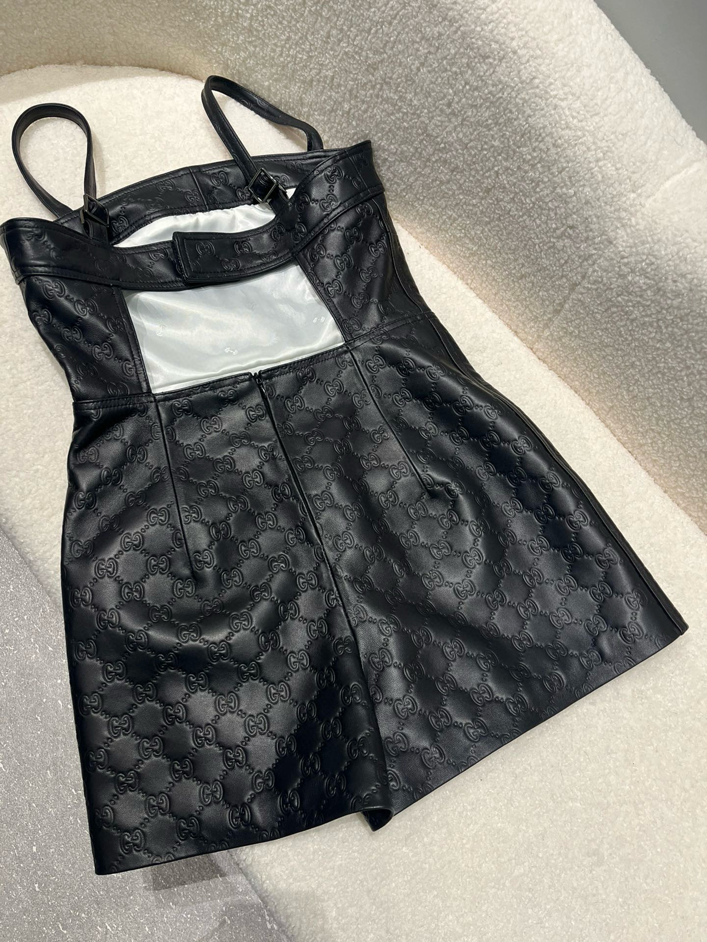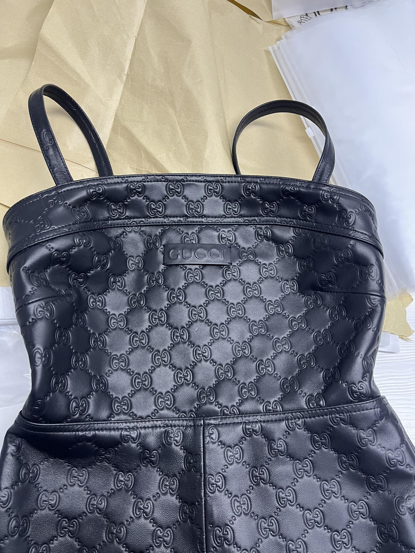 NIGO Gucci Women's Spring/Summer Alphabet Embossed Printed Solid Color Leather Halter Jumpsuit #nigo75151