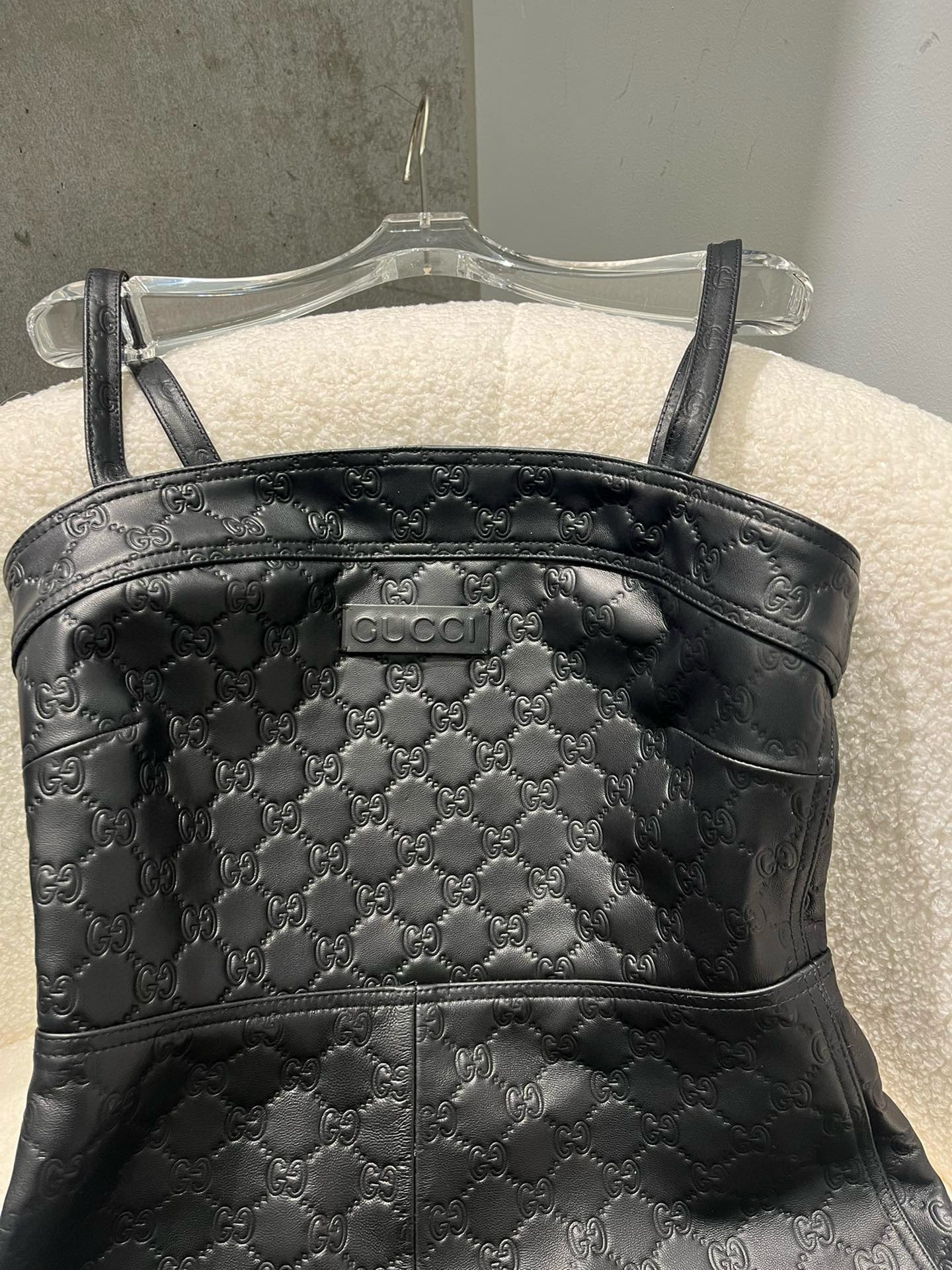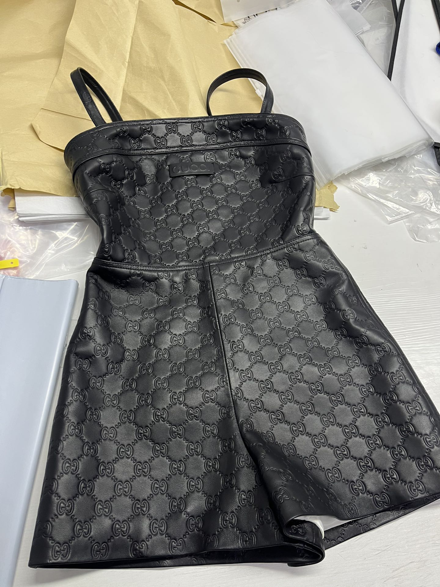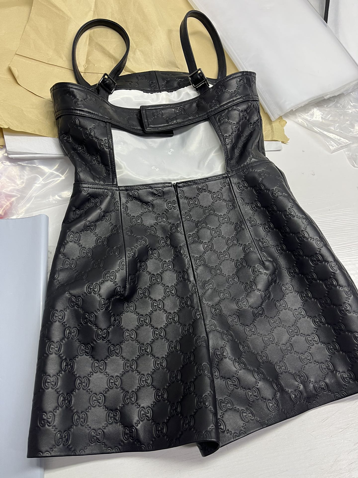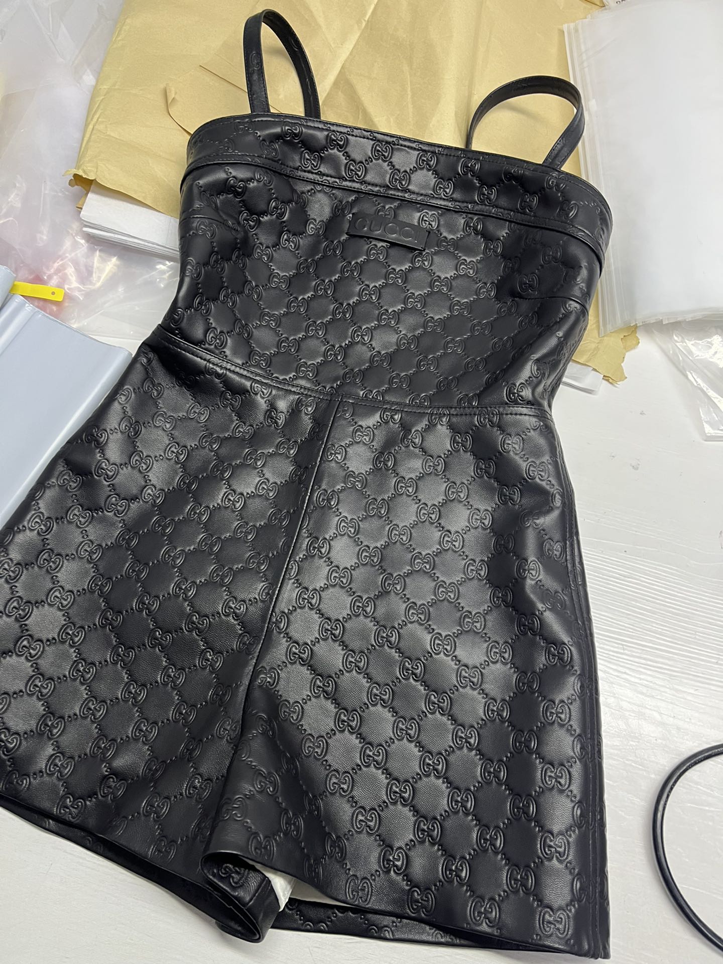 NIGO Gucci Women's Spring/Summer Alphabet Embossed Printed Solid Color Leather Halter Jumpsuit #nigo75151