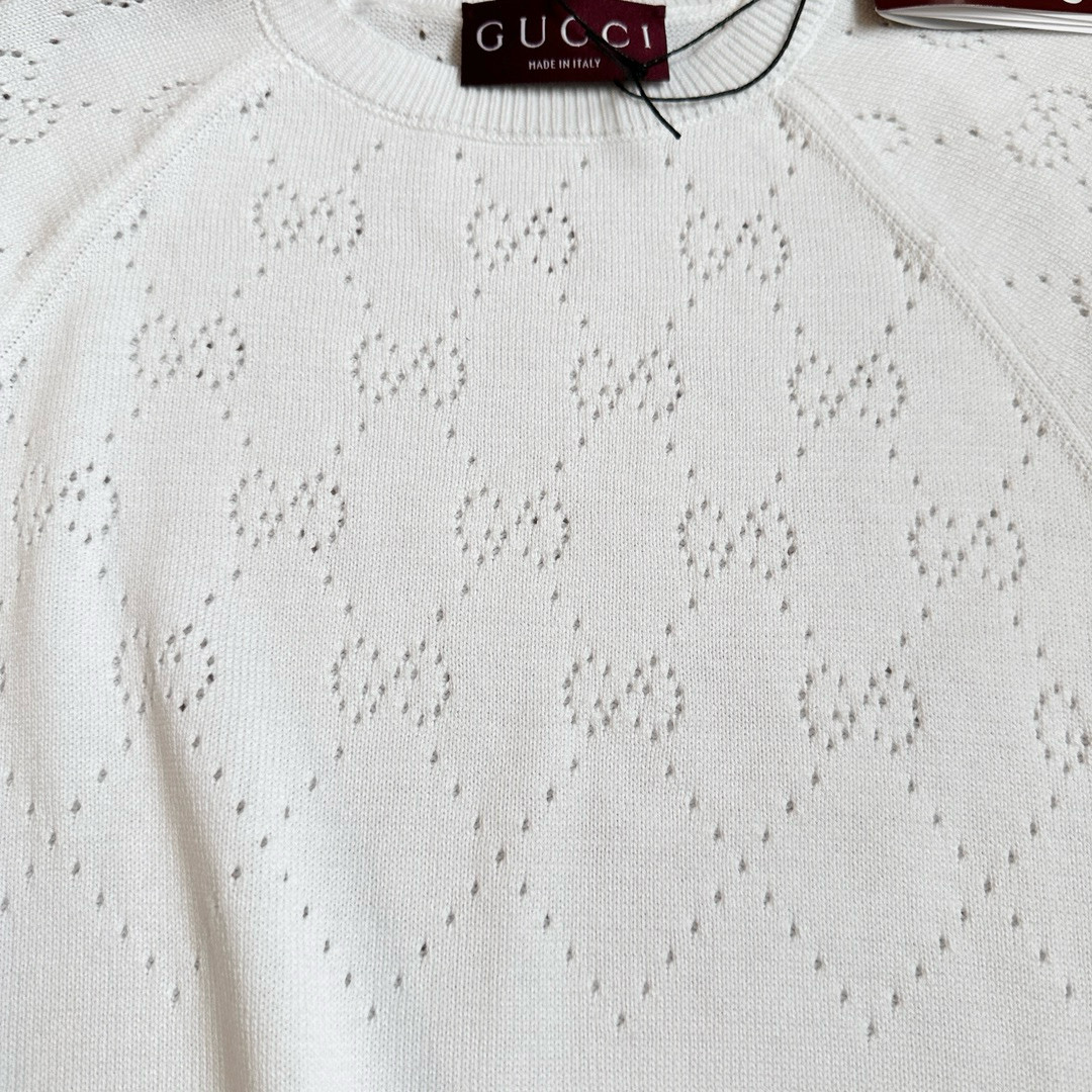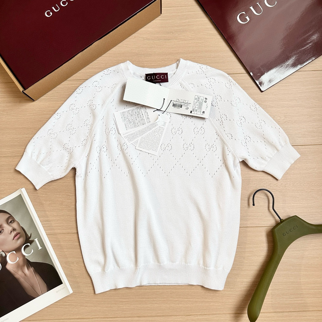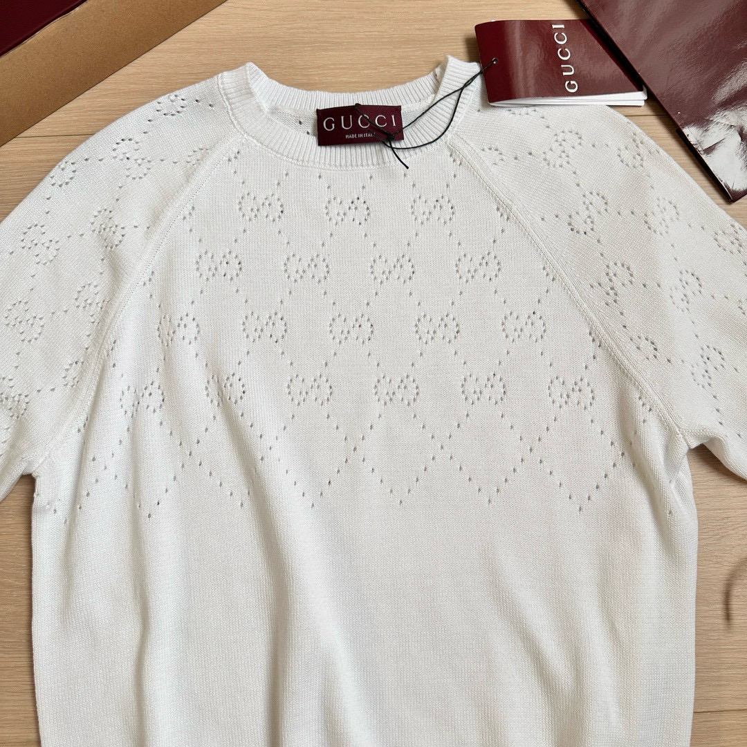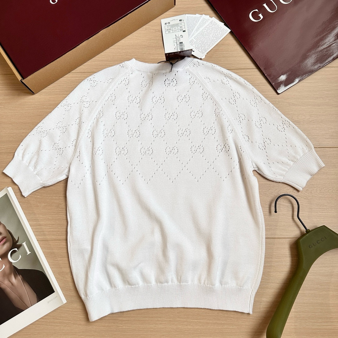 NIGO Gucci Women's Summer Solid Color Jacquard Round Neck Short Sleeve Knitted Sweater T-shirt #nigo77163