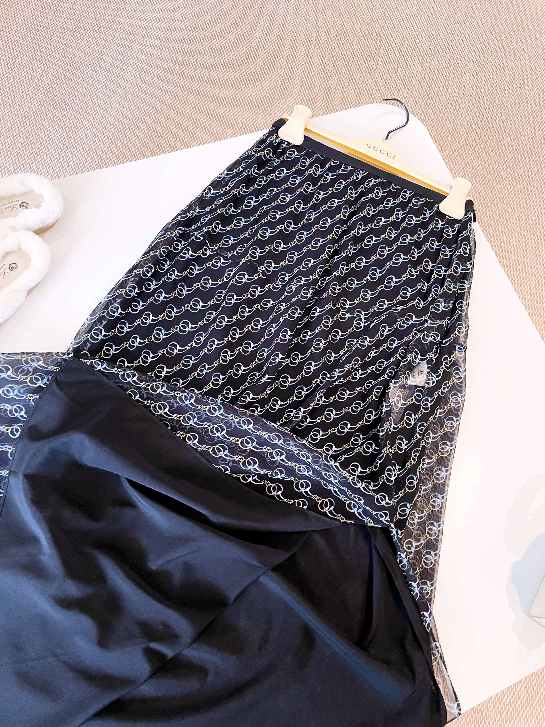NIGO Gucci Women's Summer Solid Color Ring Buckle Printed Mulberry Silk Single-Breasted Long-Sleeved Shirt and Casual Skirt Set Suit #nigo77658